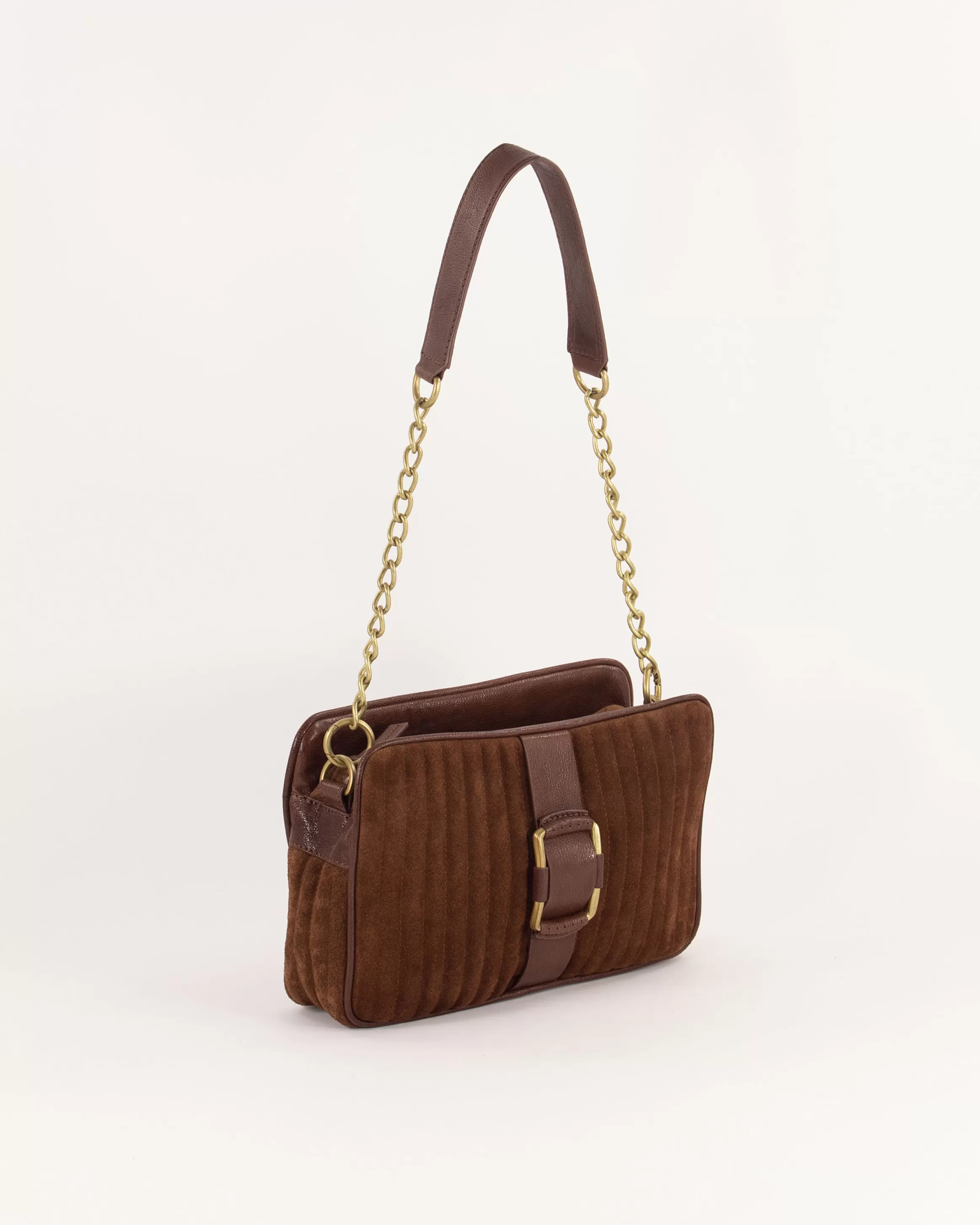 Sac en croûte de cuir matelassée et détails en cuir de chèvre.