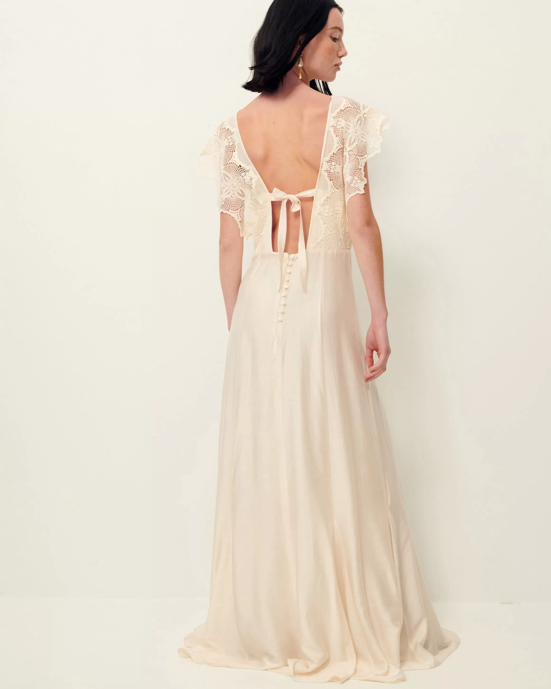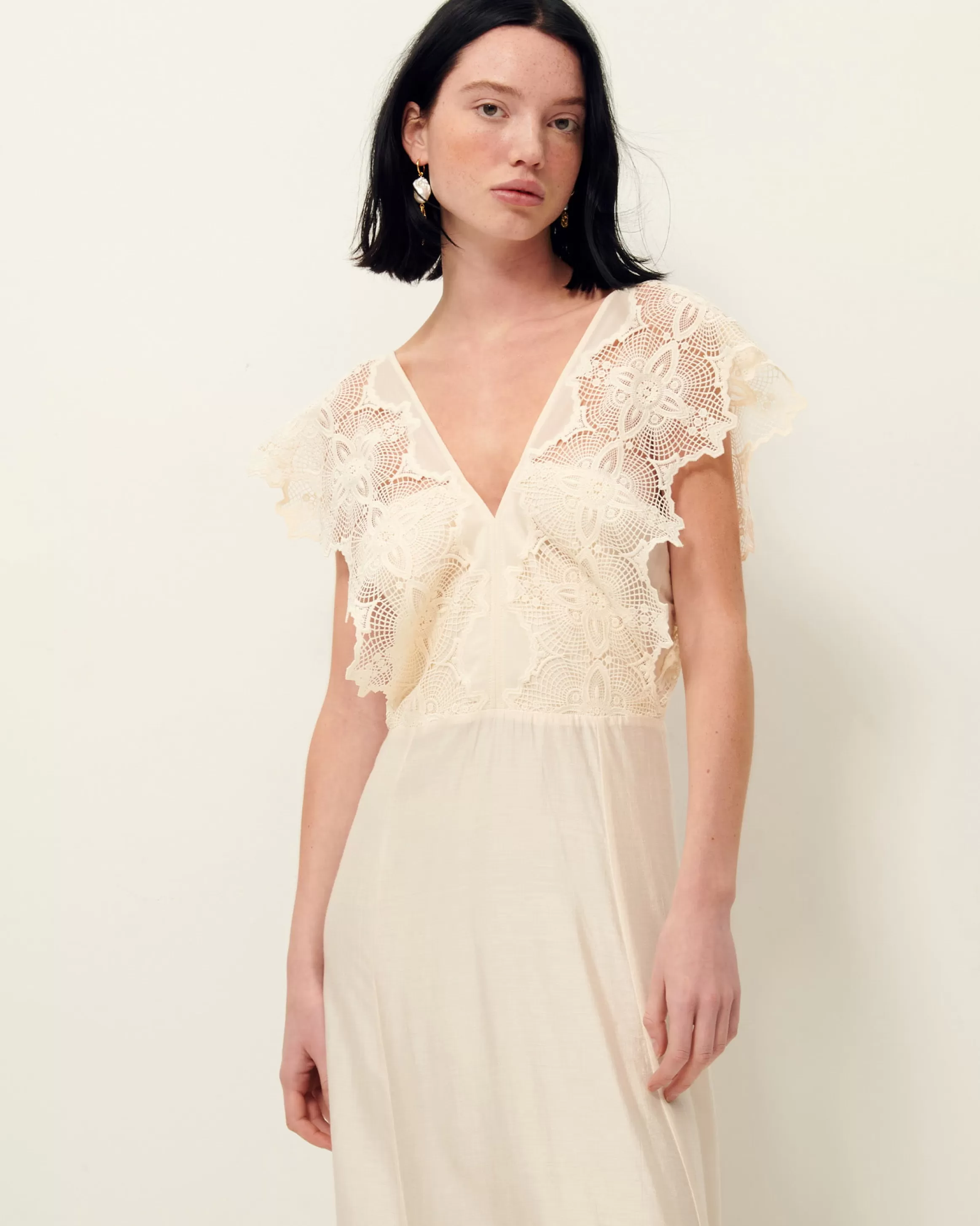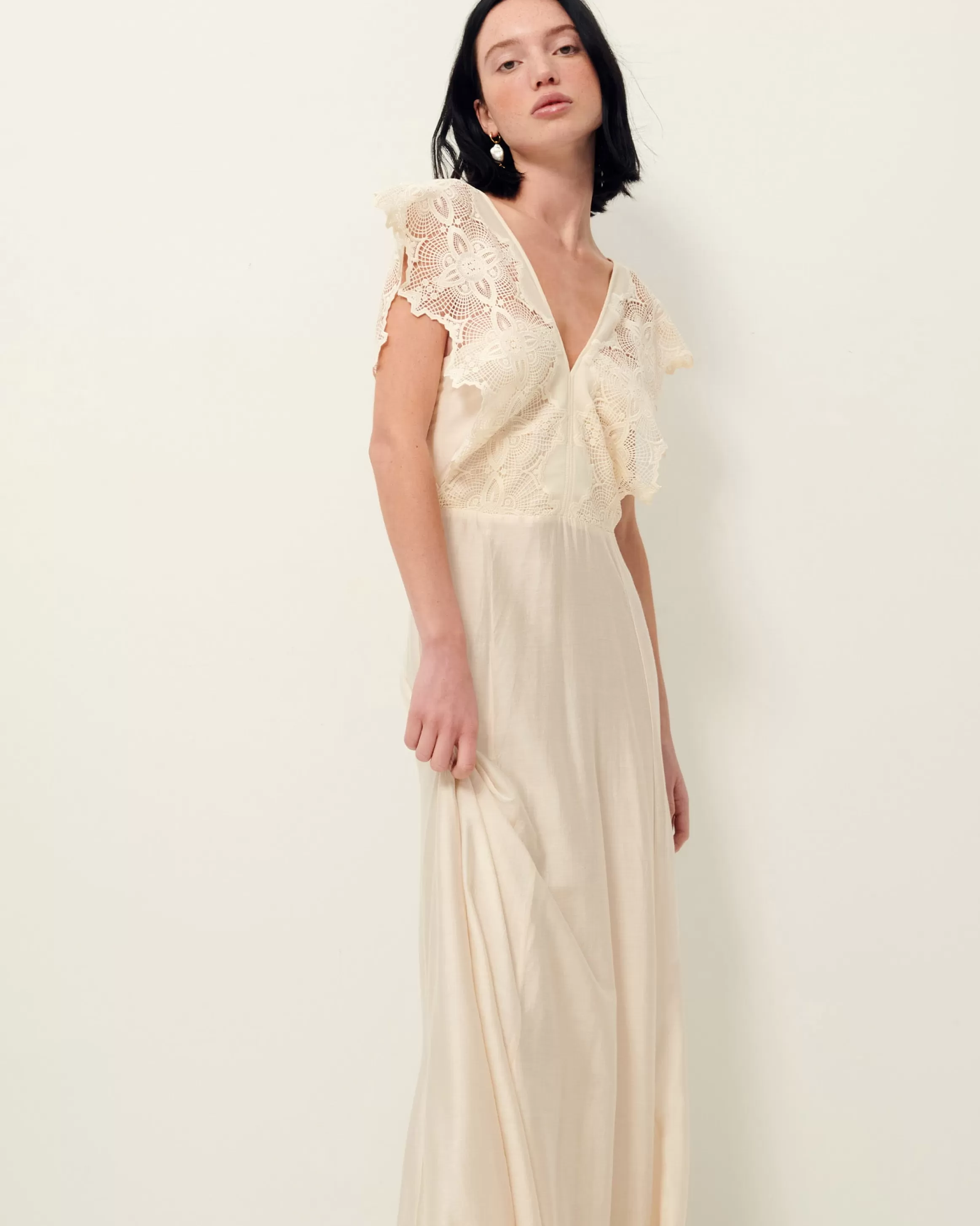 Robe longue sans manches en voilage fantaisie tissé en Allemagne et haut en galons de dentelle.EXCLU WEBIlona mesure 1m…