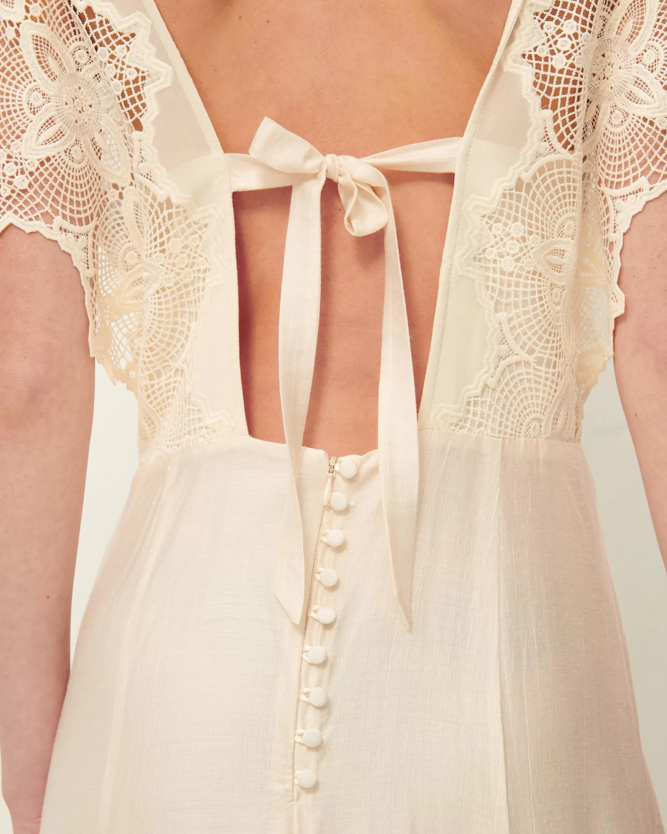 Bustier incrusté sous les galons de dentelle.