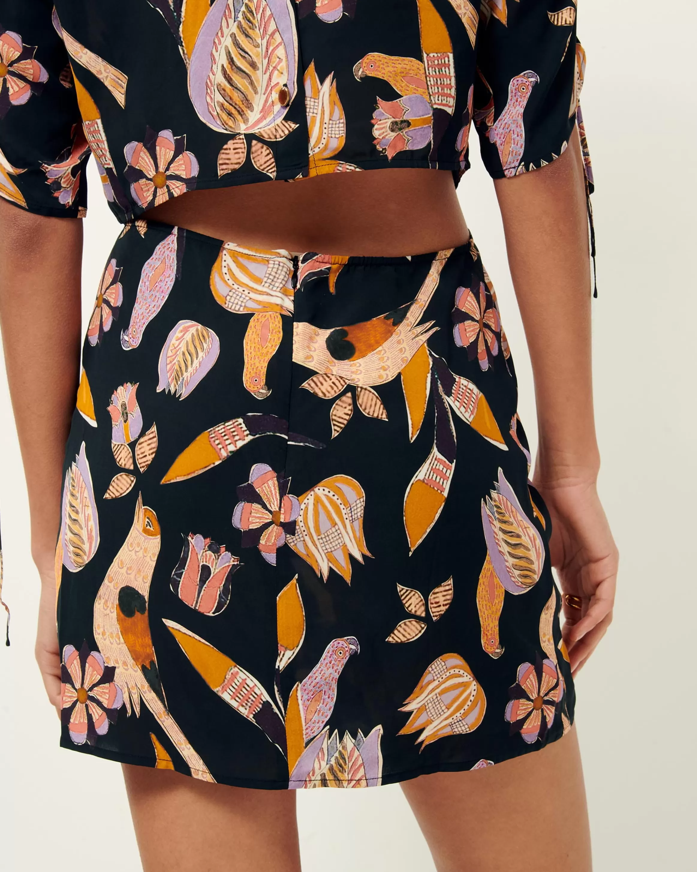 Robe courte ouverte au dos en toile de viscose fluide et aérienne imprimée, motif exclusif Sessùn.Ce produit est comp…