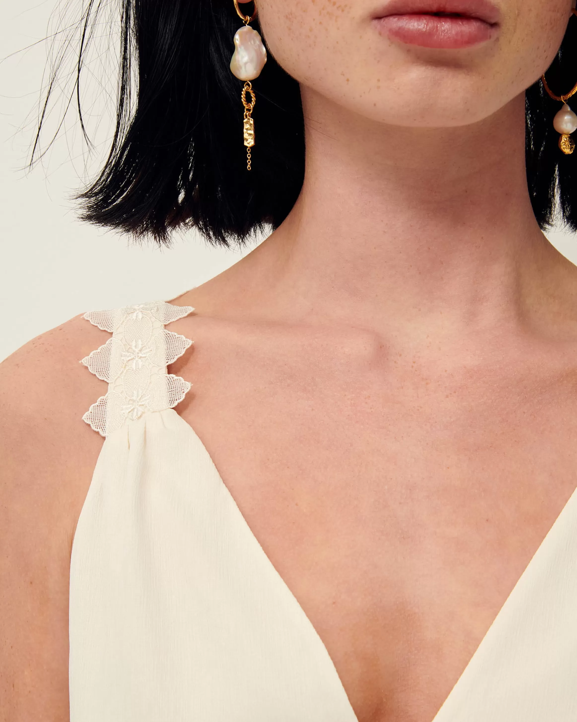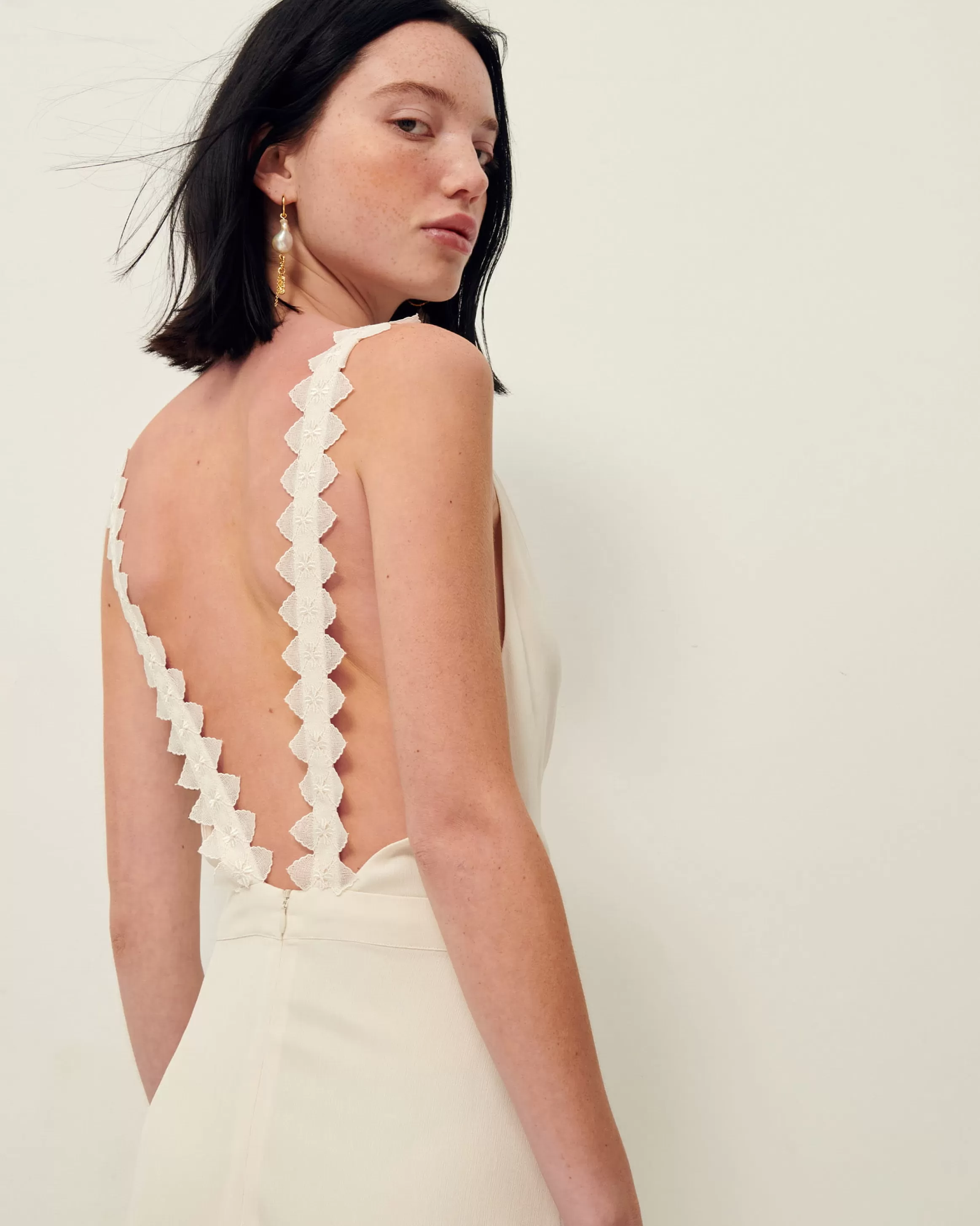 Robe longue en crêpe uni. Le polyester utilisé pour la confection de ce produit est recyclé et certifié, cela perme…