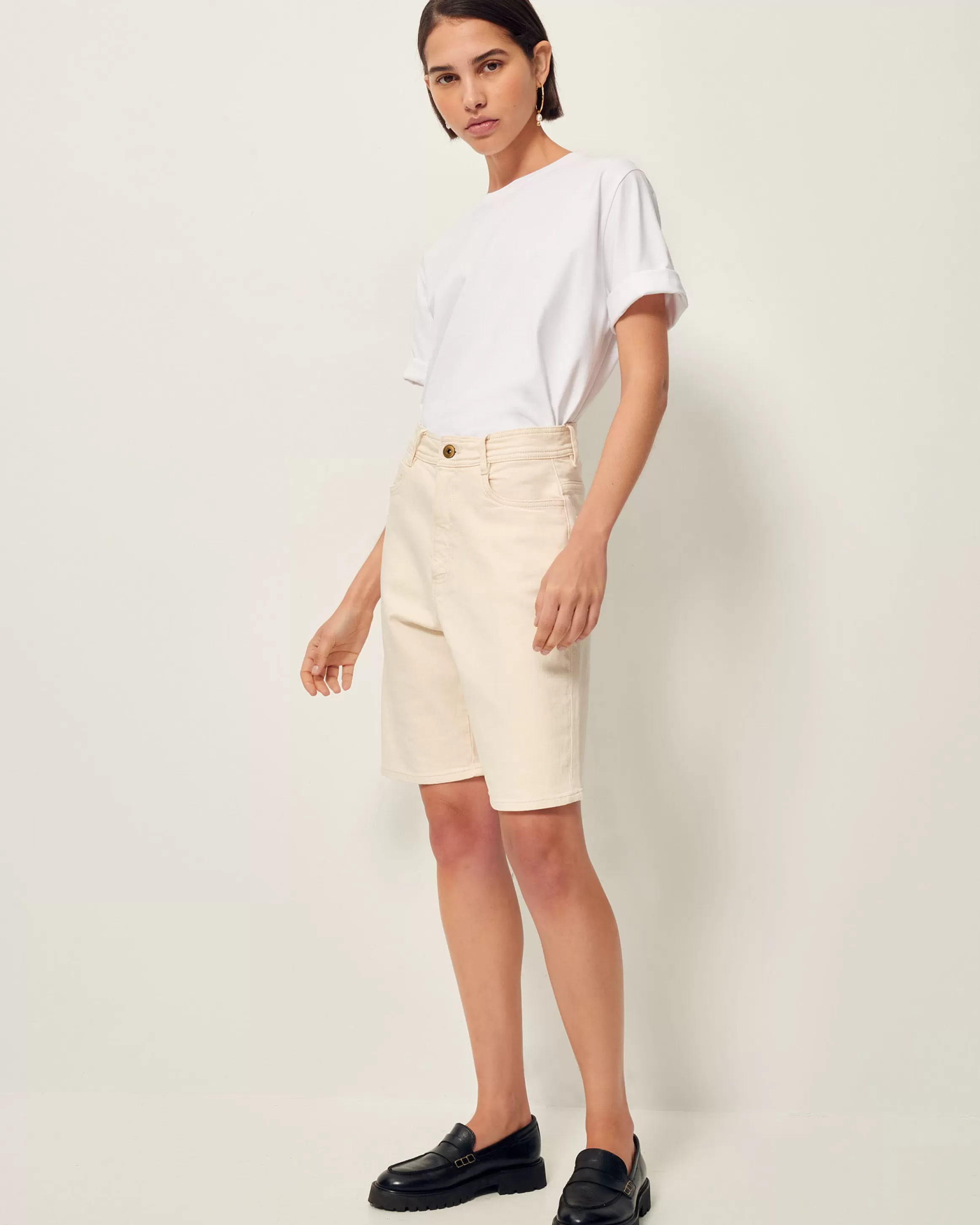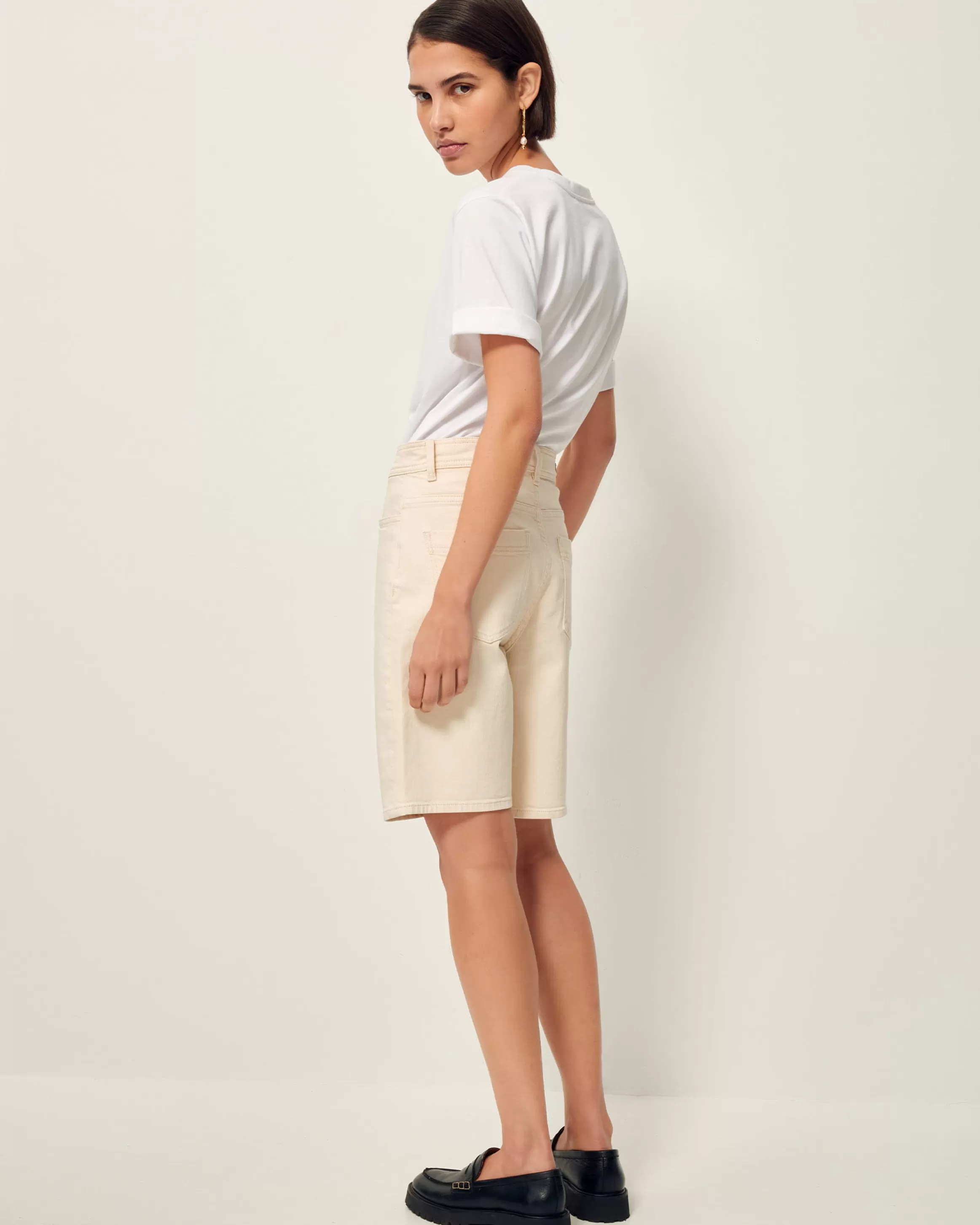 Bermuda droit en toile de denim teint en plongée, lavé.