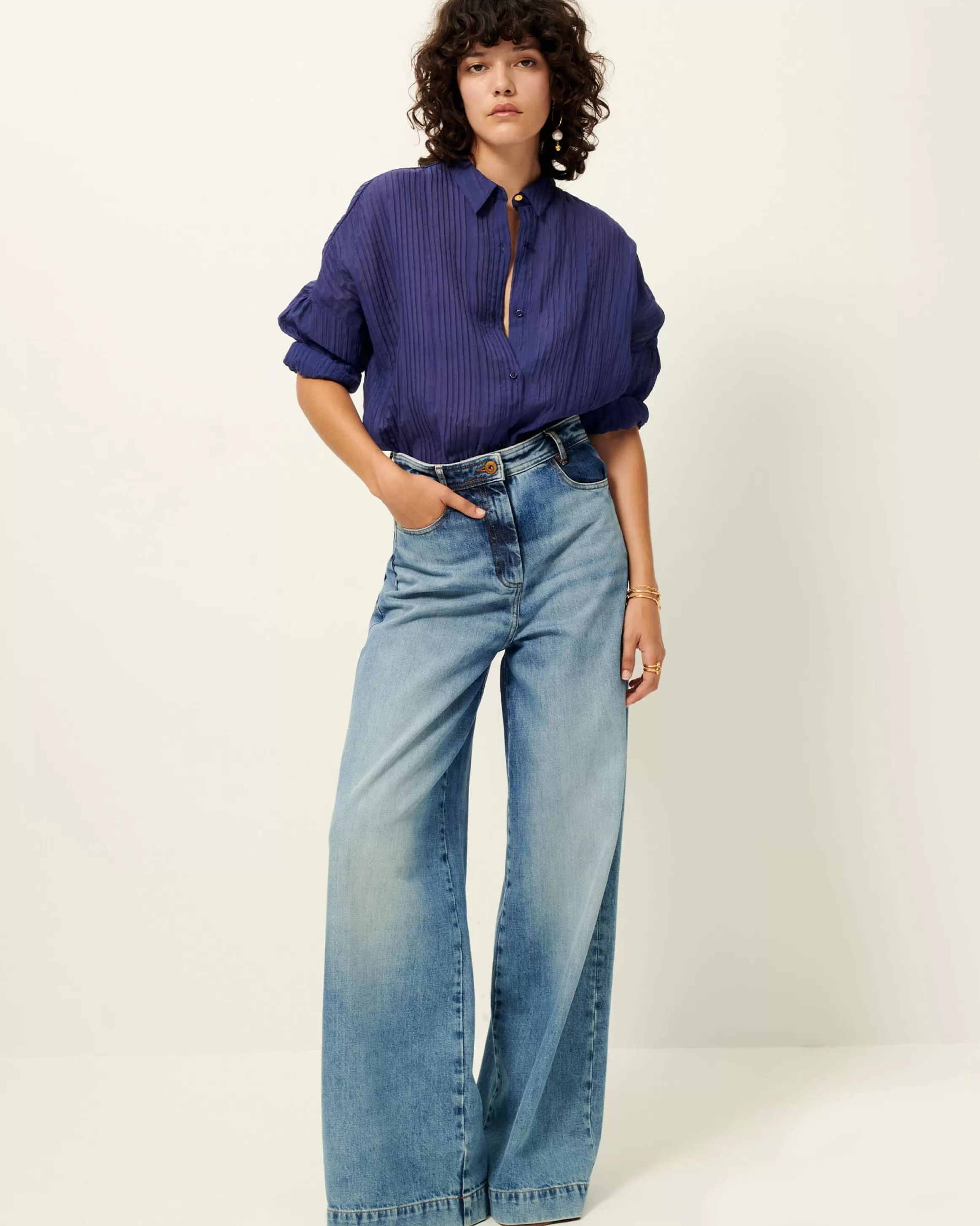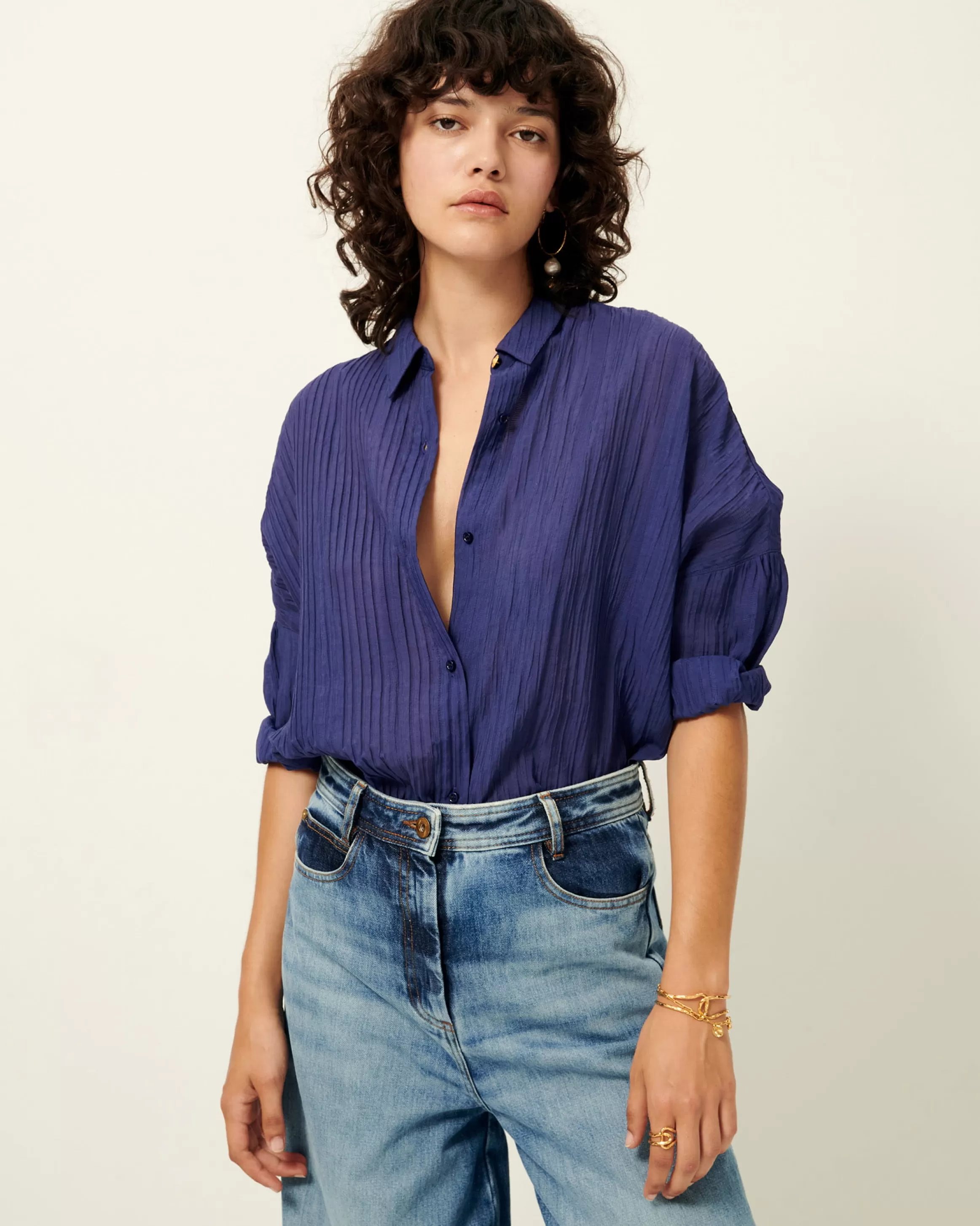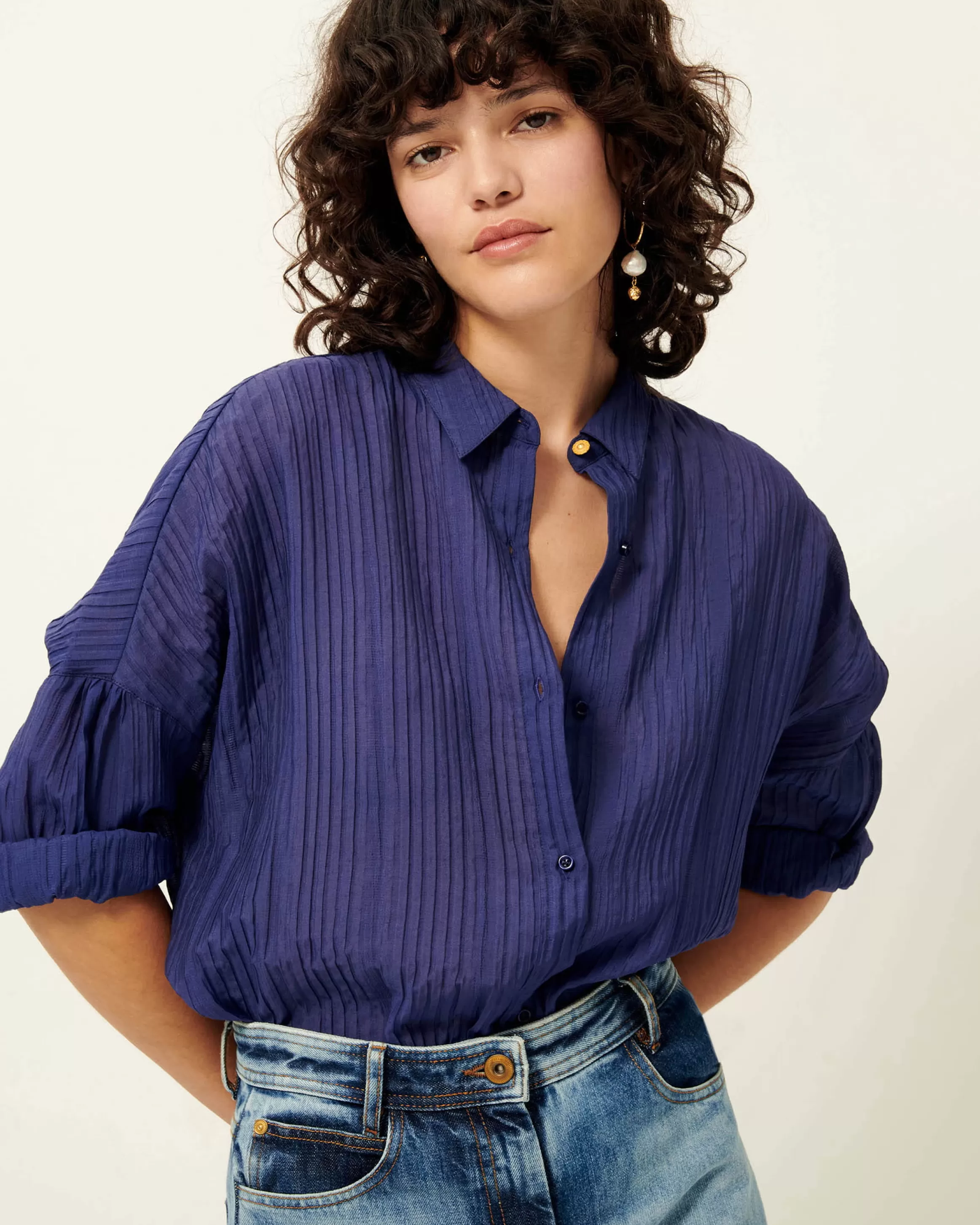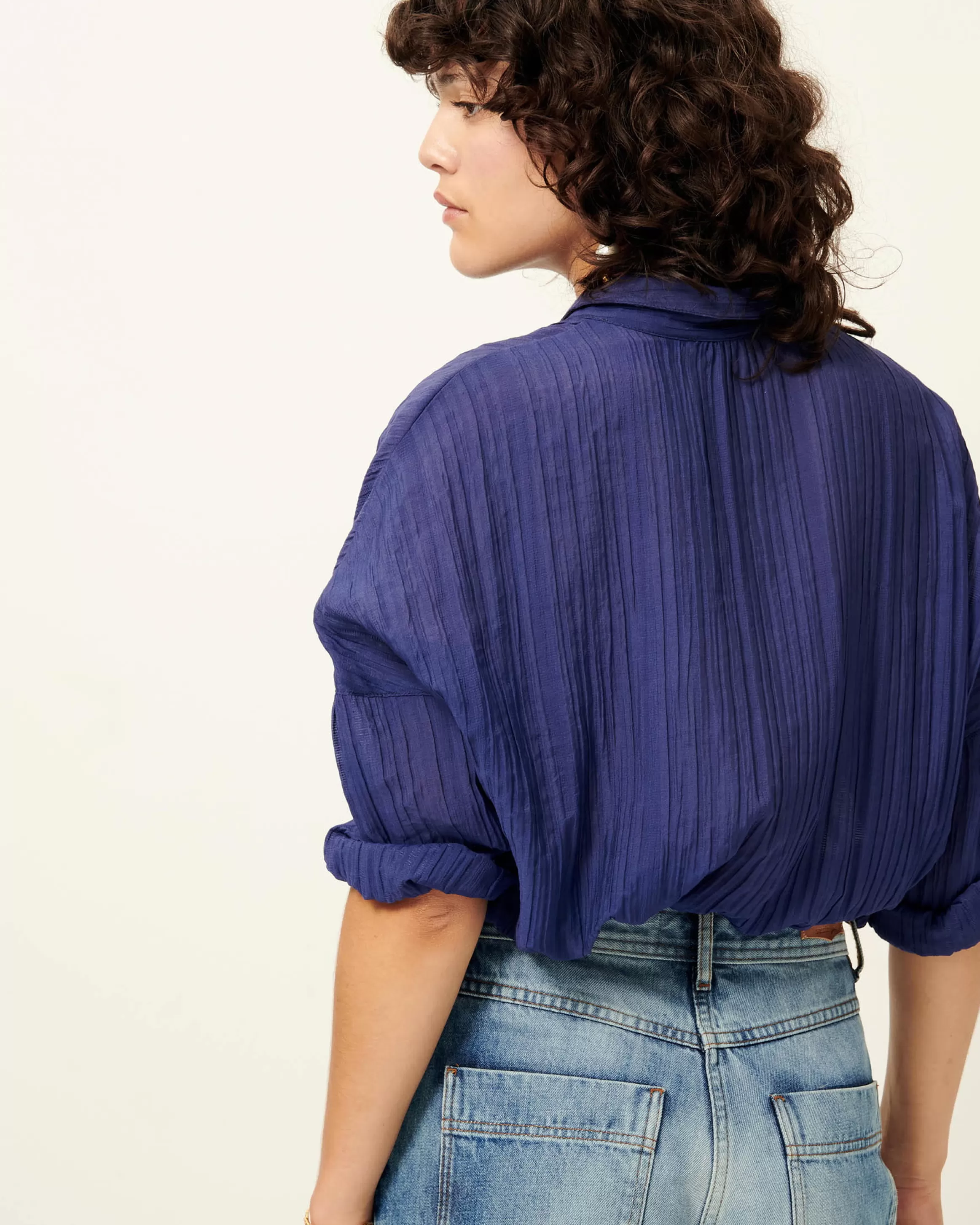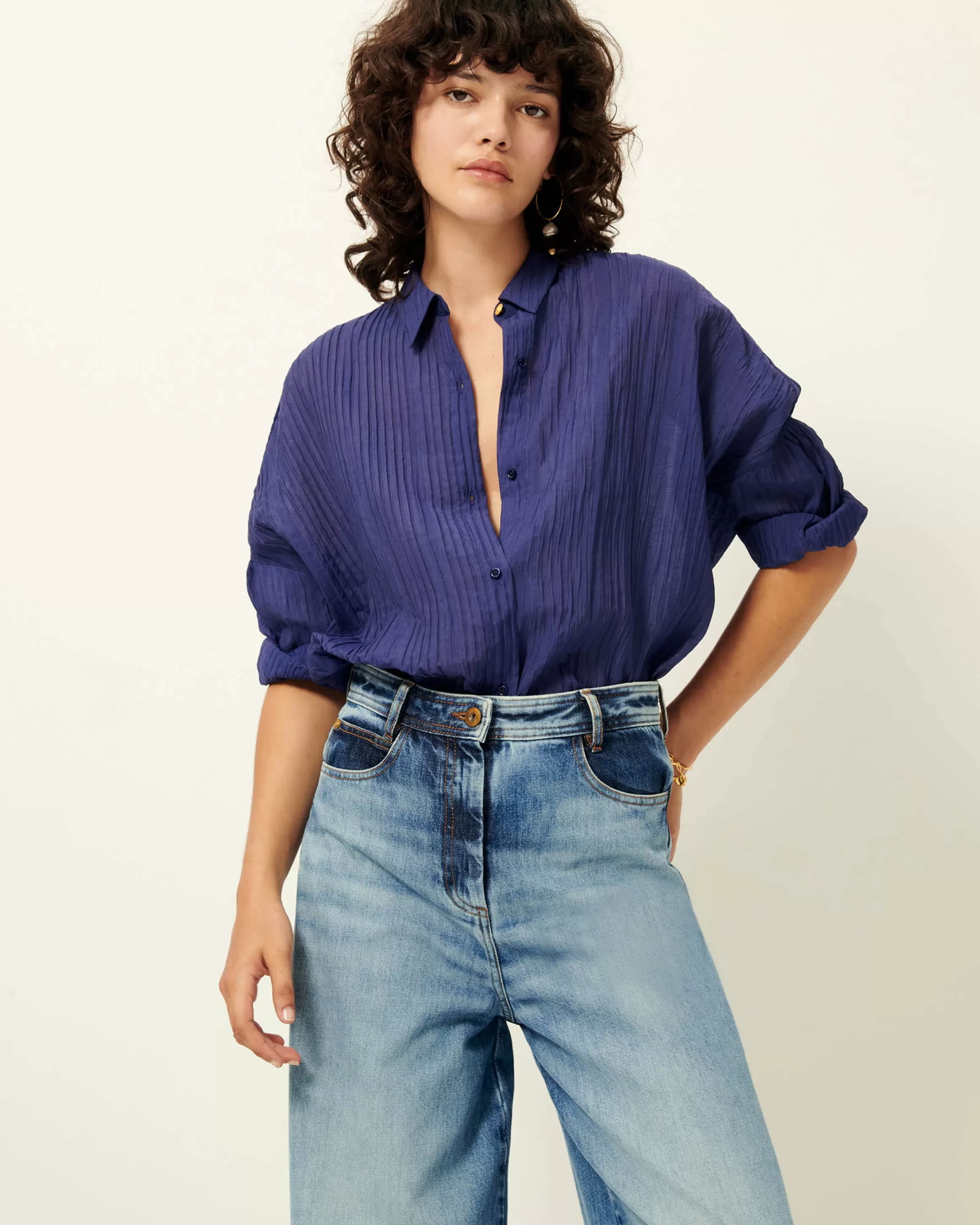 Chemise ample à emmanchures basses en crépon soyeux et aérien de rayonne.
