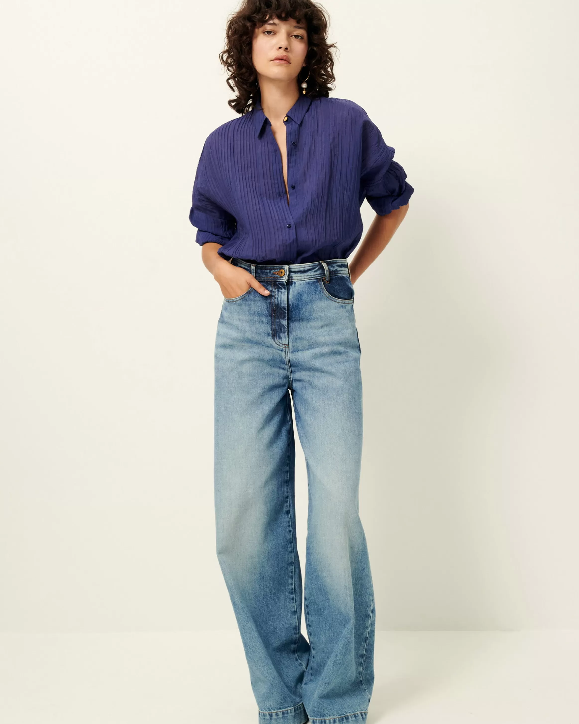 Chemise ample à emmanchures basses en crépon soyeux et aérien de rayonne.