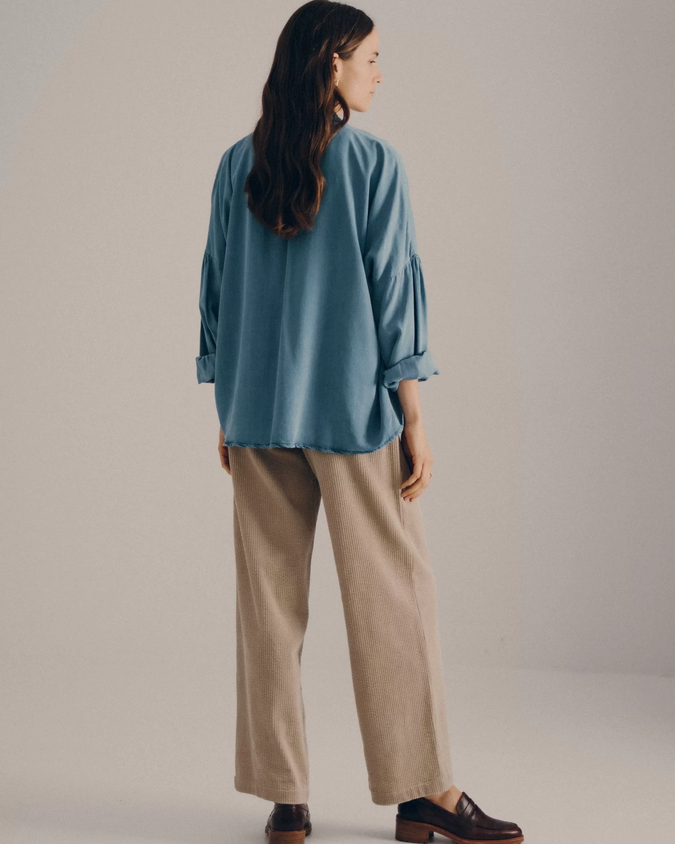 Chemise ample en chambray délavé, tissé en Espagne.Le lyocell utilisé dans la confection de ce vêtement est issu de…