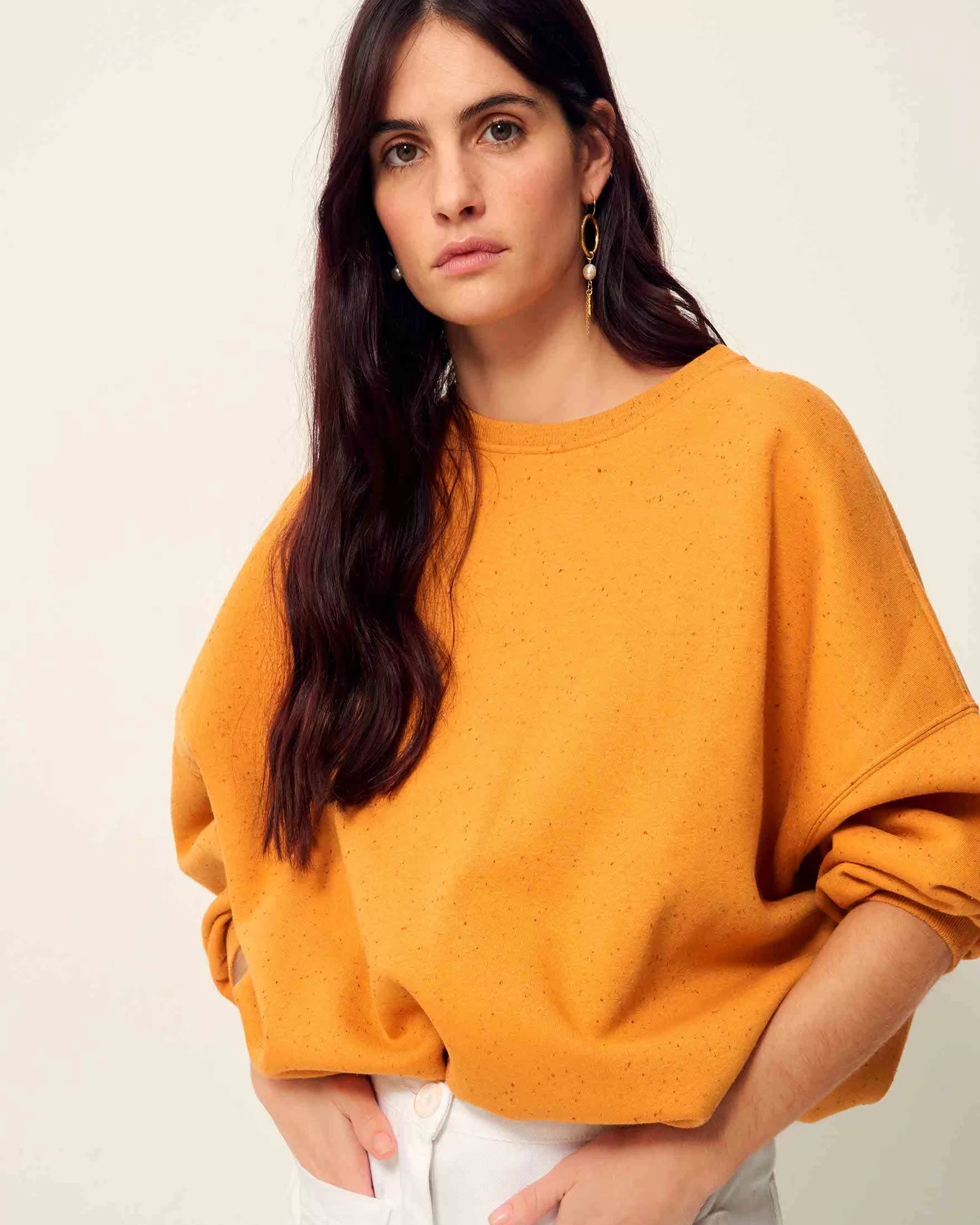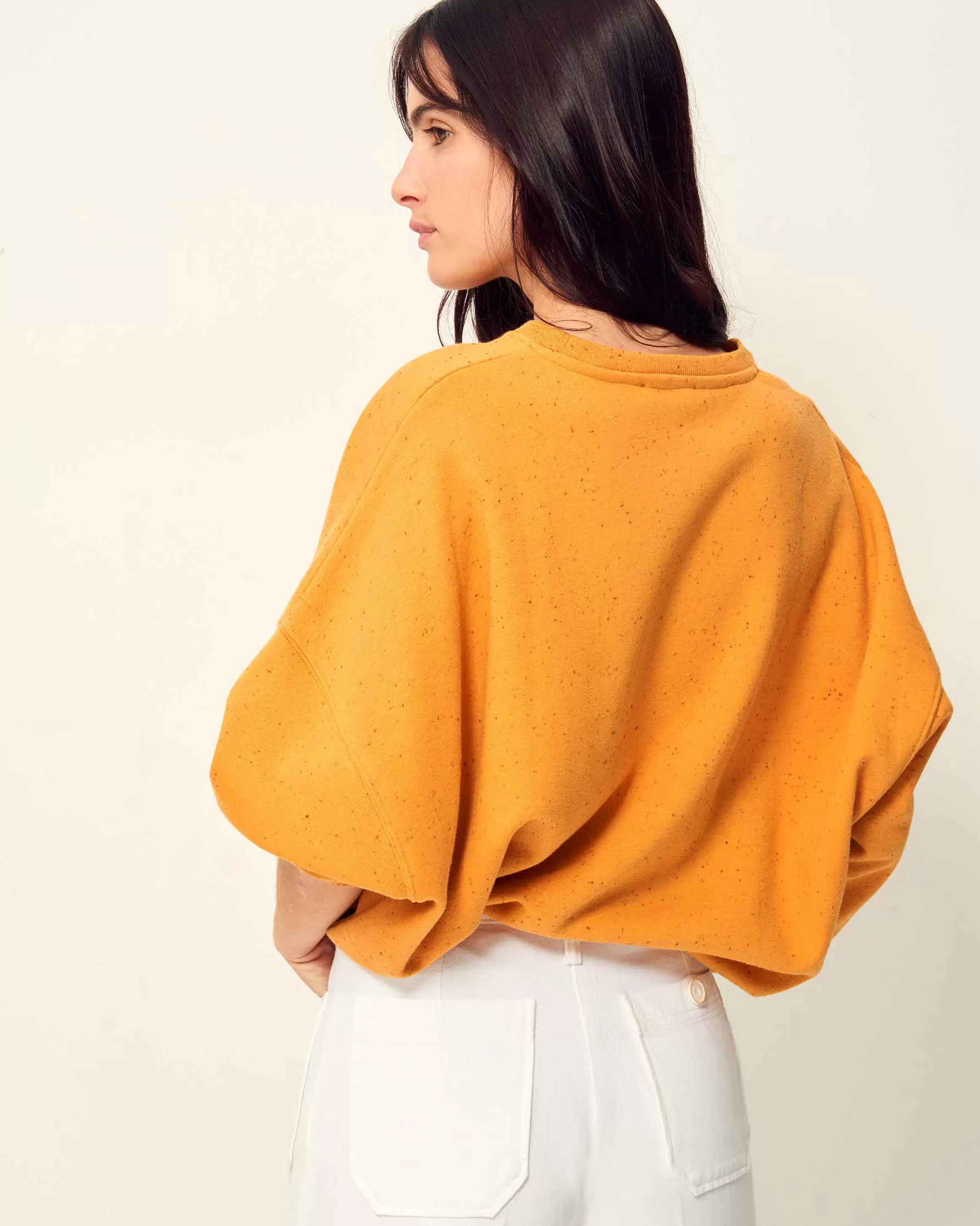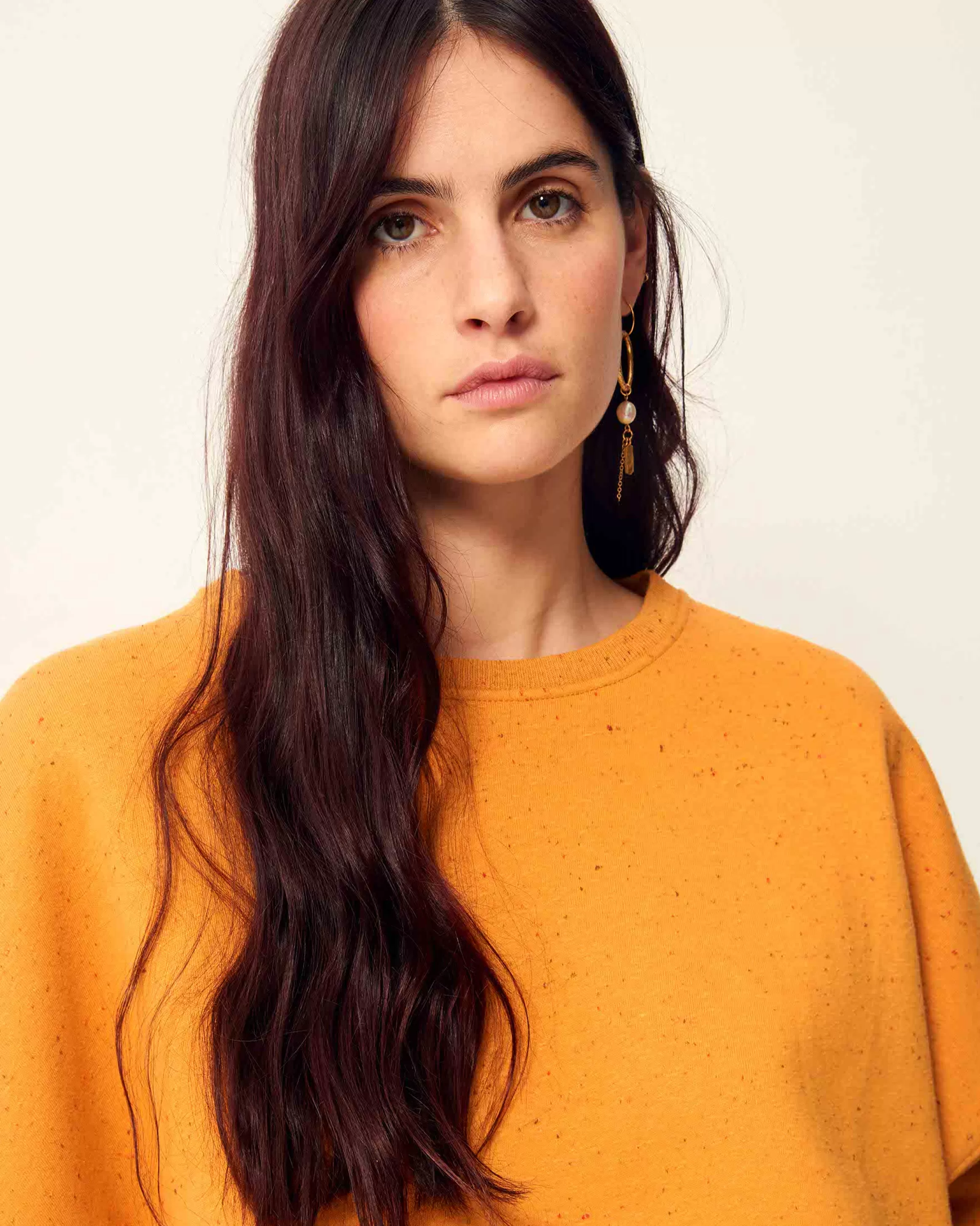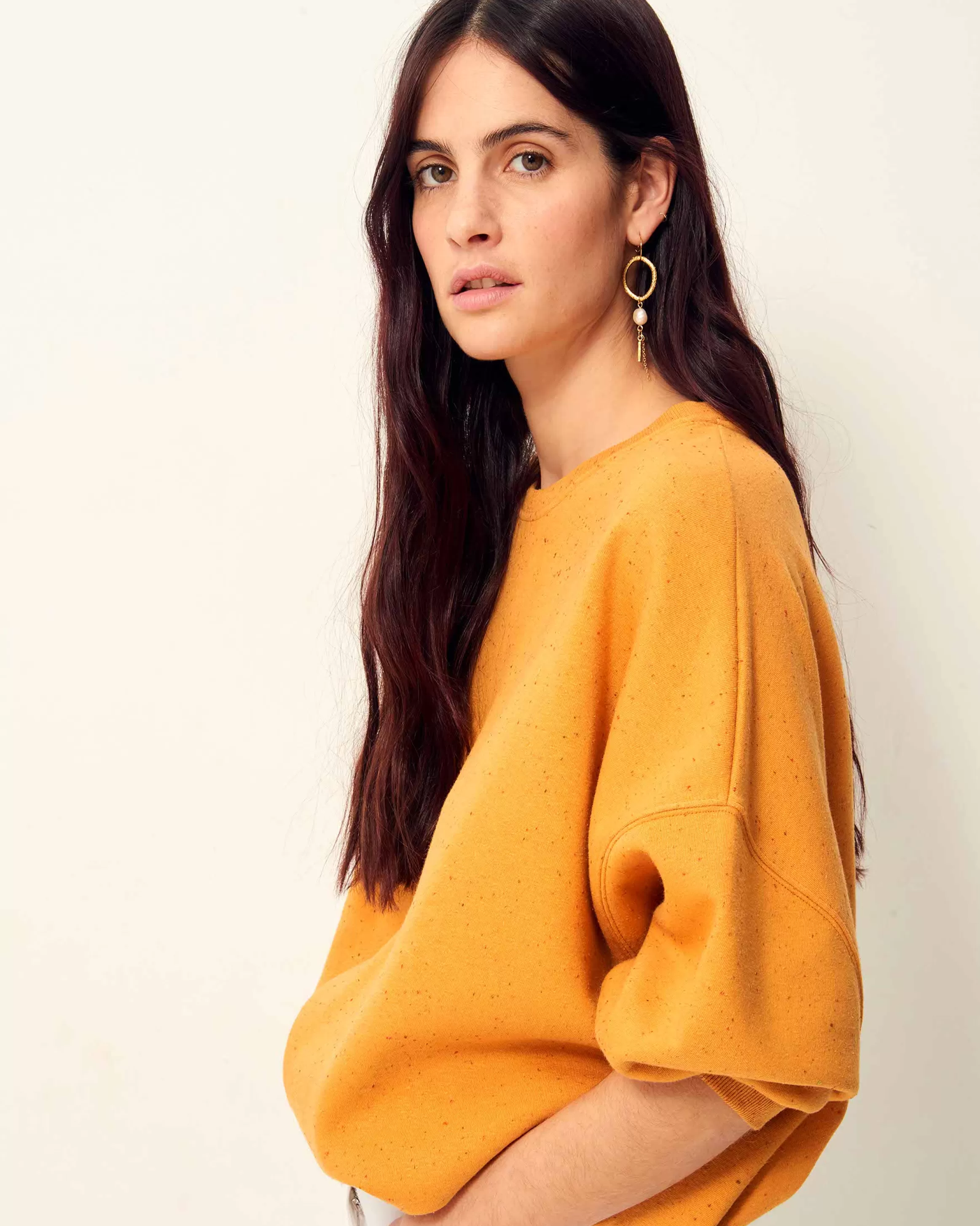 Sweat ample en molleton chiné boutonné confectionné au Portugal.