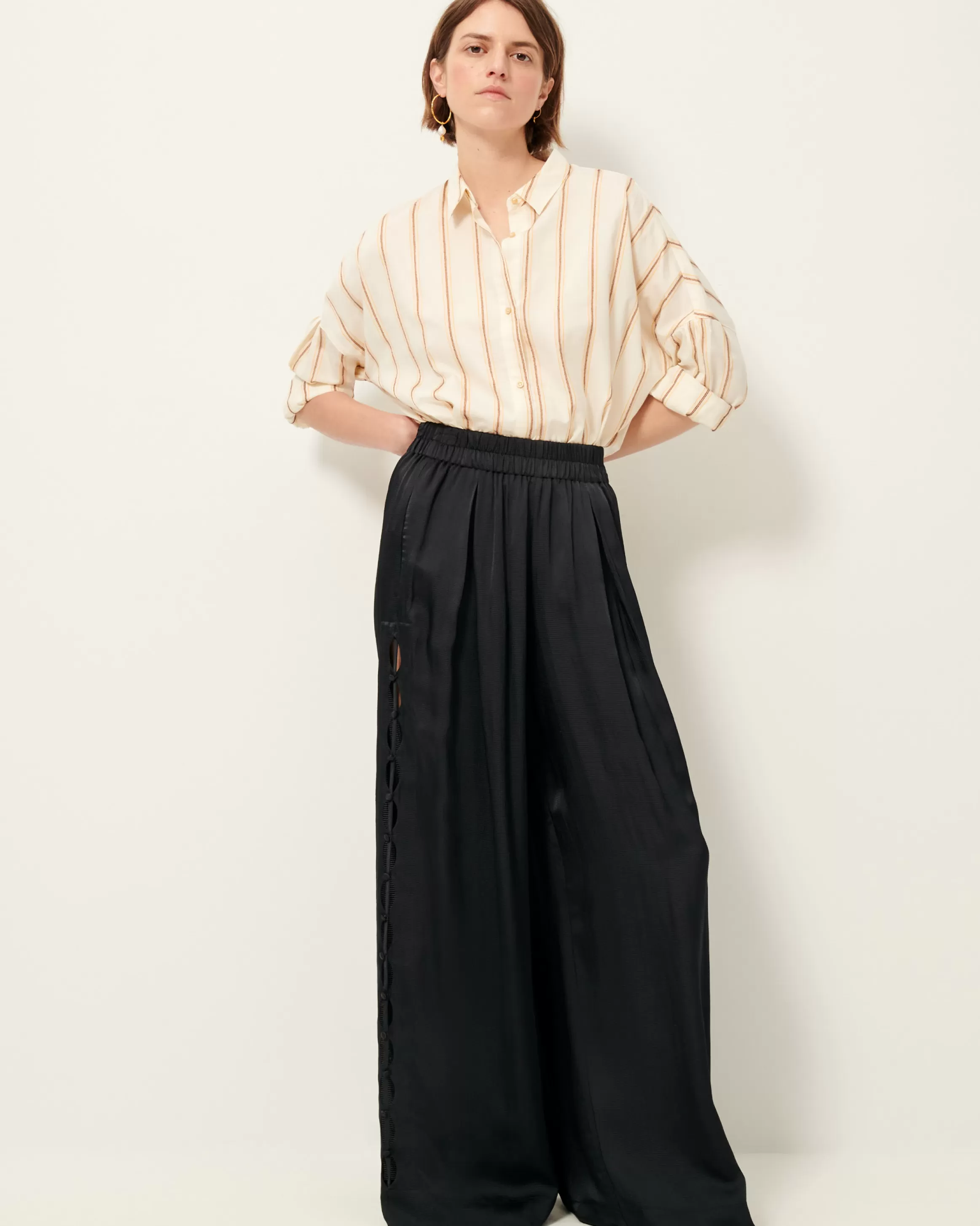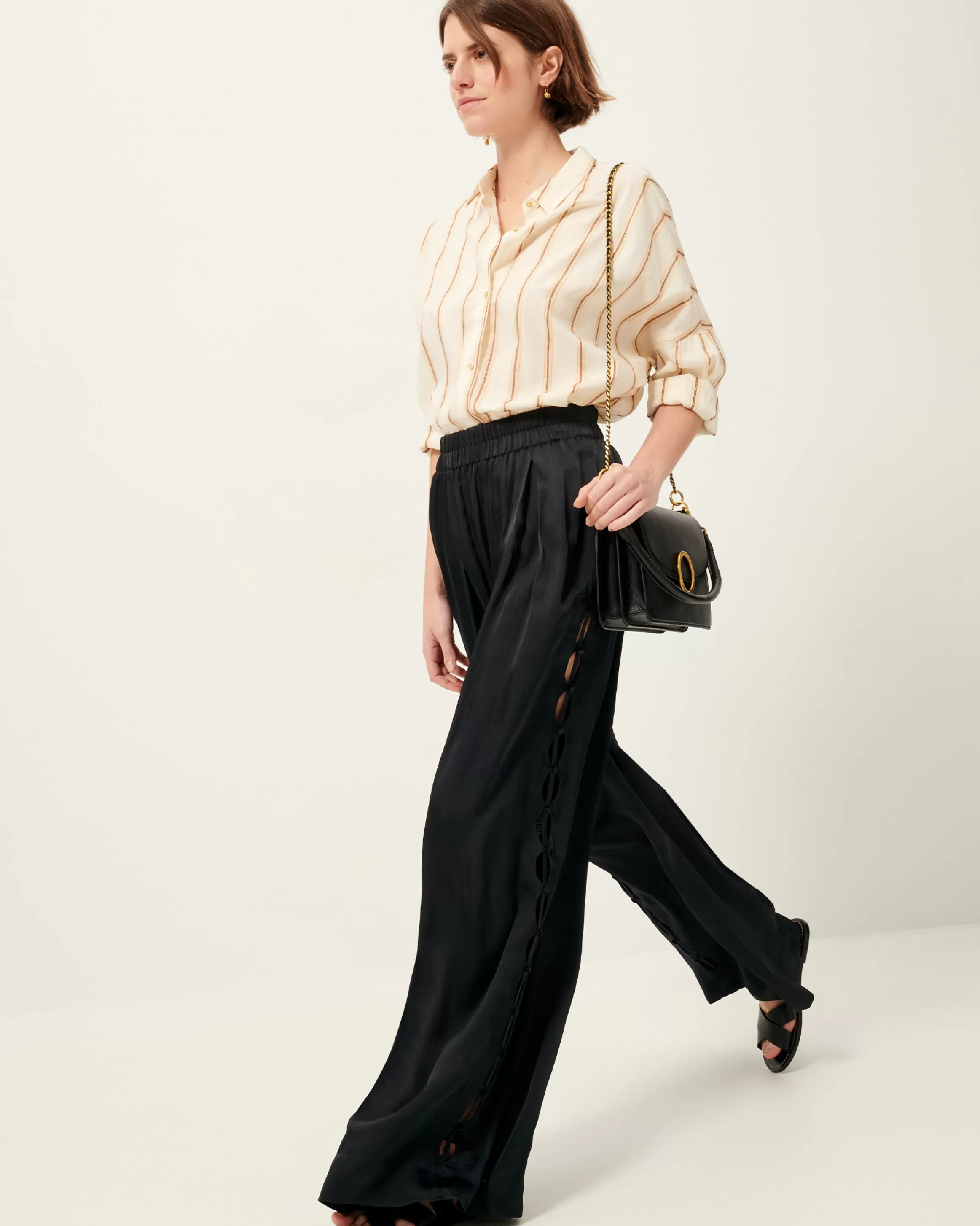 Pantalon ample à la taille élastiquée en satin de viscose seersucker.