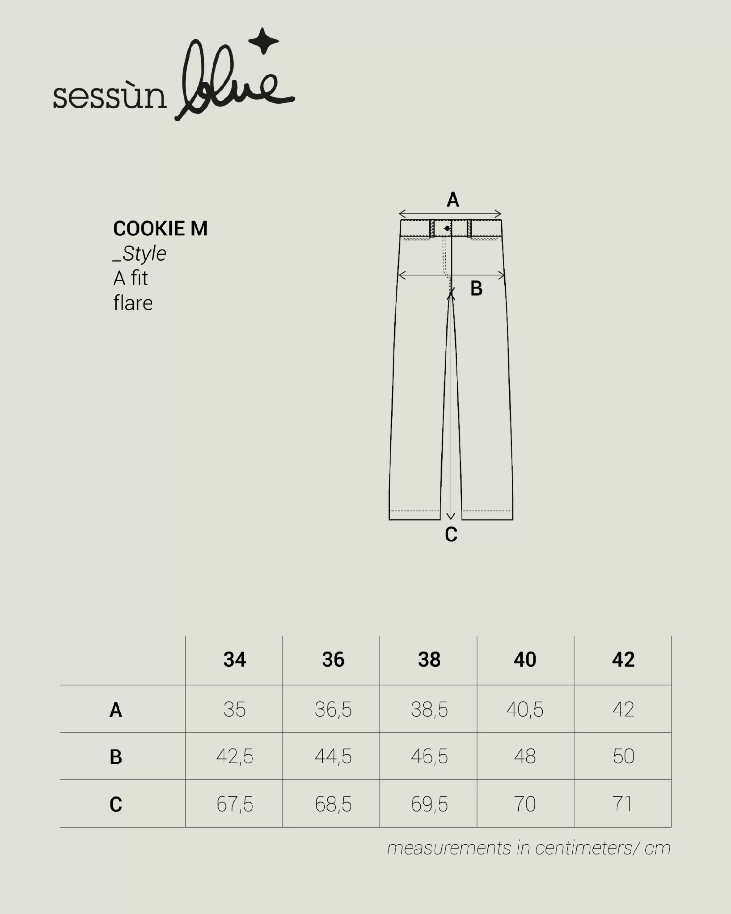 Le sergé de coton du pantalon Cookie M est confectionné par notre partenaire italien spécialisé dans les toiles de pantalons de haute qualité.