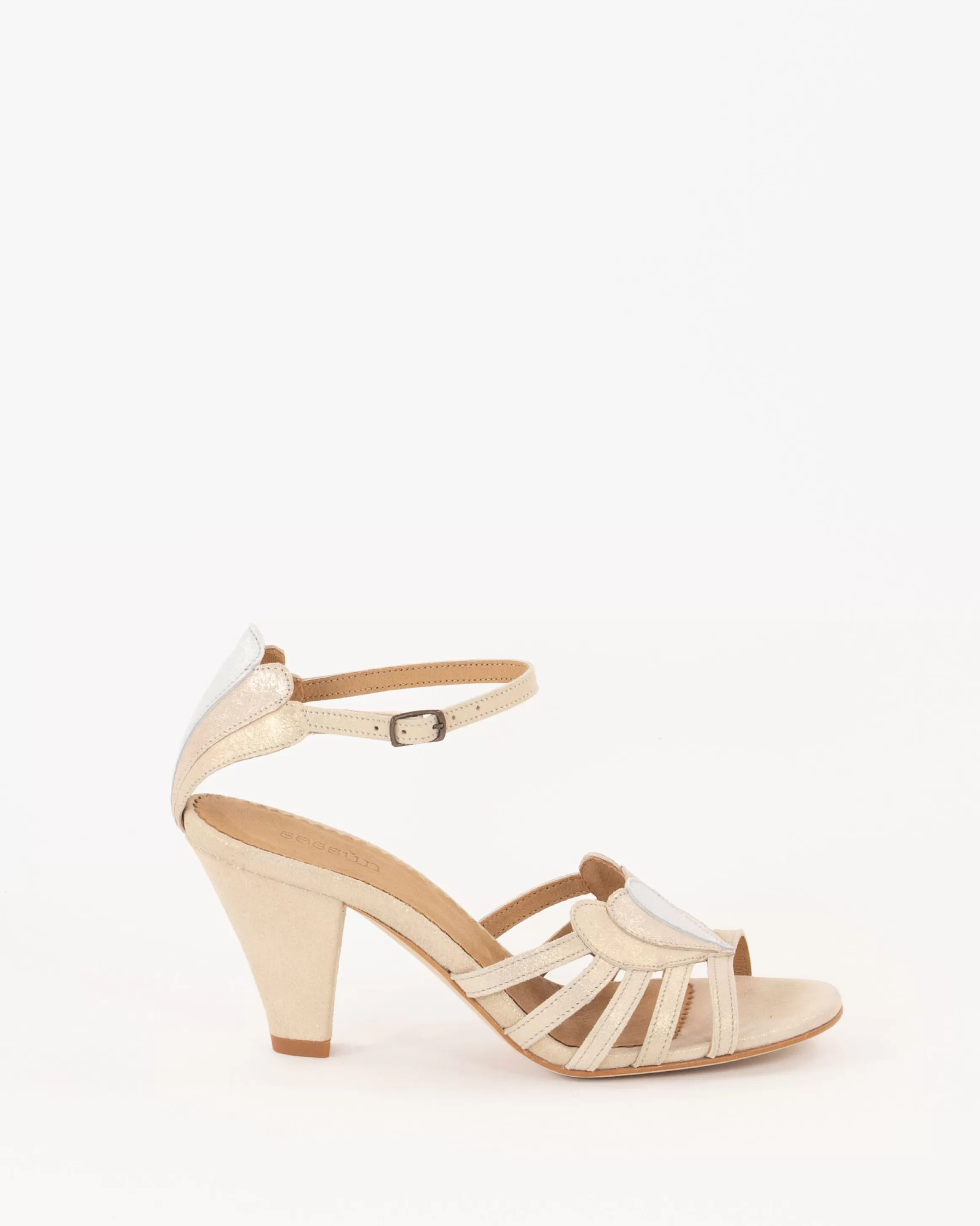 Escarpins en cuir. Bout arrondi.Patchwork sur le devant et dos talon.Bride réglable cheville.Talon enrobé dans la mat…