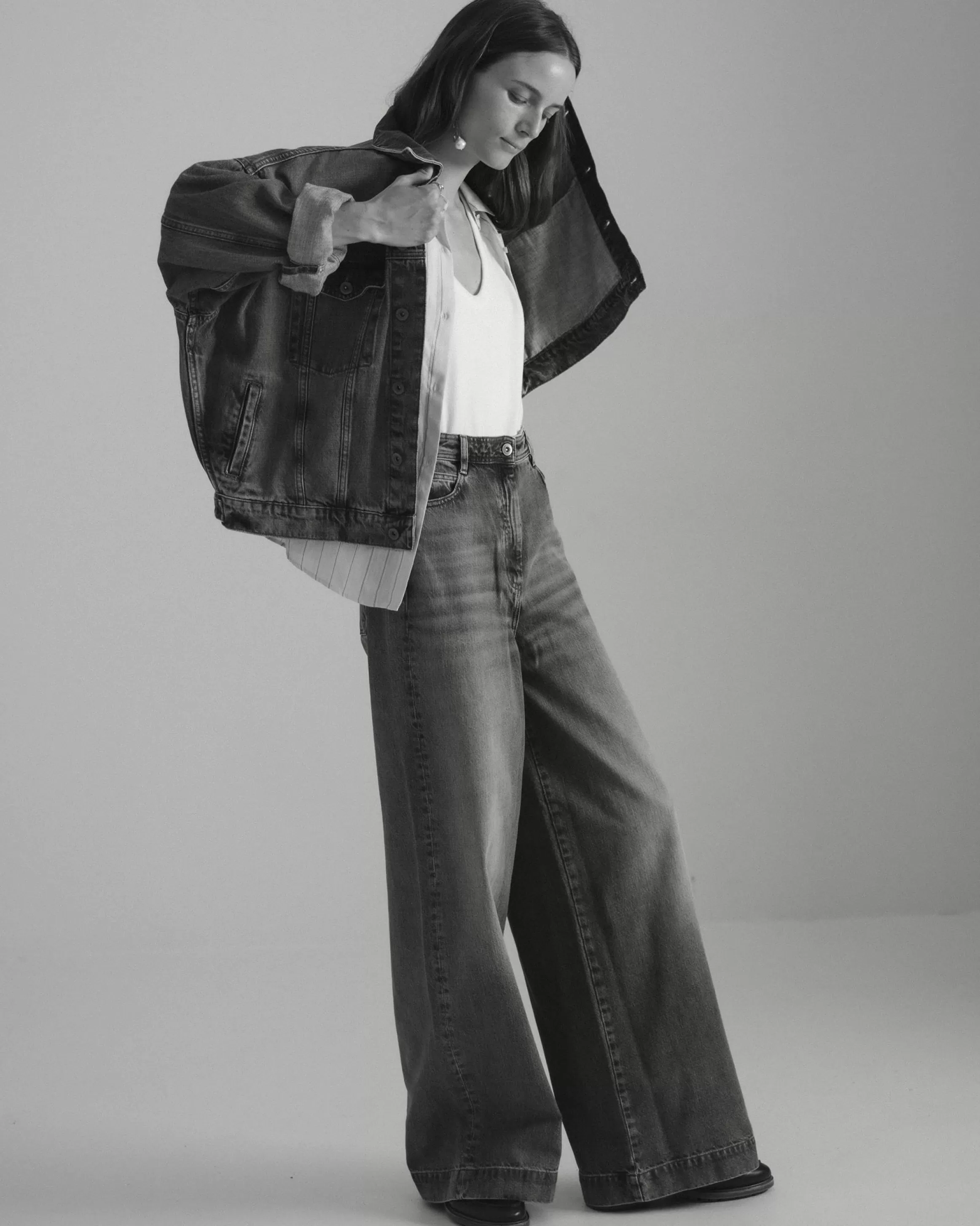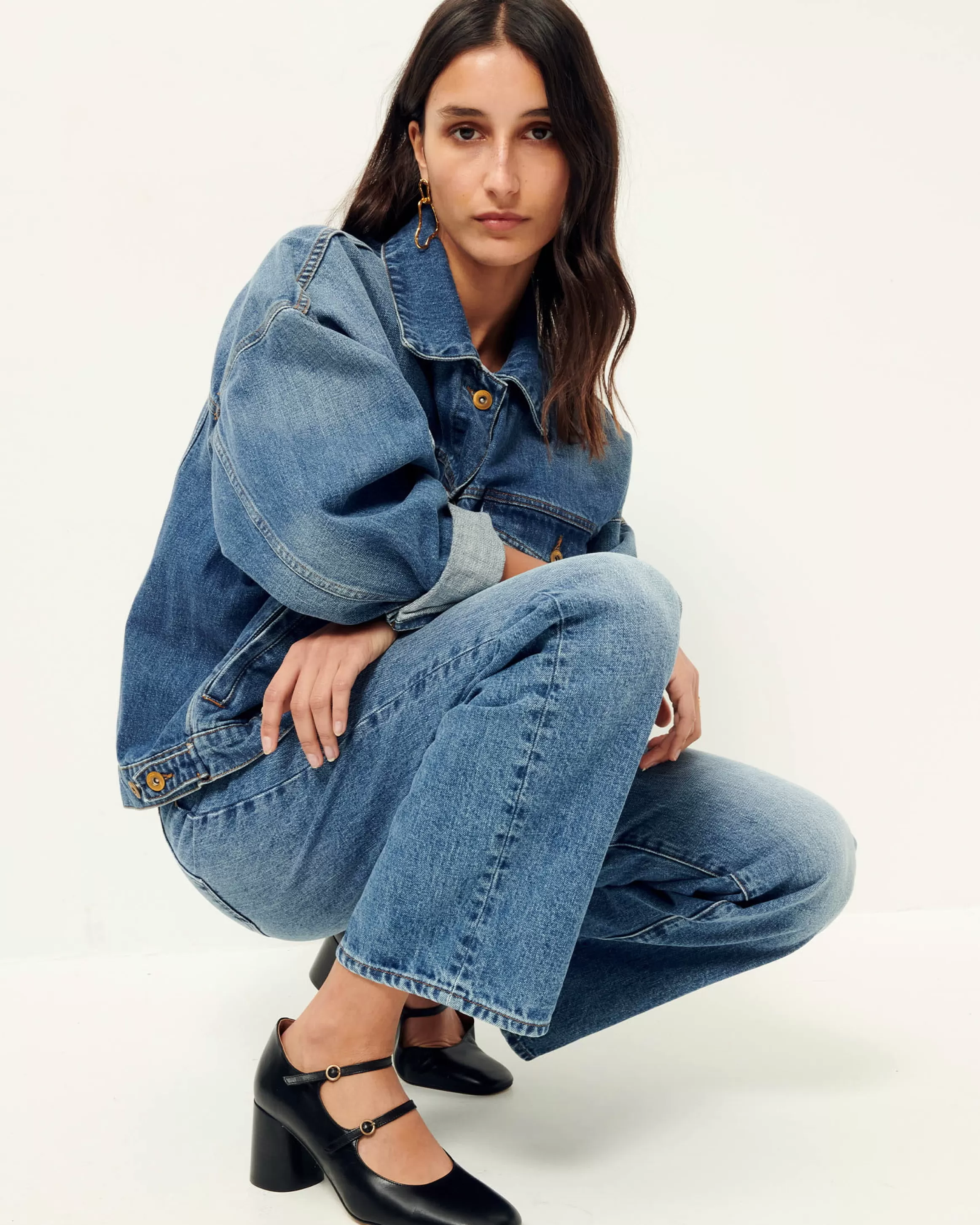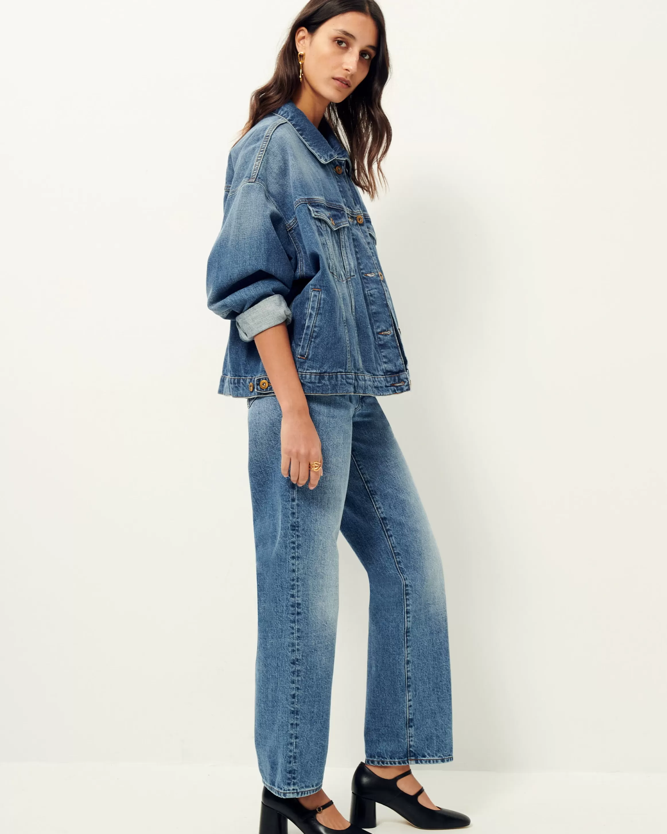 Blouson oversize en denim stonewashé.