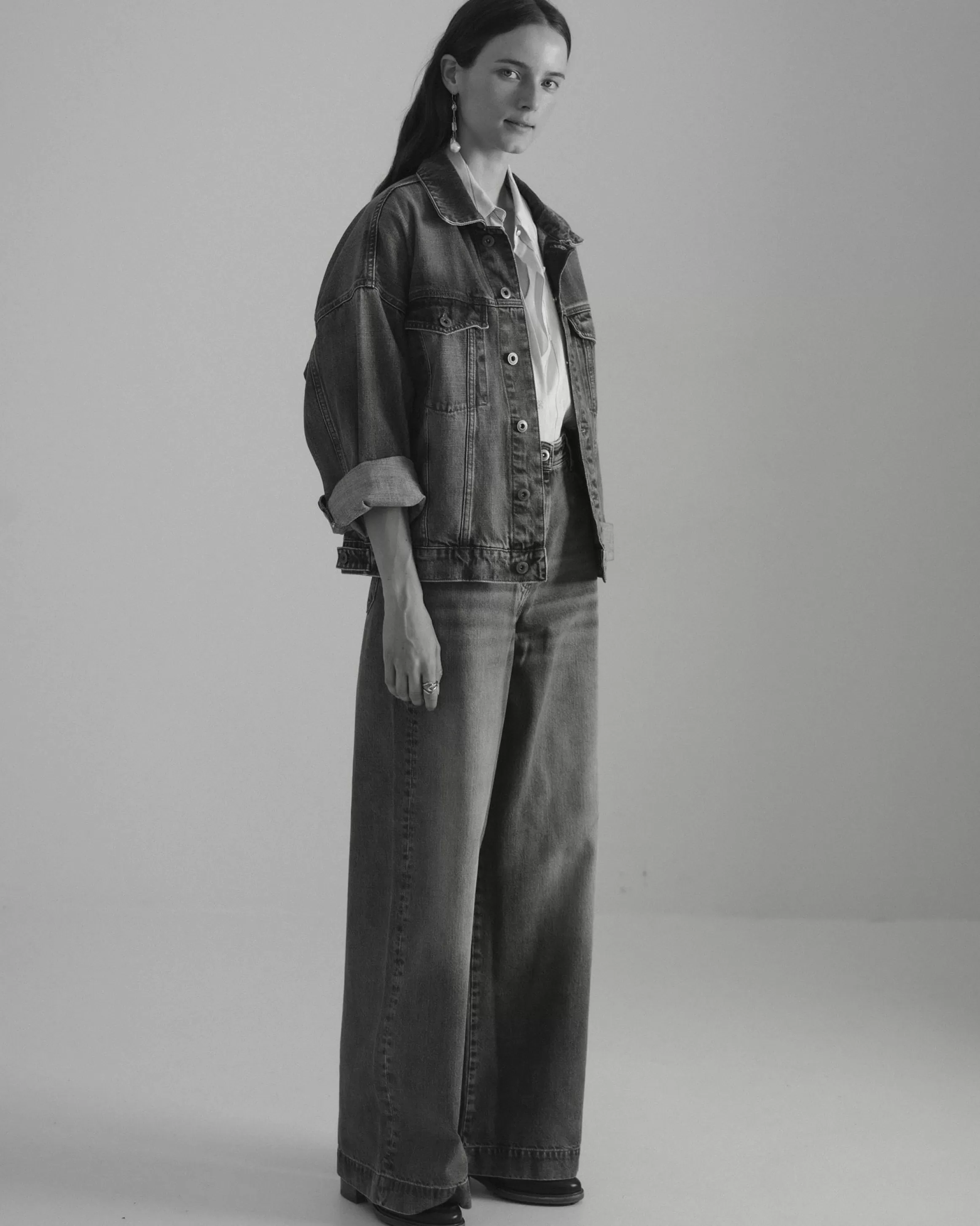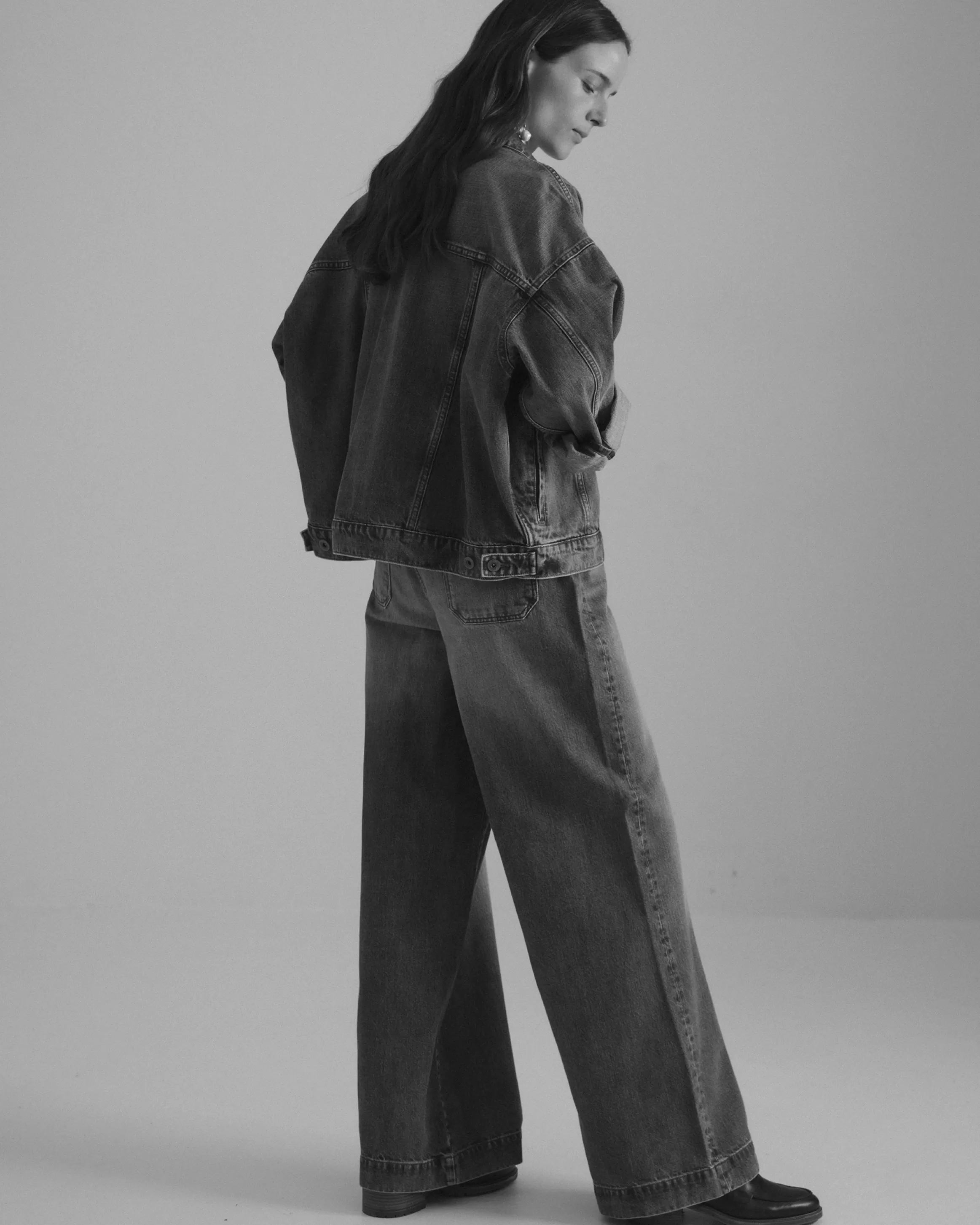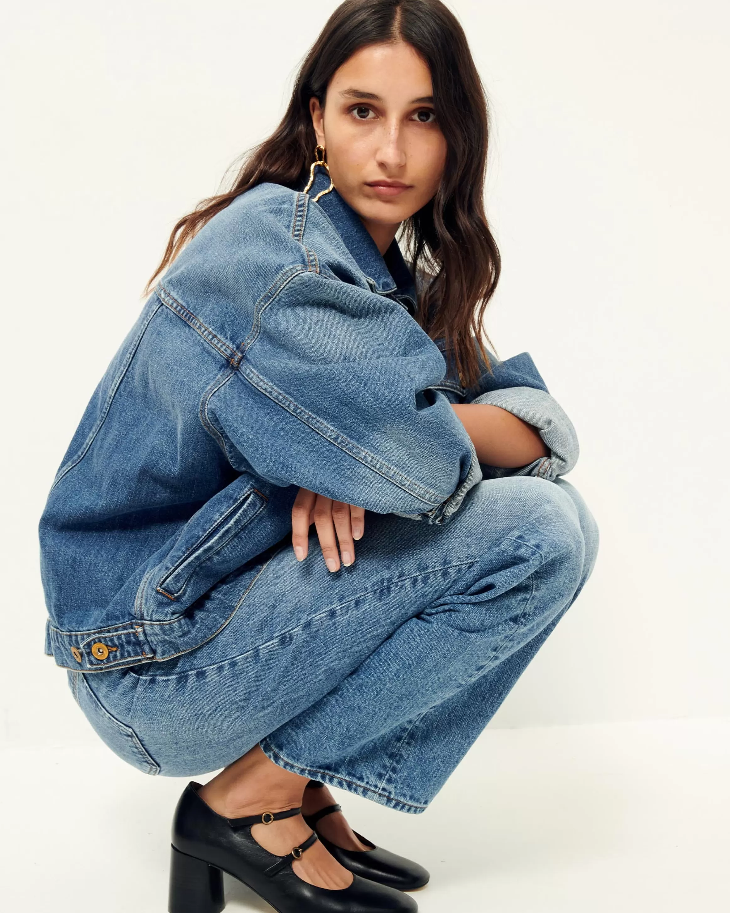 Blouson oversize en denim stonewashé.