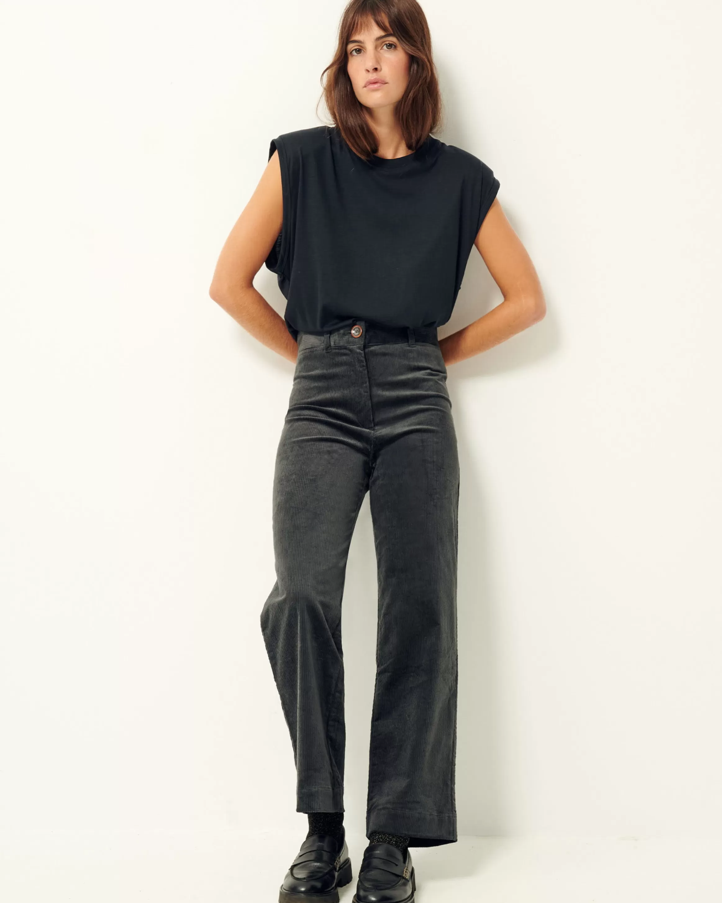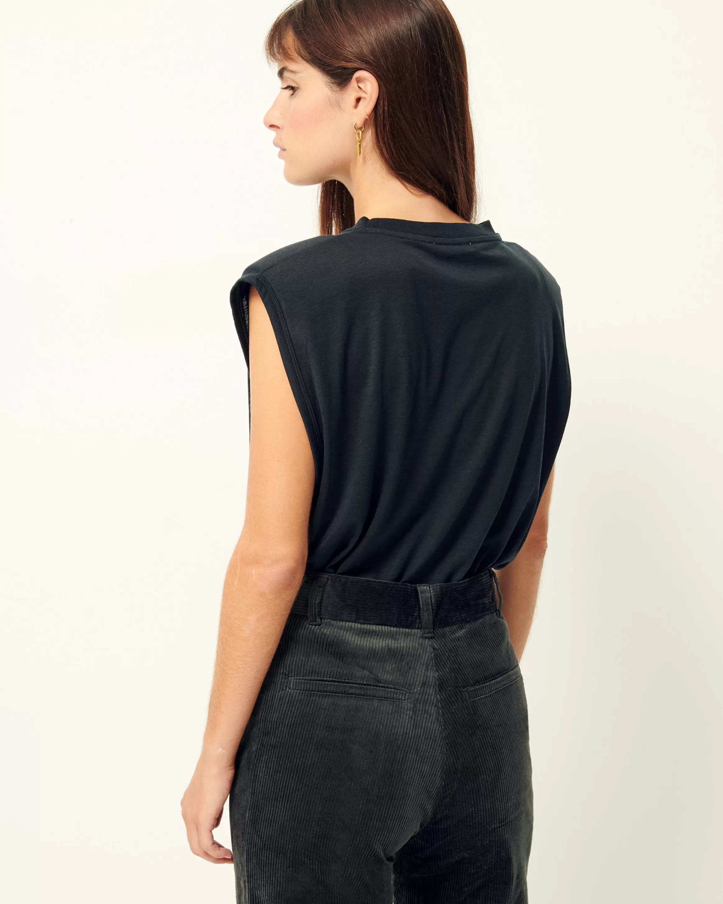 T-shirt col rond sans manches avec épaulettes en jersey fluide confectionné au Portugal.