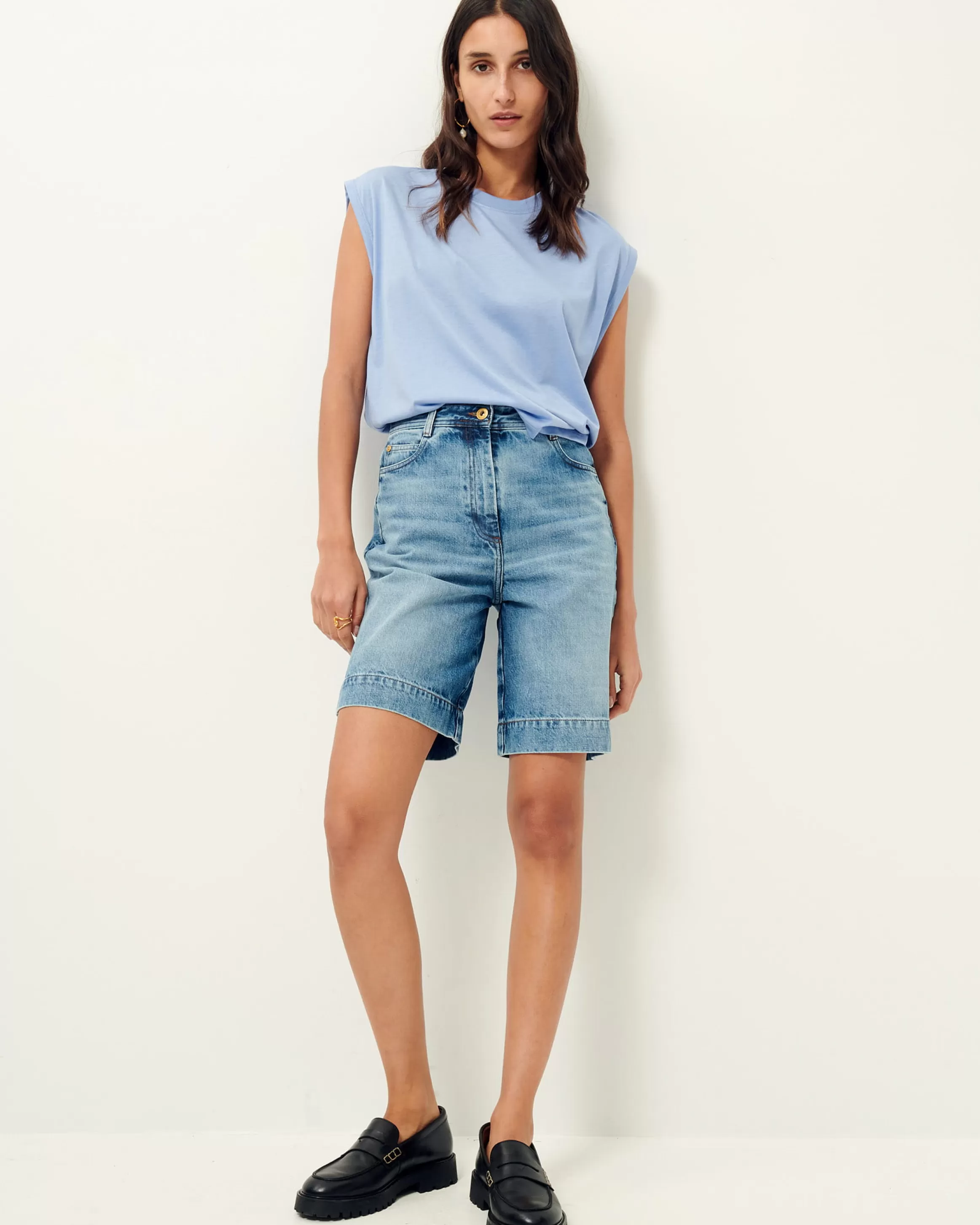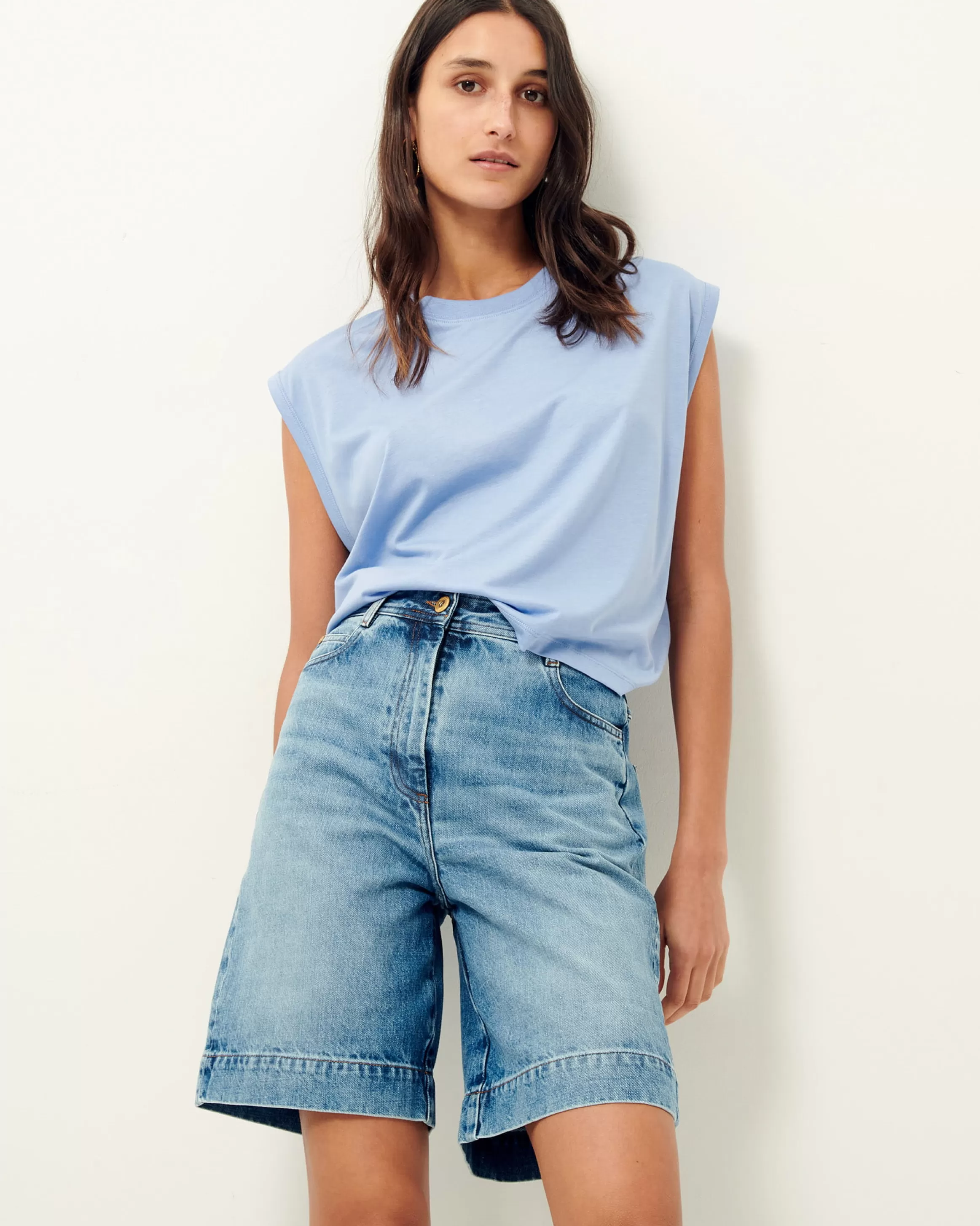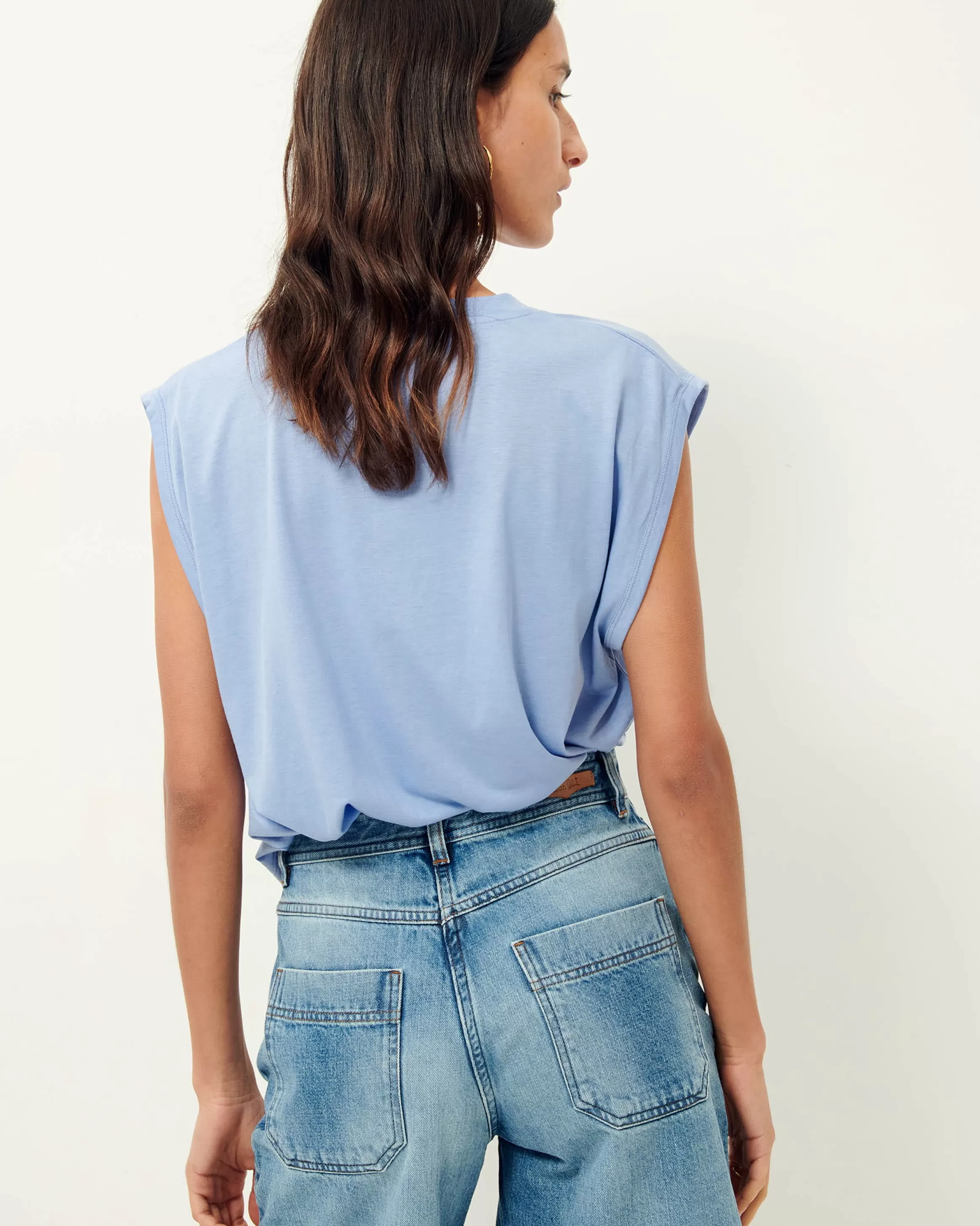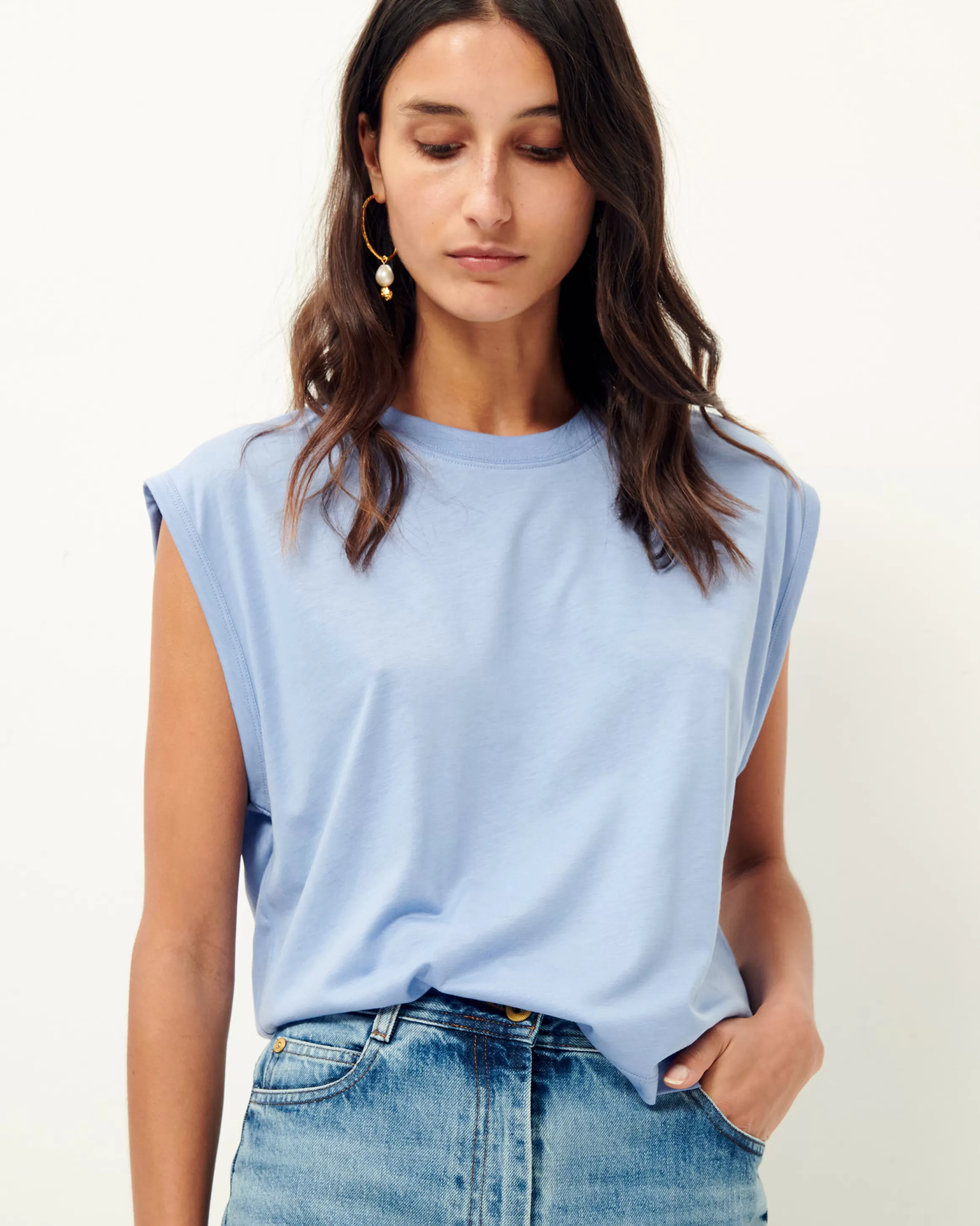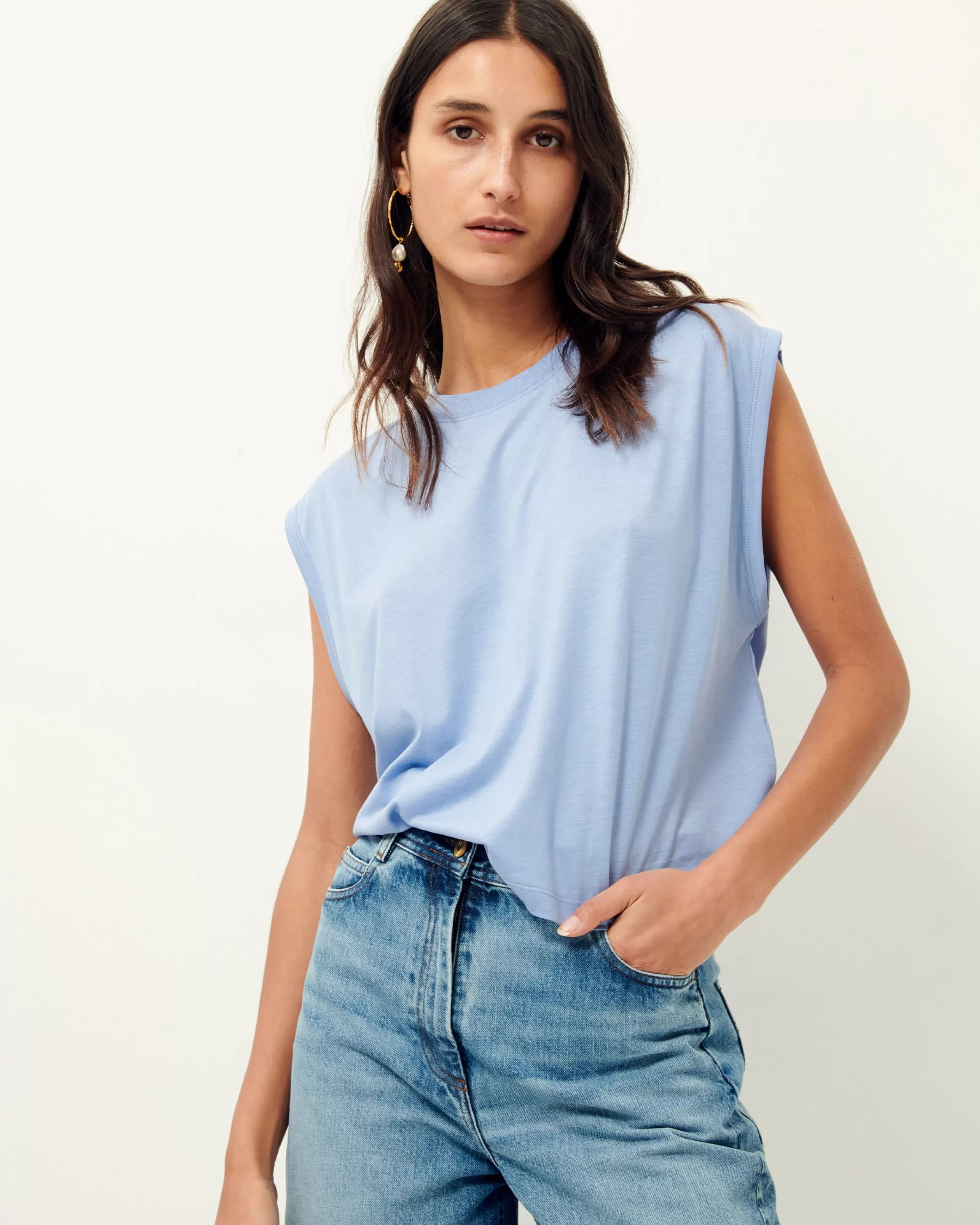 T-shirt col rond sans manches en jersey fluide confectionné au Portugal.