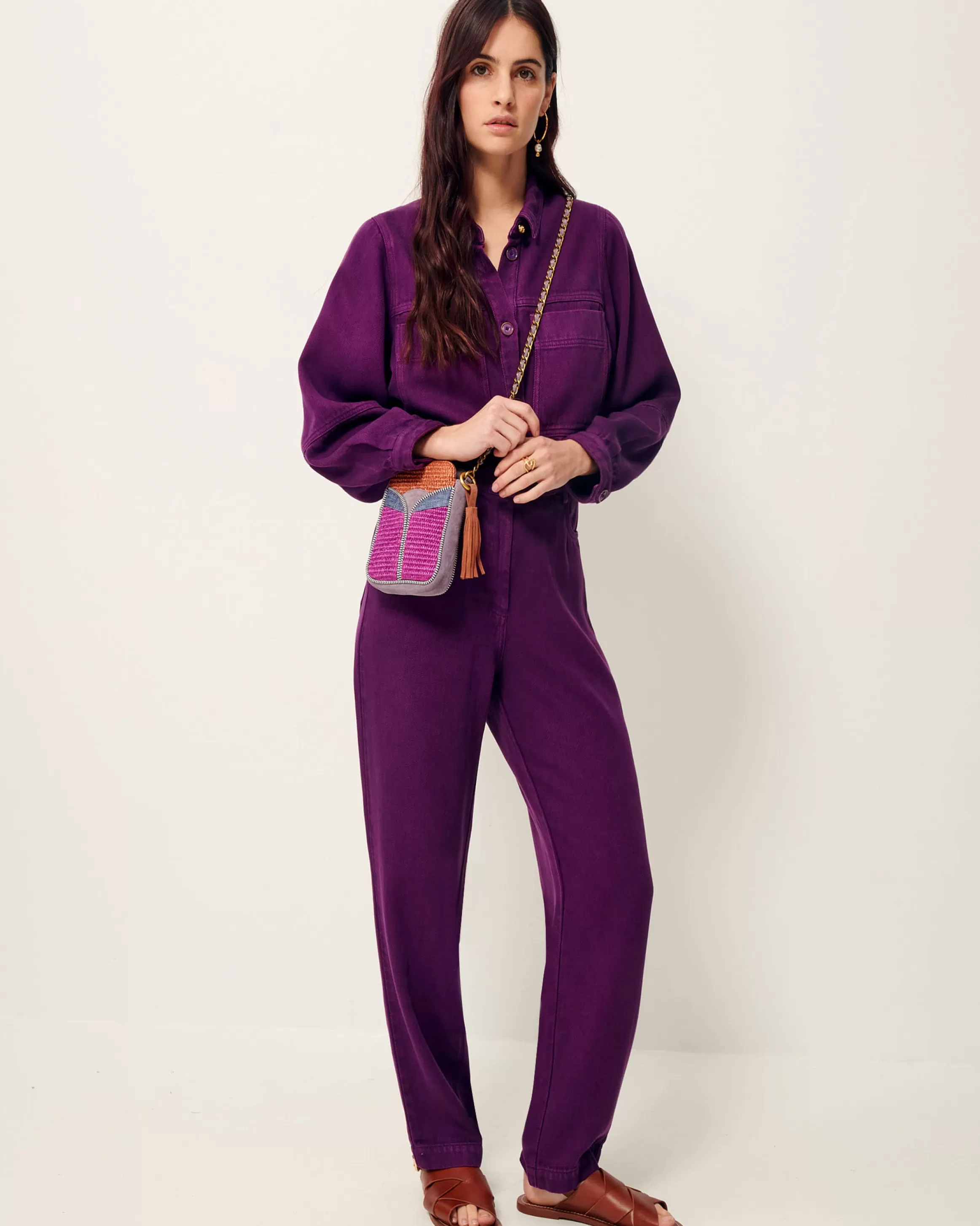 Porte portable en raphia et croûte de cuir.Le cuir utilisé pour la confection de ce produit provient d’une tannerie ce…