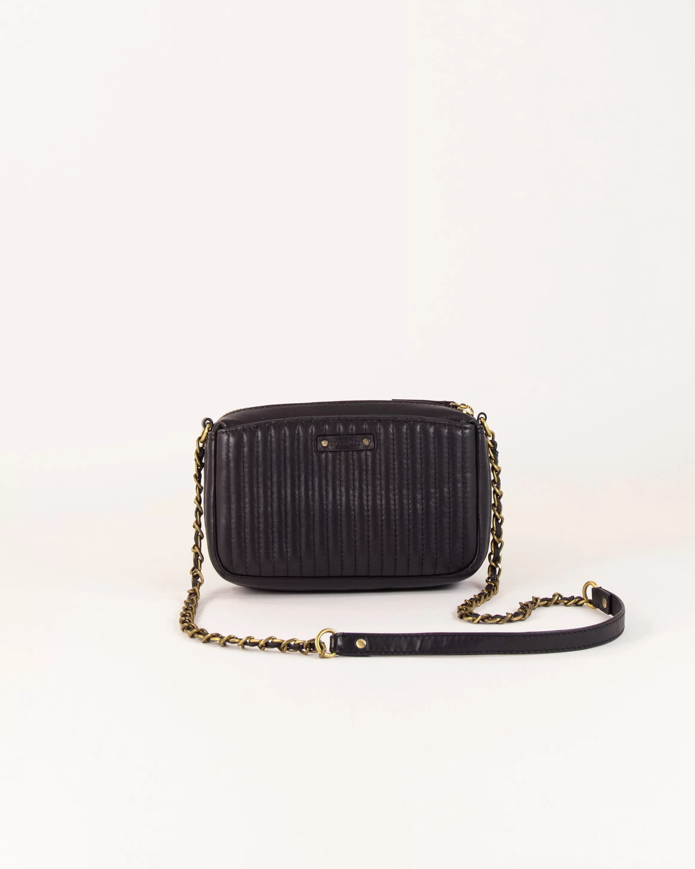 Petit sac en cuir lavé matelassé surpiqué, avec anse chaine bijou.