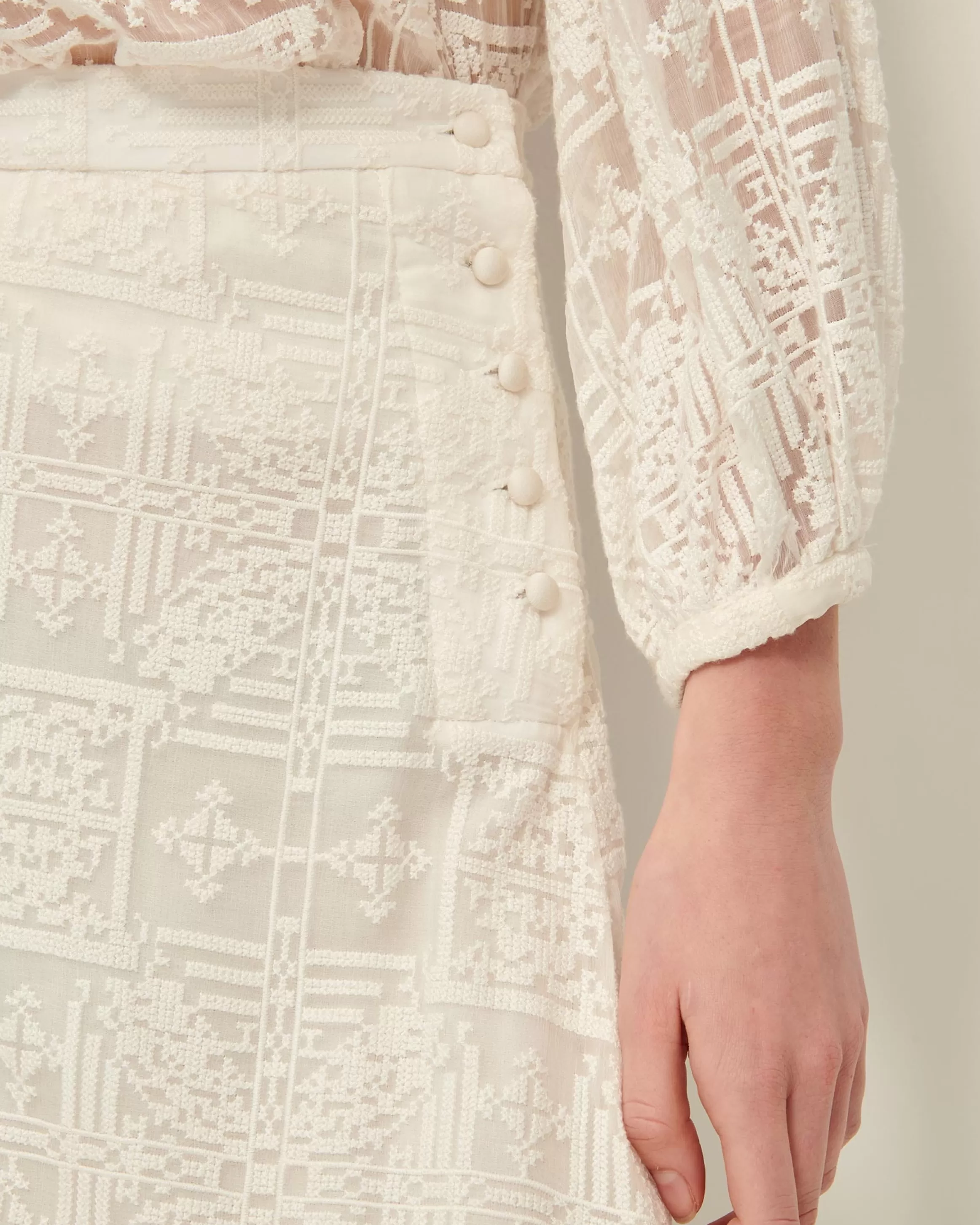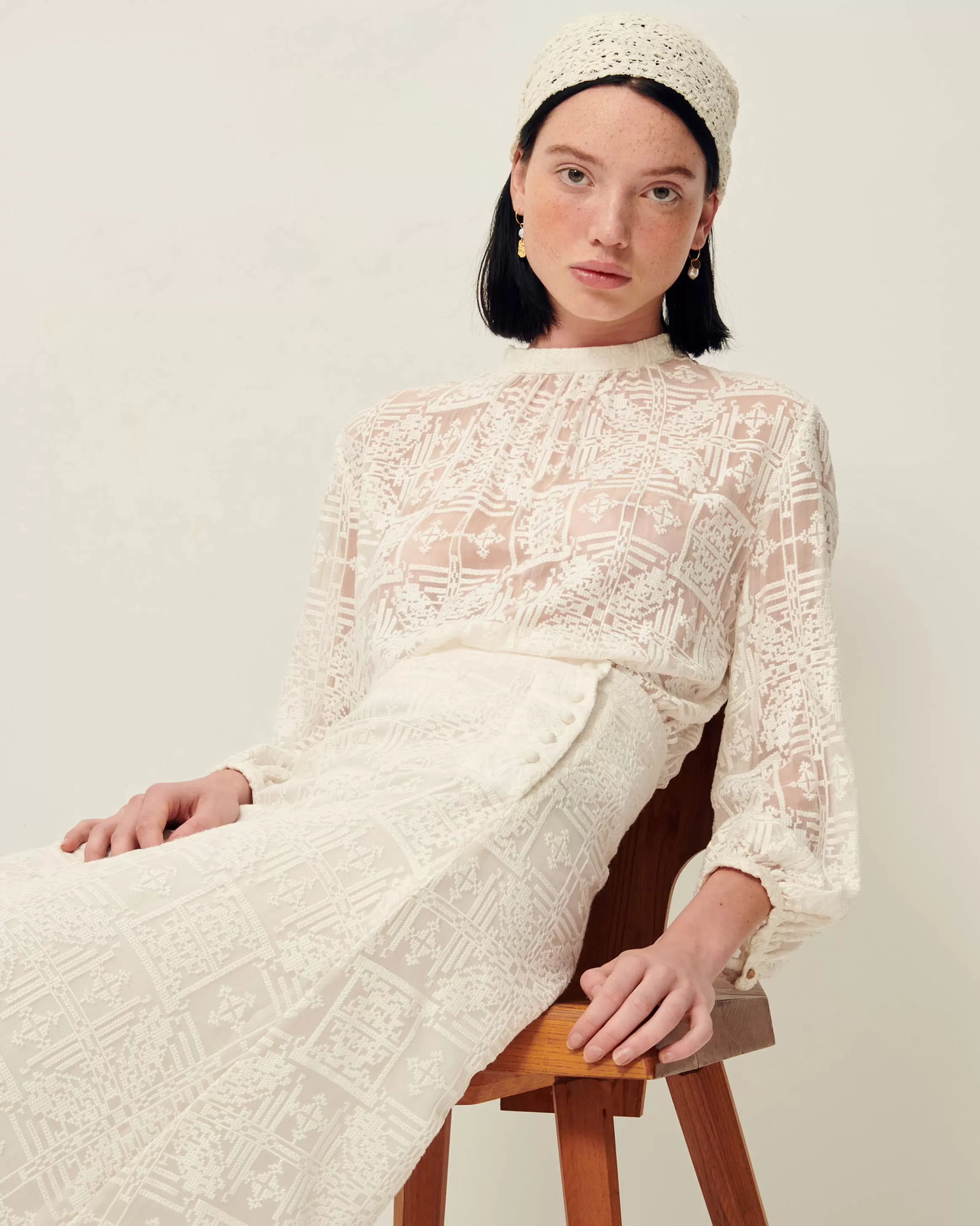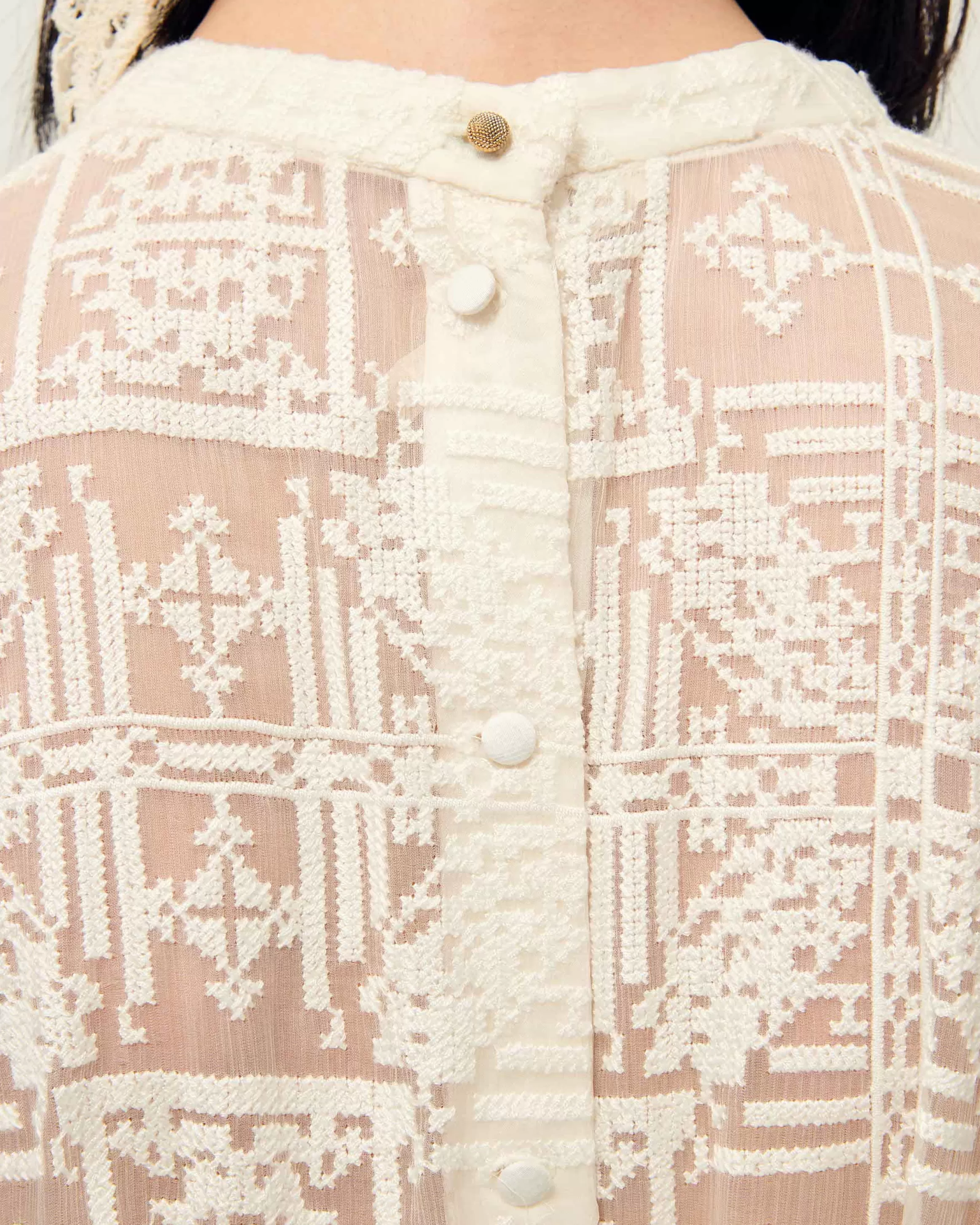 Blouse en mousseline brodée façon point de croix.