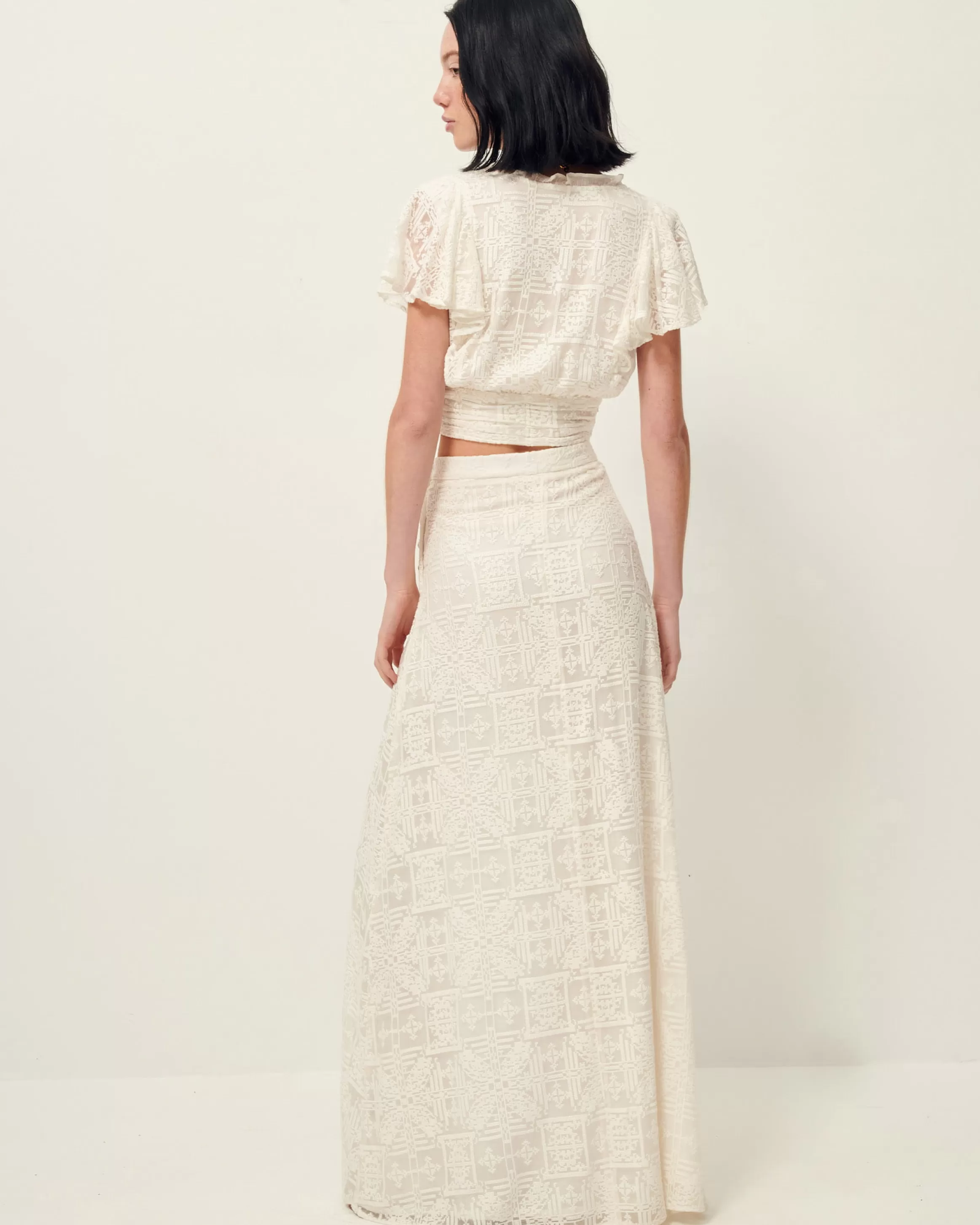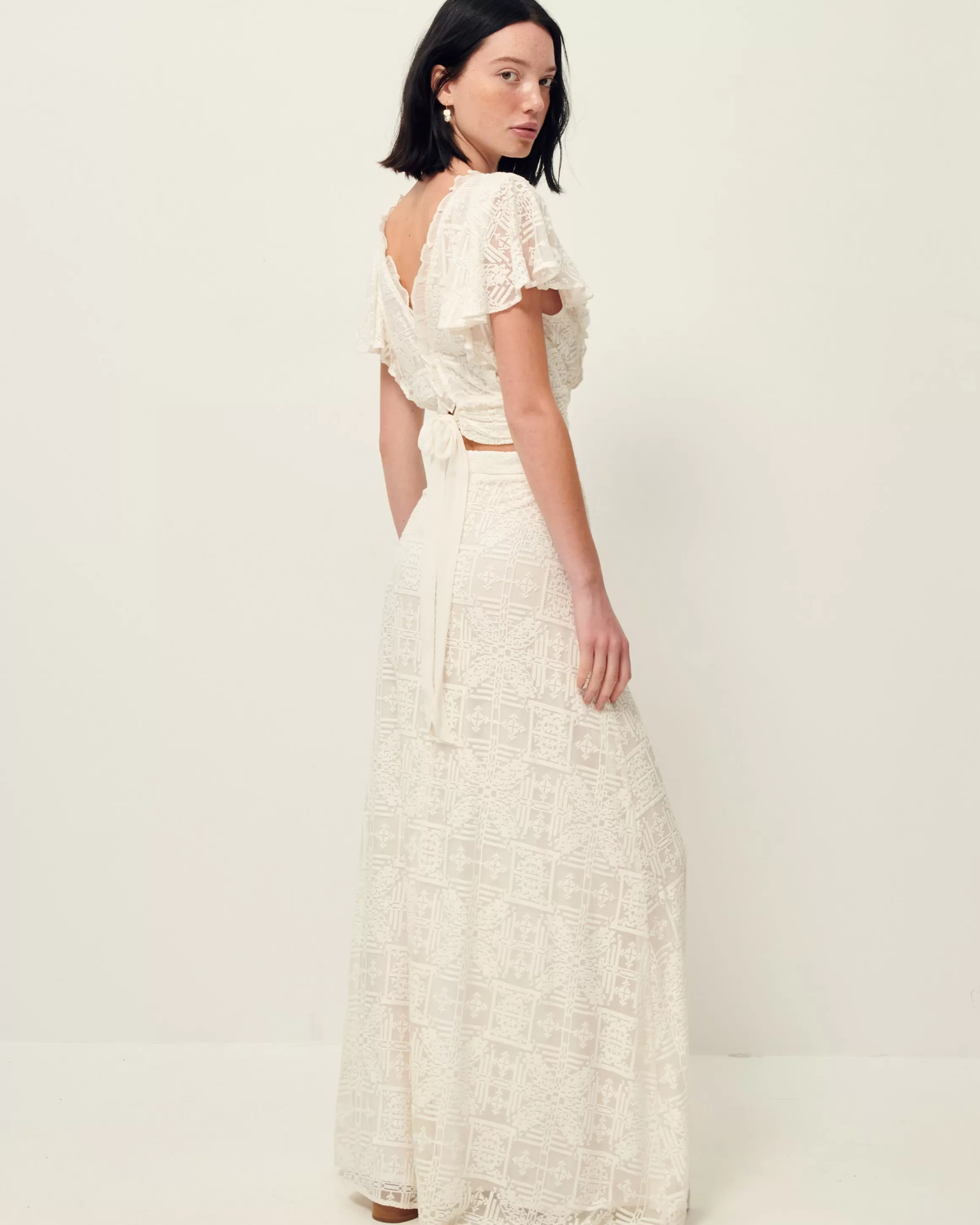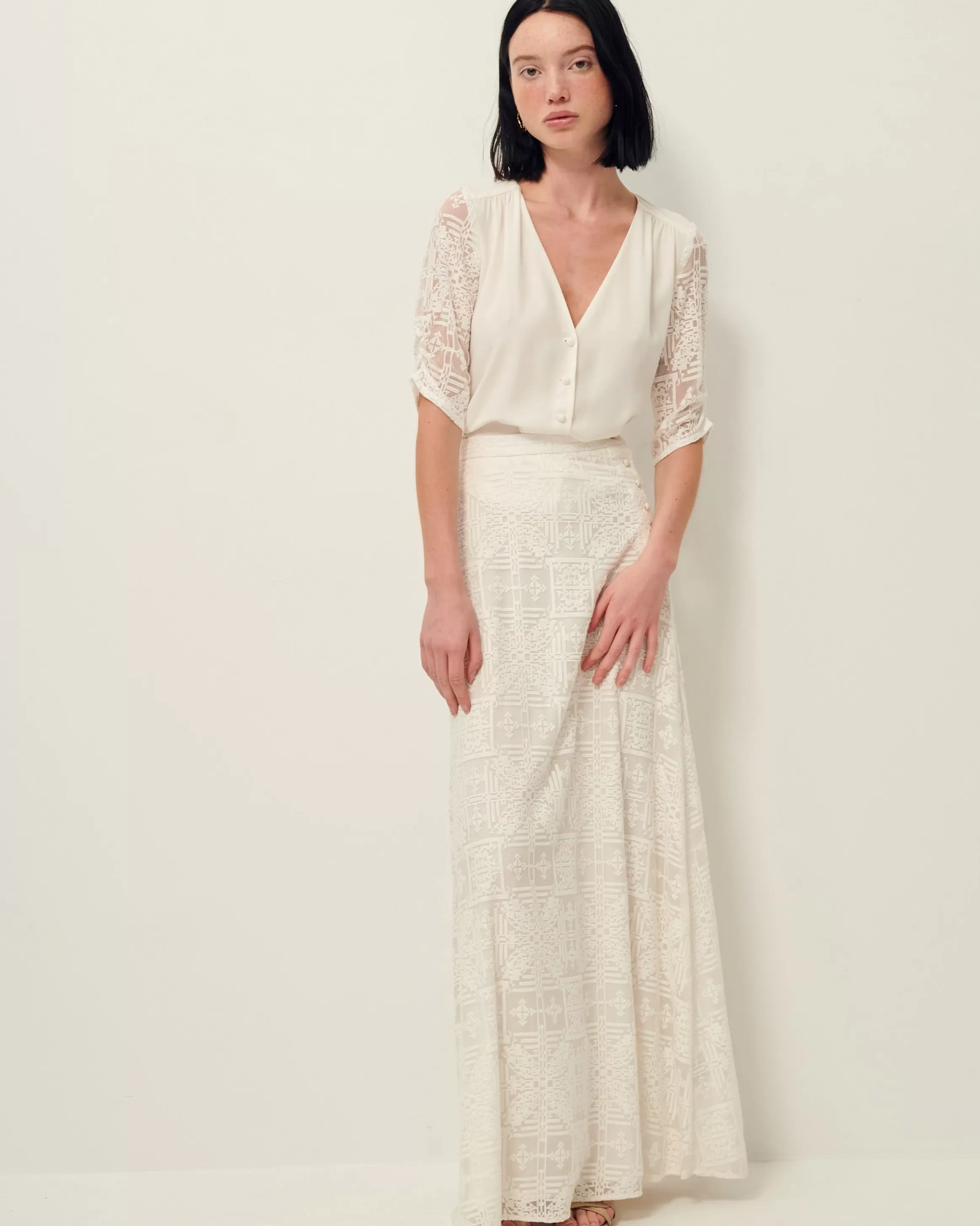 Jupe longue en dentelle points de croix sur mousseline de soie.Ilona mesure 1m75 et porte du 36.Entre deux tailles, priv…