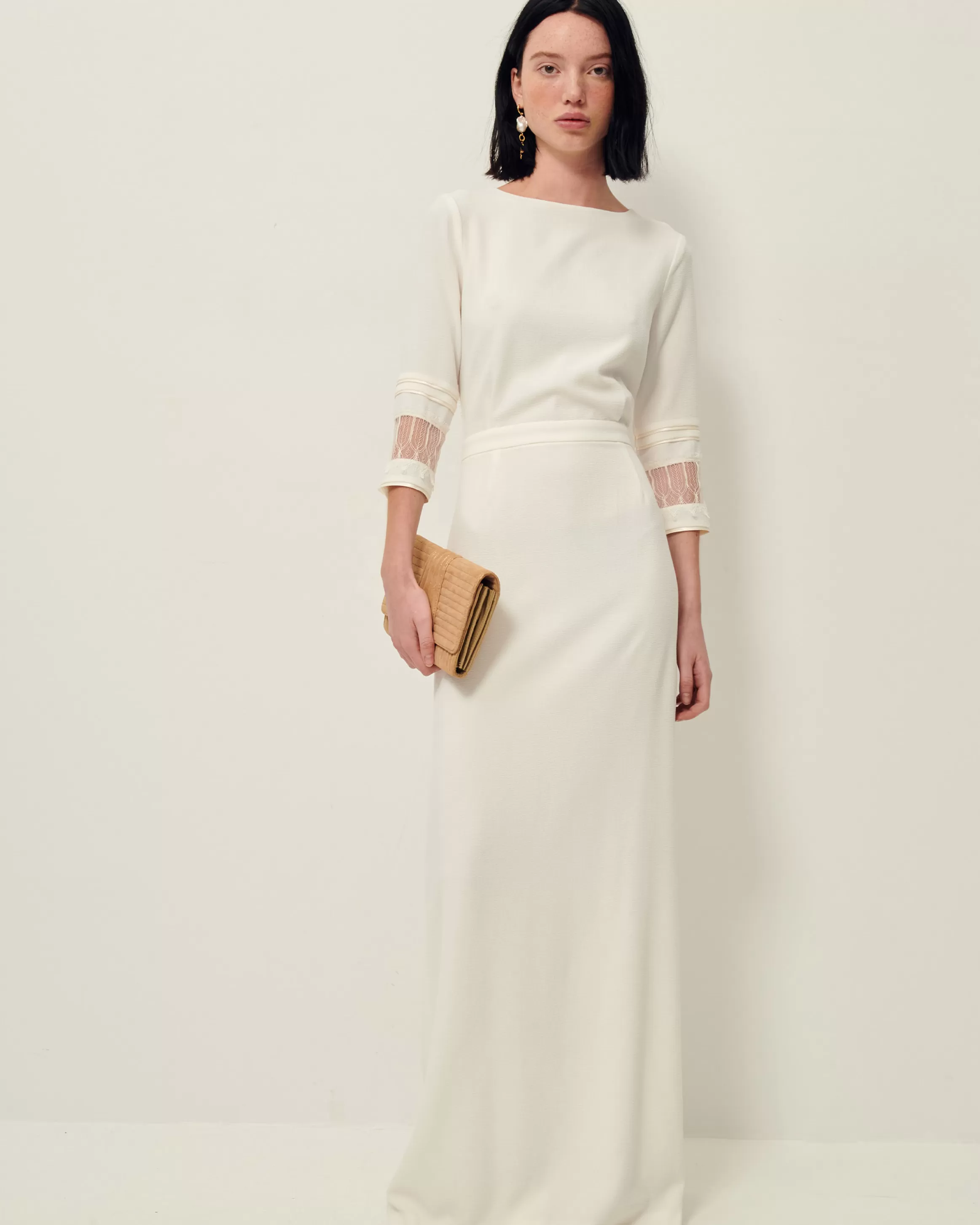 Pochette matelassée, croûte de cuir métallisée. DISPONIBLE FIN-FEVRIEREmpiècement surpiqué devant. Trois poches i…