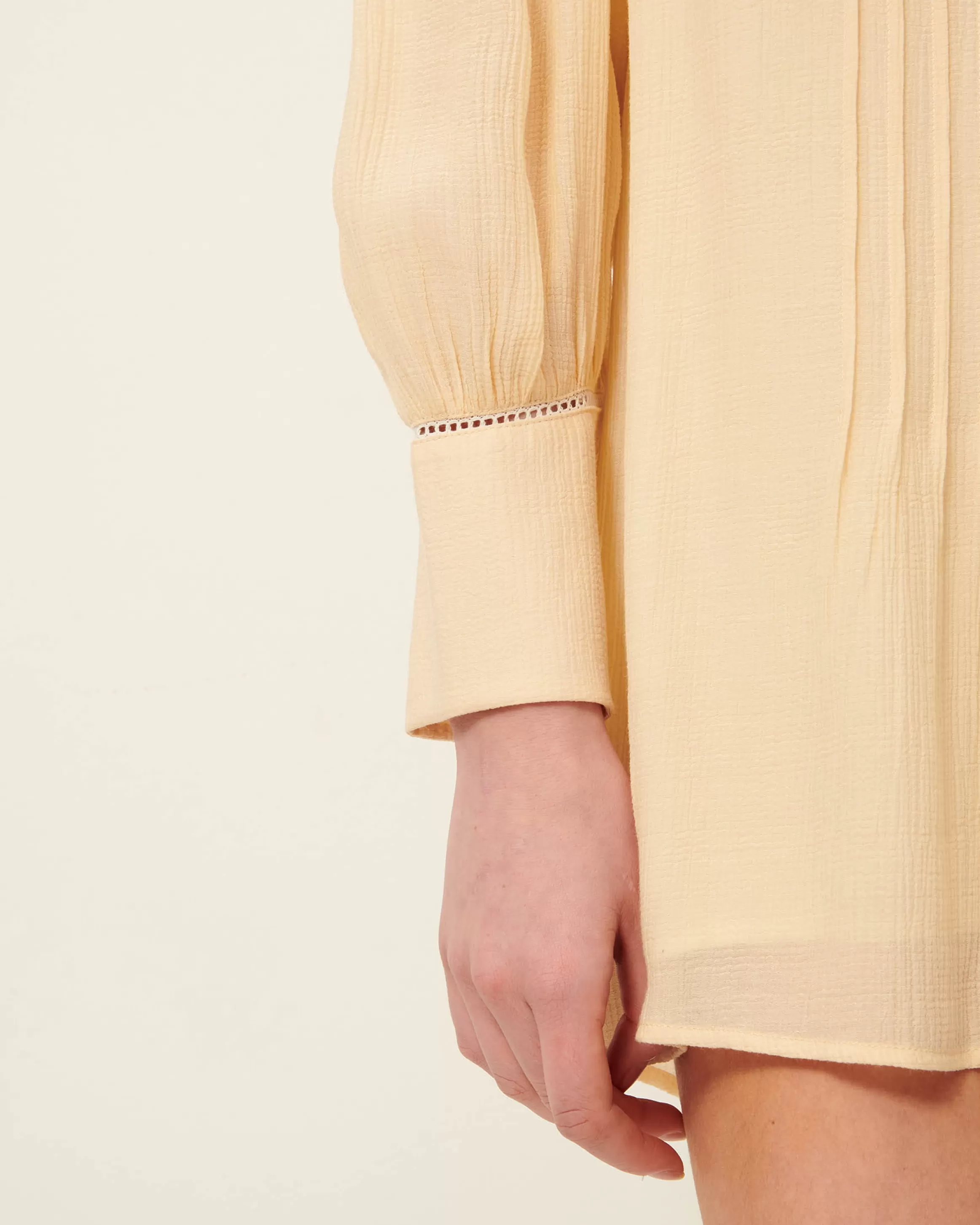 Robe courte en crépon de viscose satiné, détails de plis piqués et de galons ajourésCe produit est composé de visc…