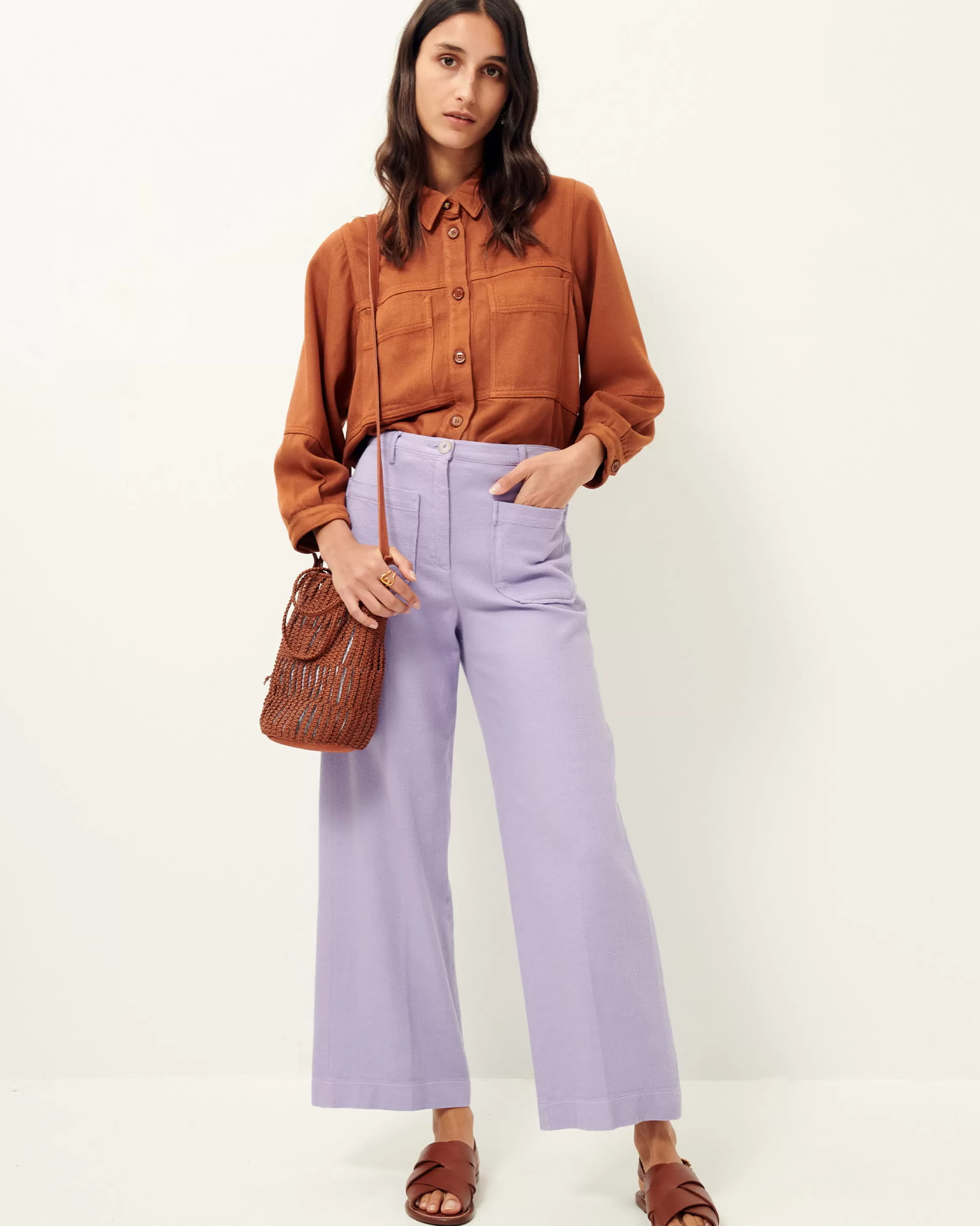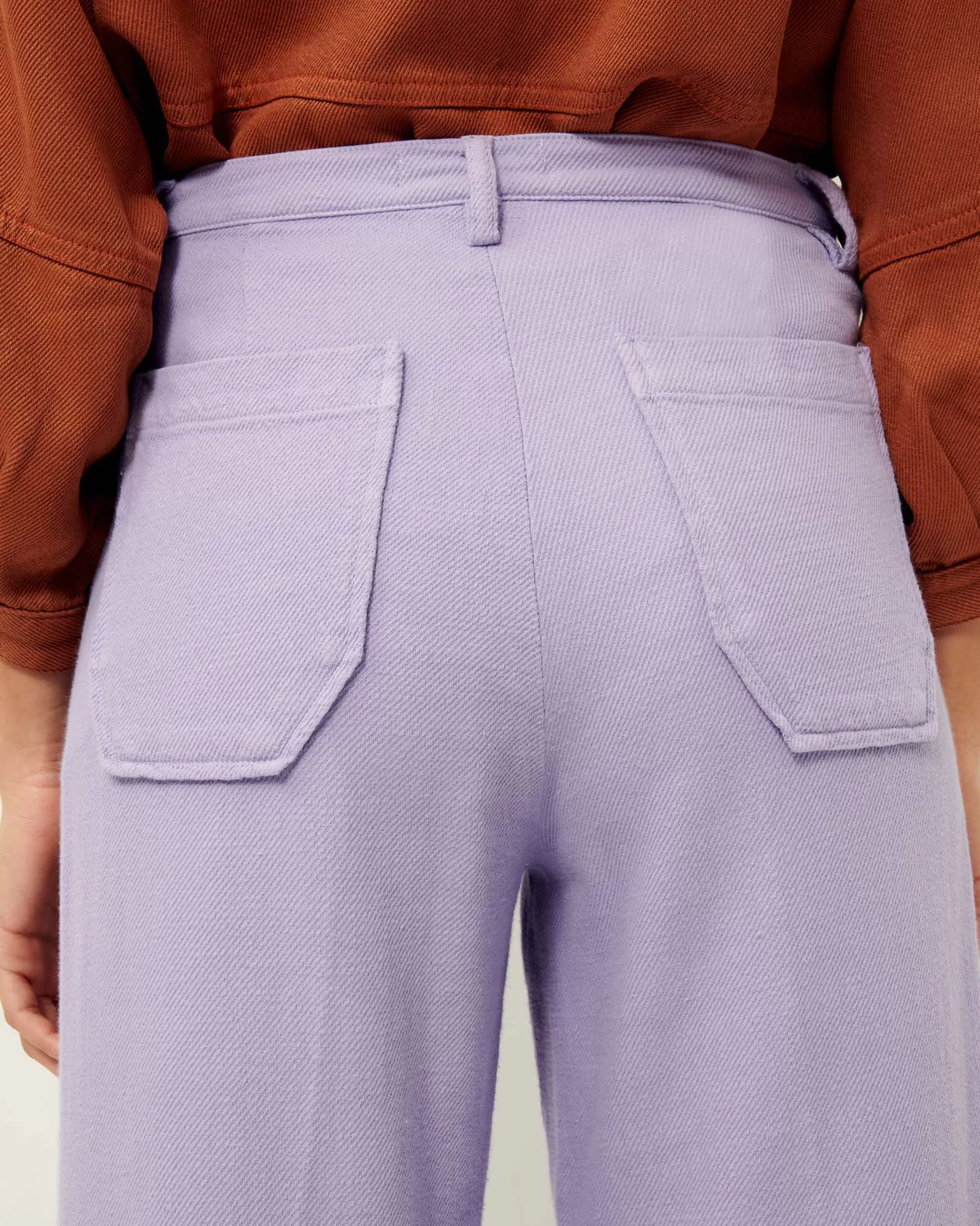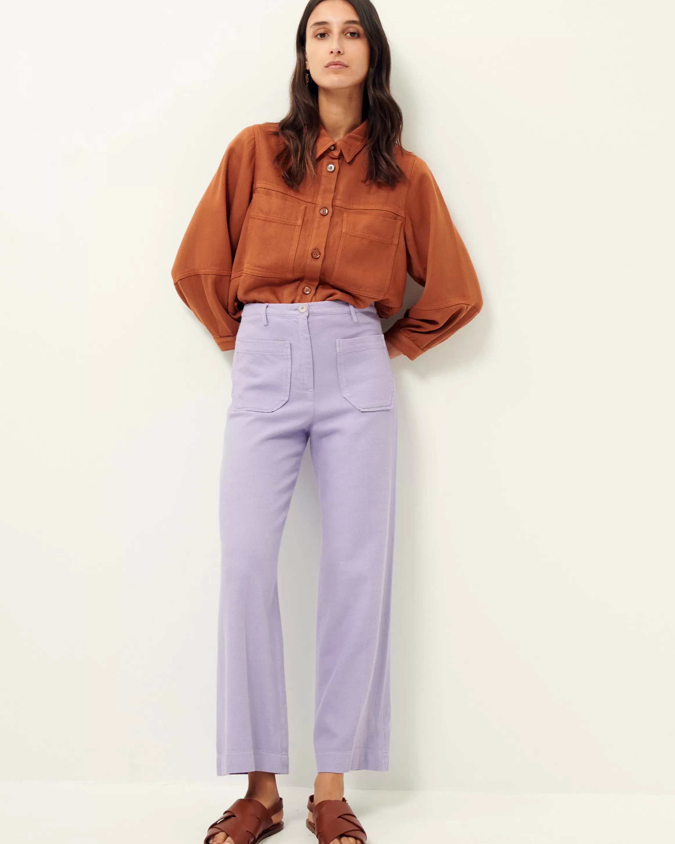 Pantalon droit à plis marqués en tricotine de coton, teinte en plongée, tissée en Espagne.Lala mesure 1m73 et porte …
