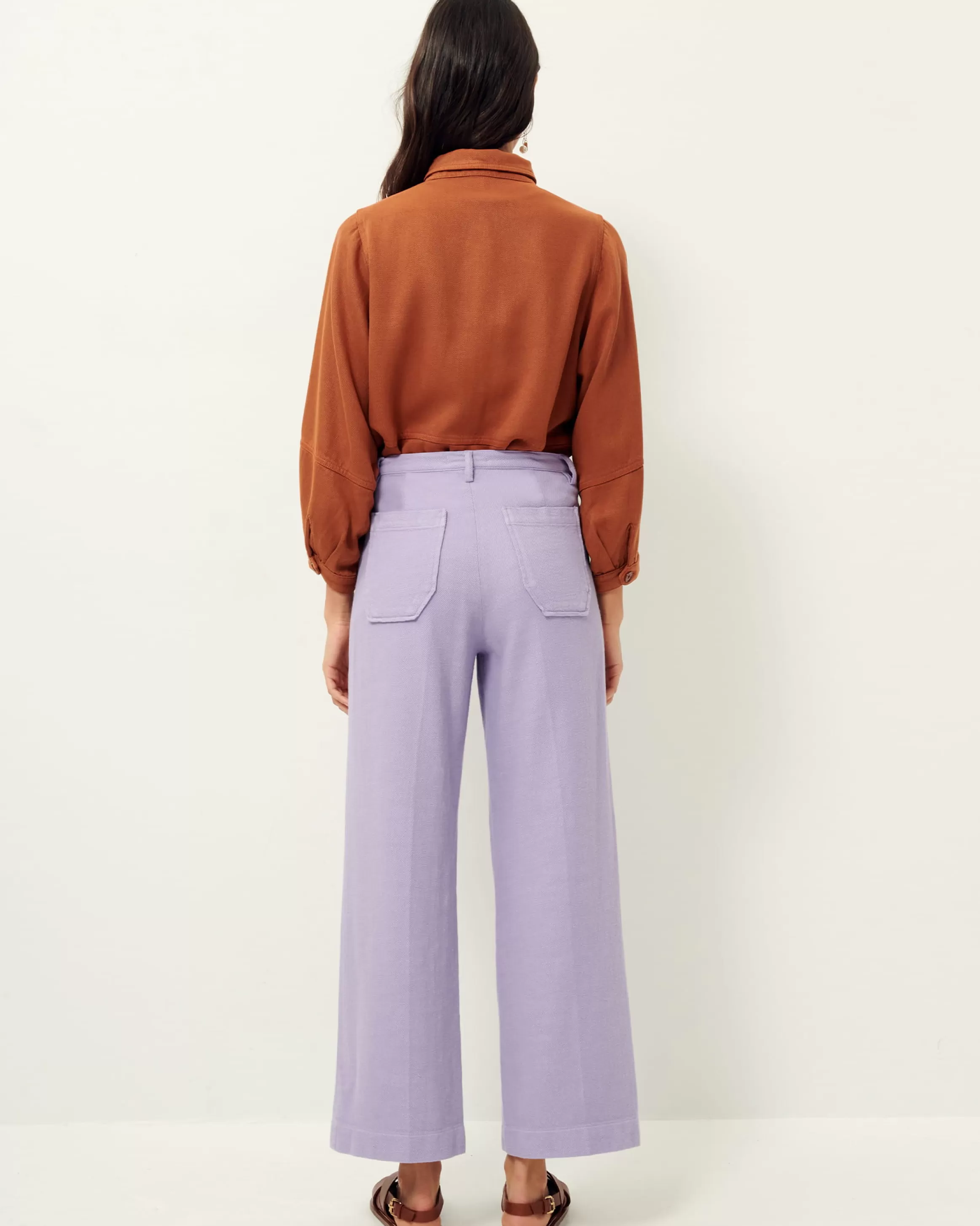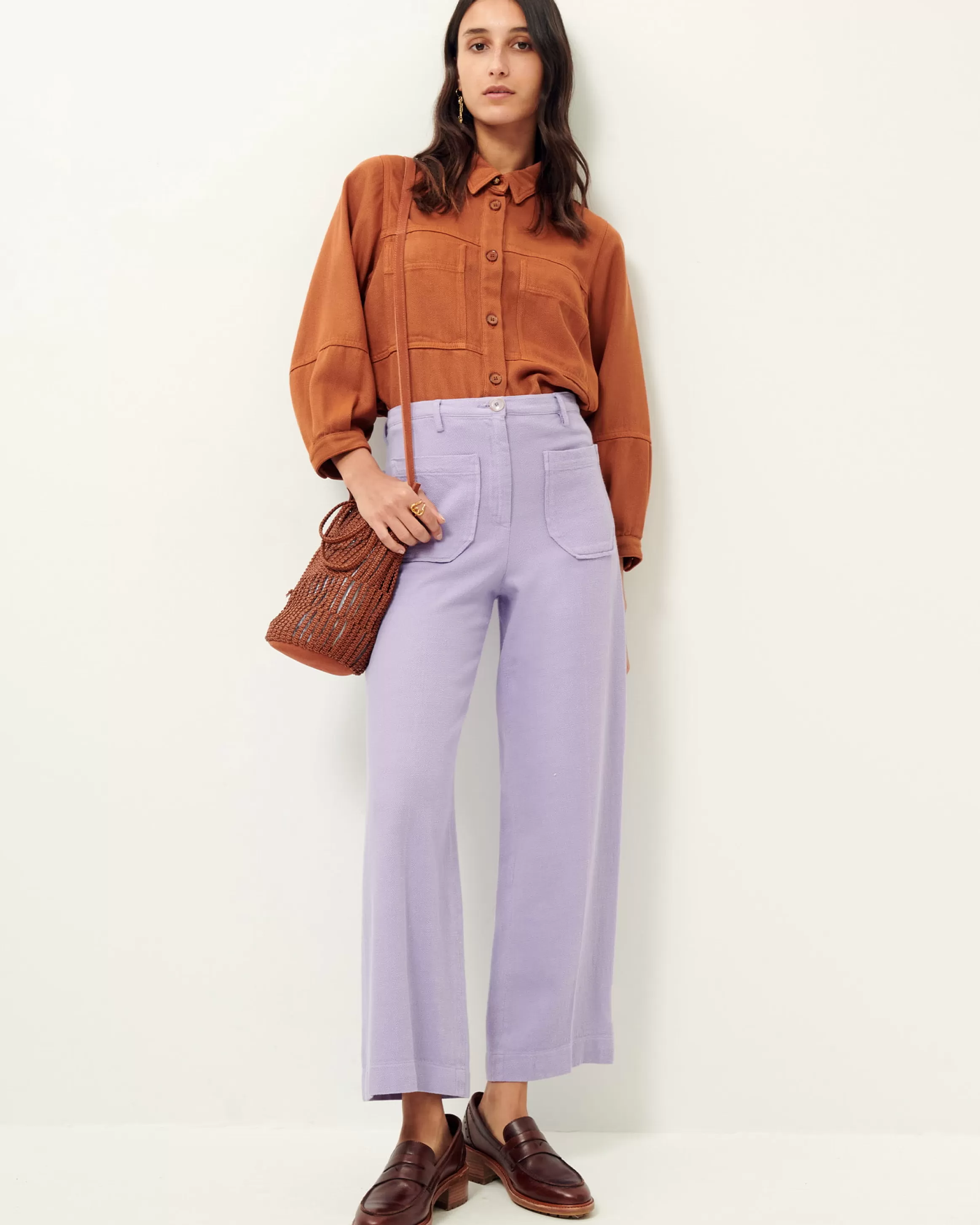 Pantalon droit à plis marqués en tricotine de coton, teinte en plongée, tissée en Espagne.Lala mesure 1m73 et porte …