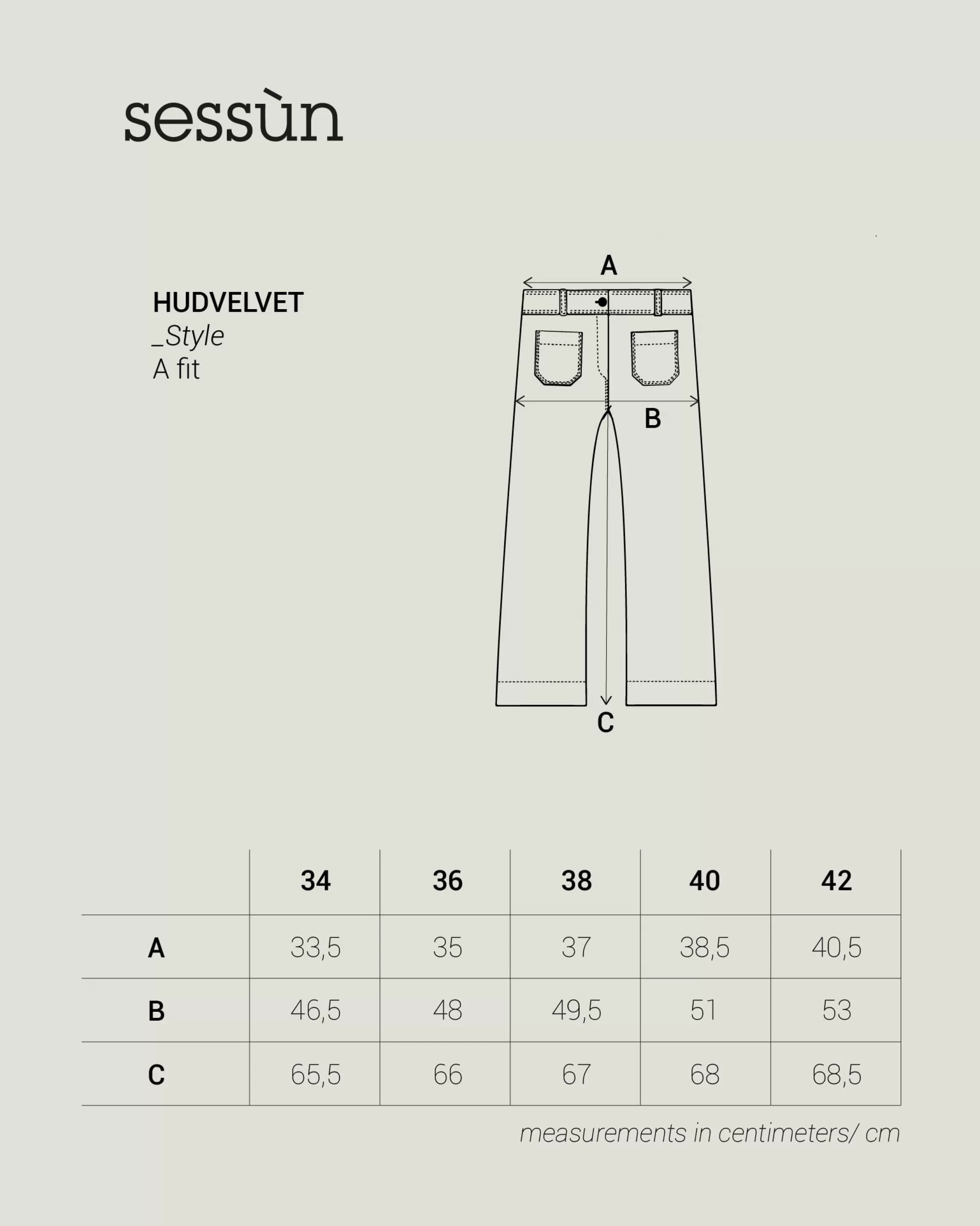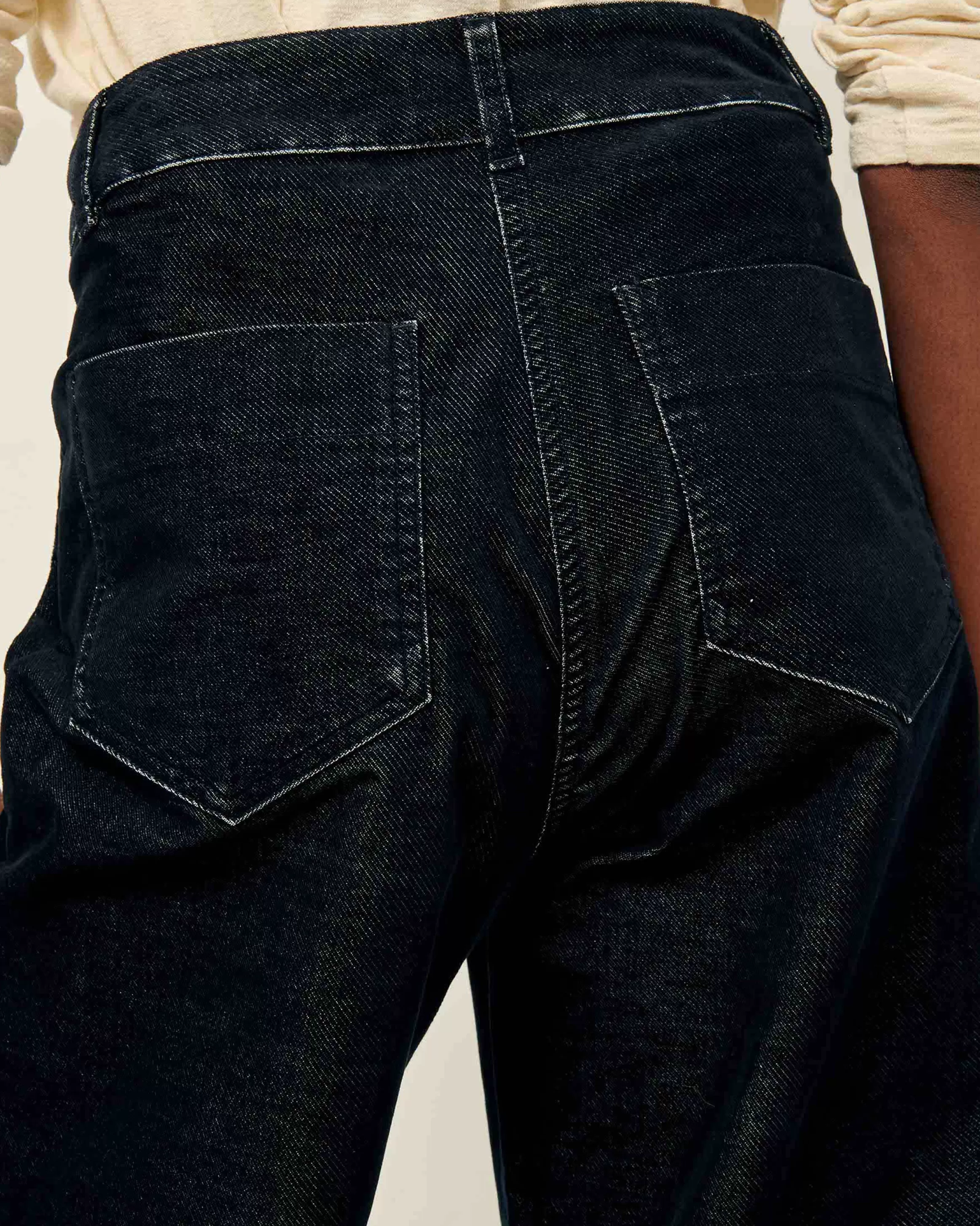 Pantalon en A en velours chambray ras, esprit denim, tissé en Espagne.
