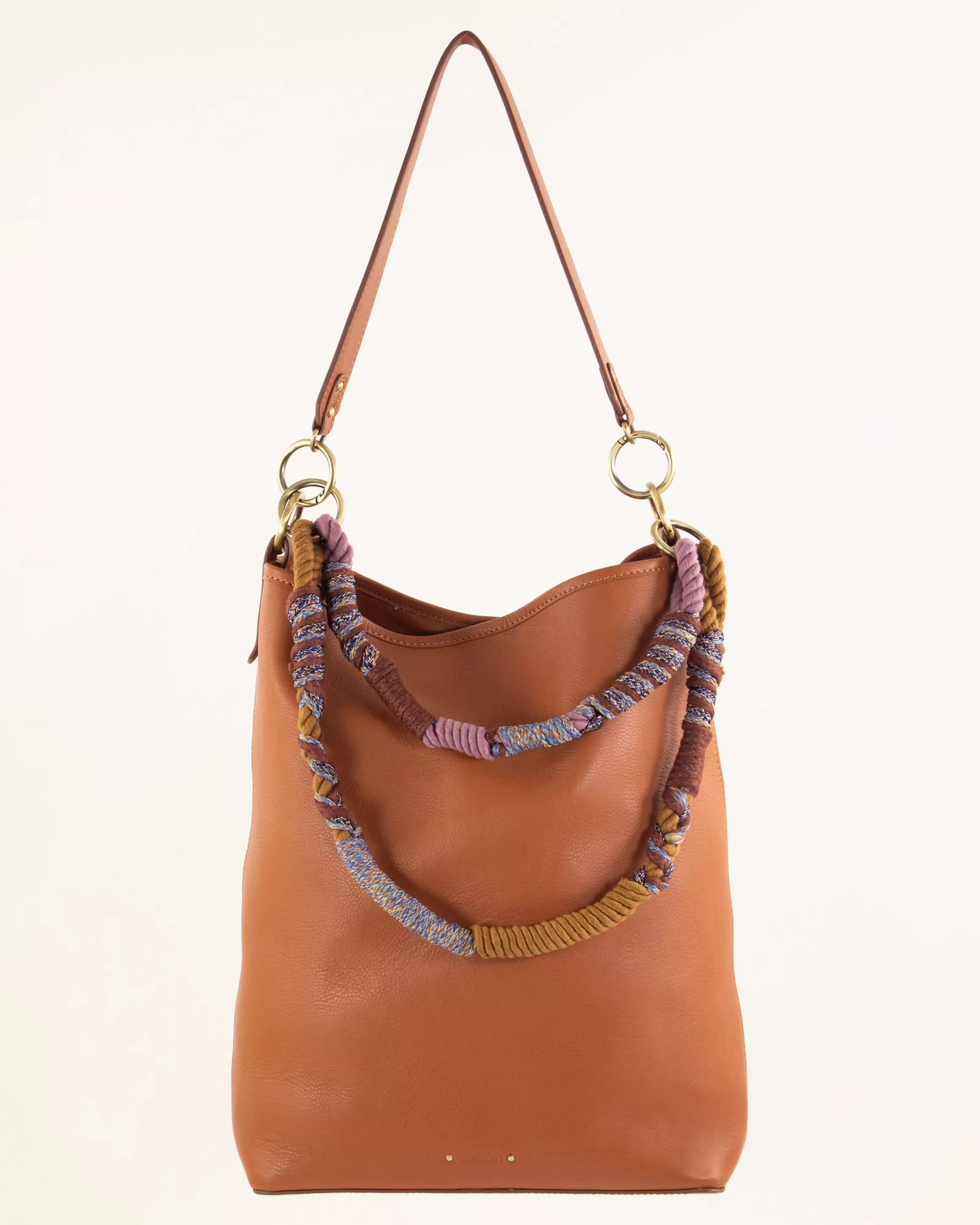 Large sac en cuir de vache, jeu de anses fantaisie et cuir.