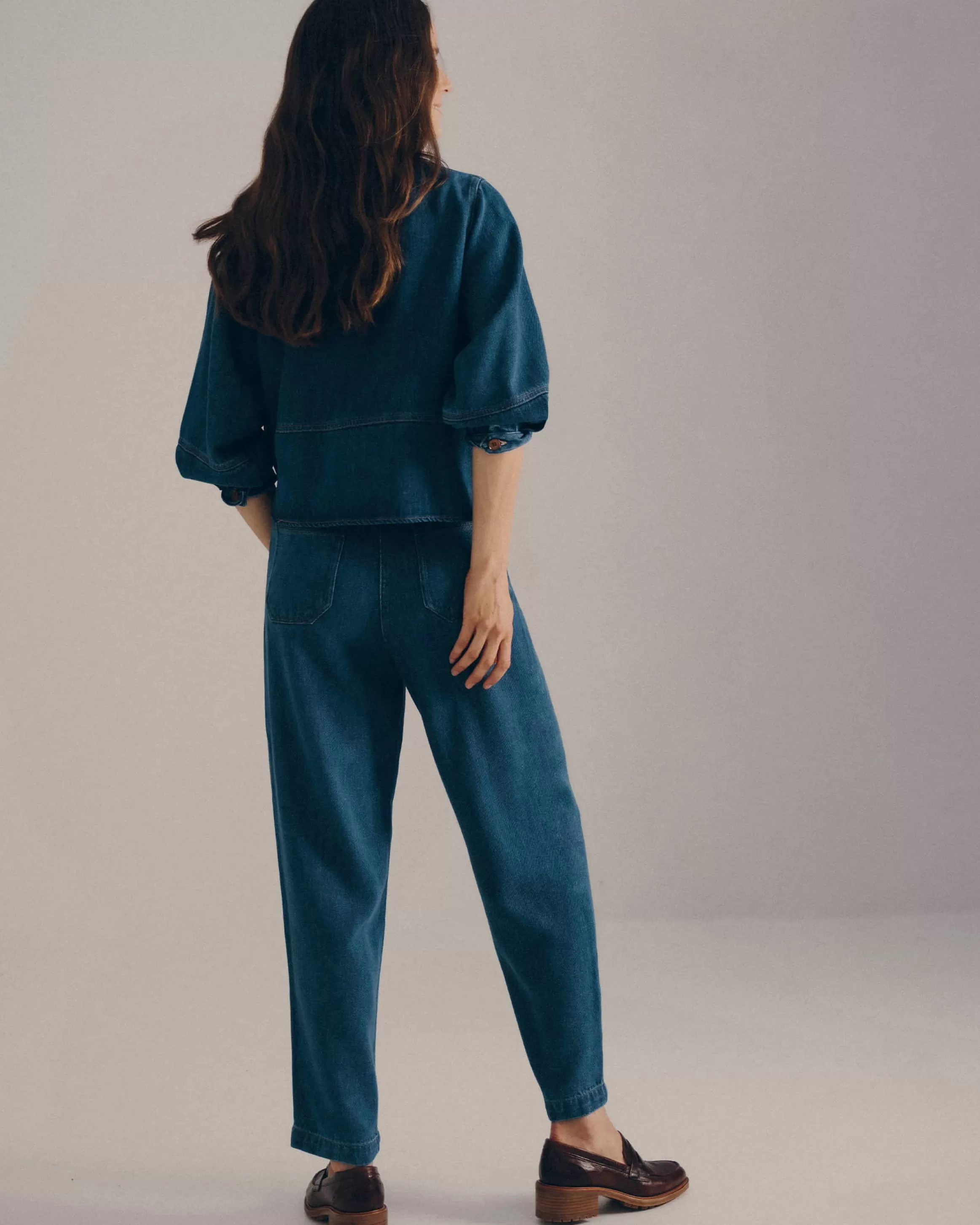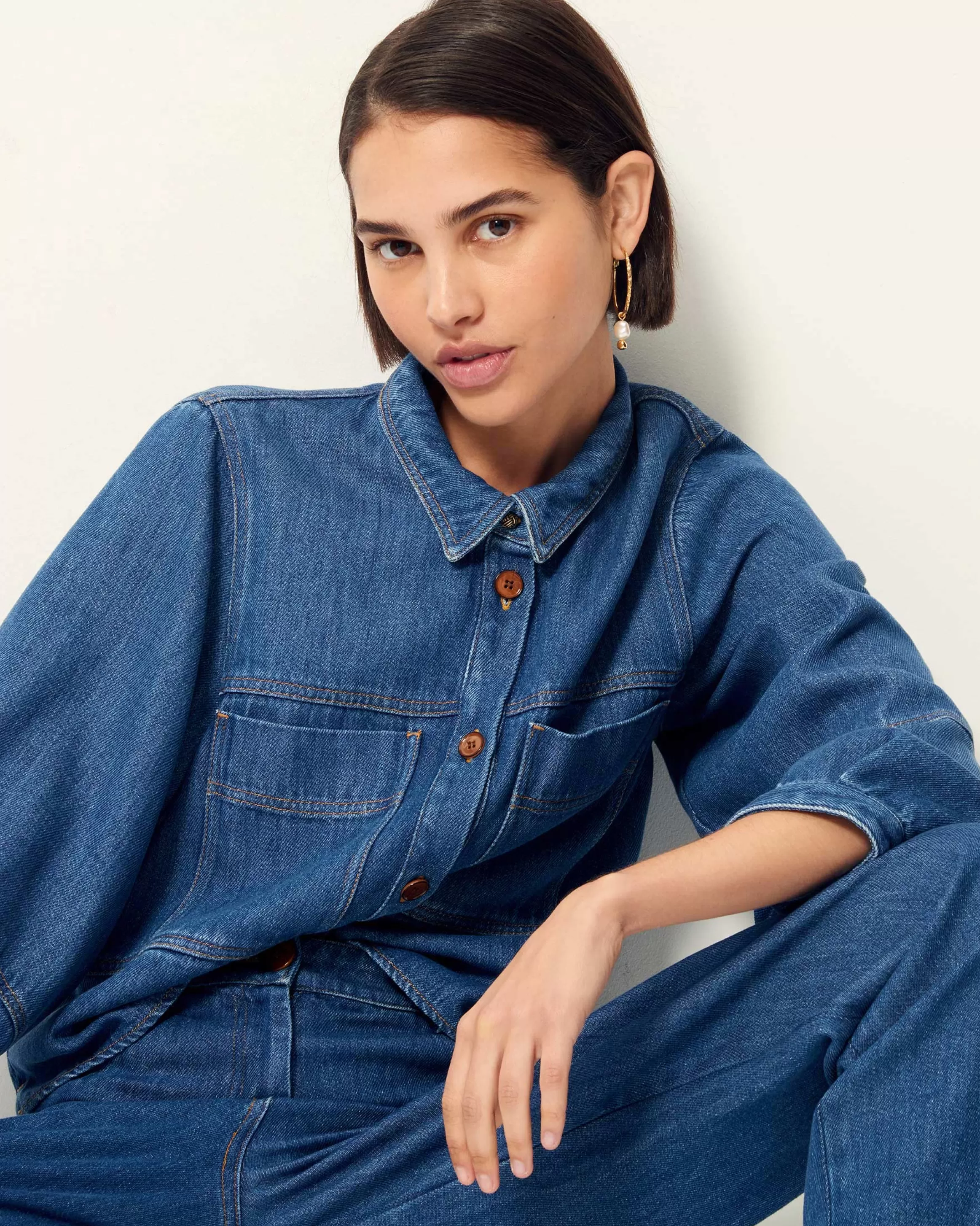 Surchemise à manches ballon en denim fluide stonewashé, tissée en Espagne.Le lyocell utilisé dans la confection de c…