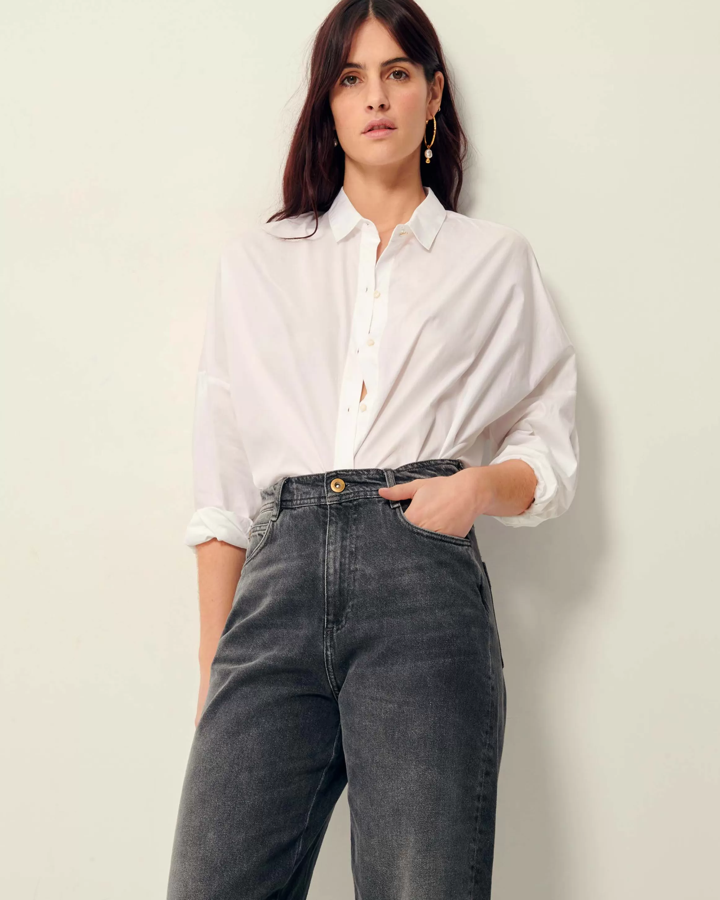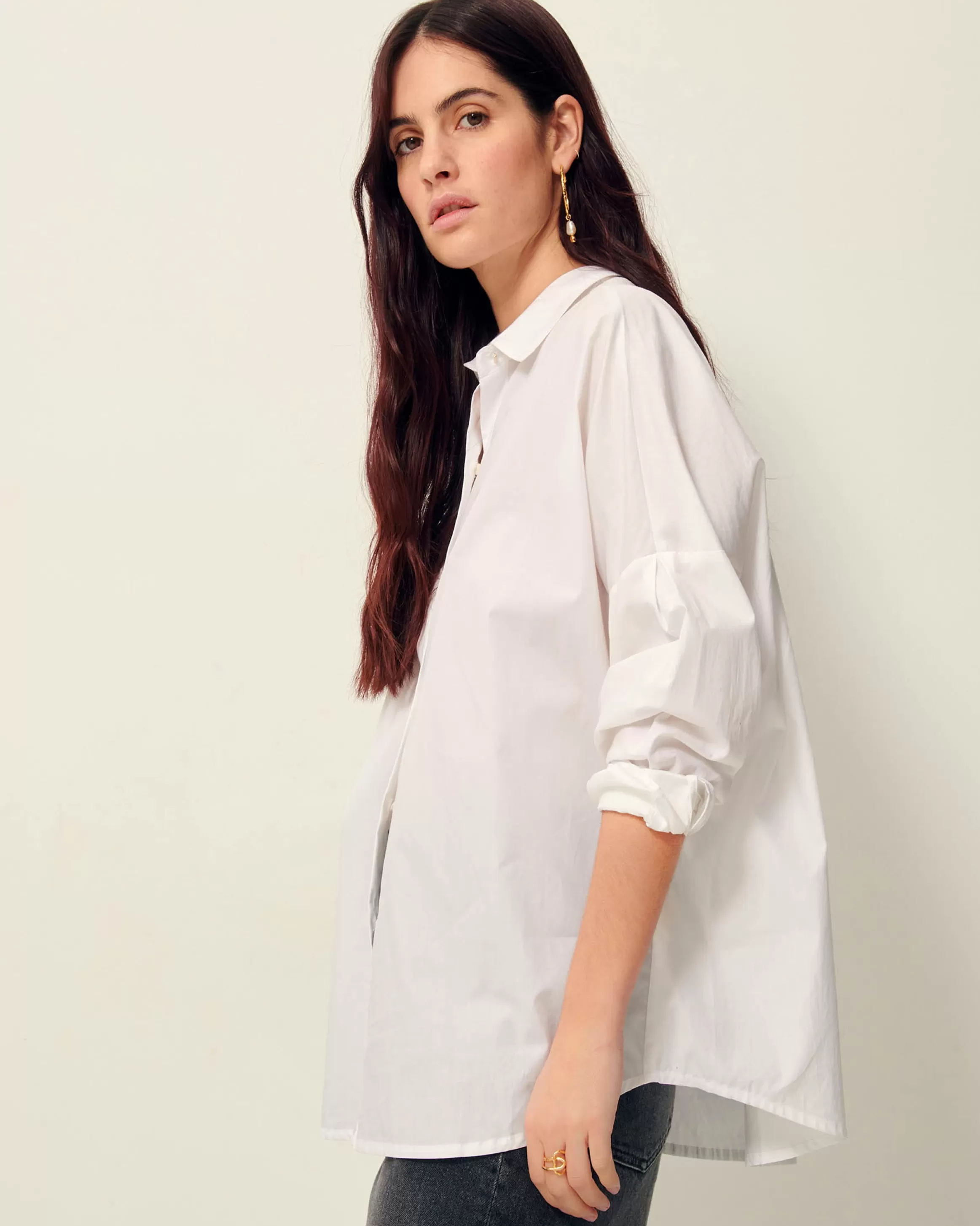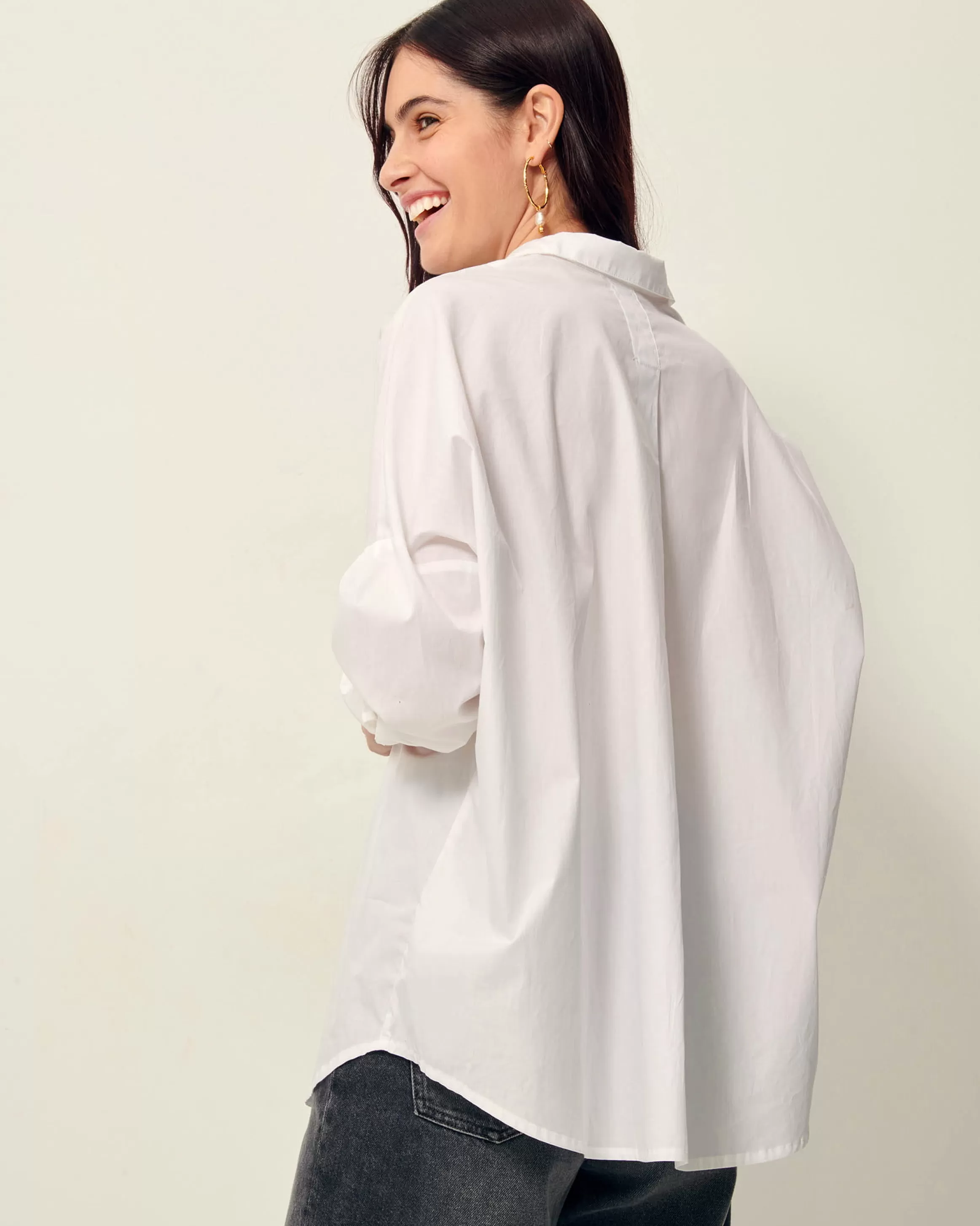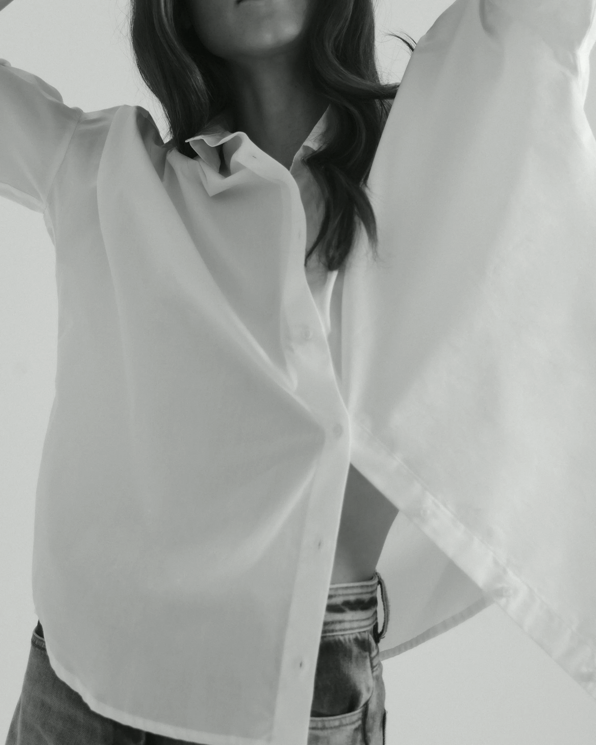 Chemise en popeline de coton organique compacte tissée en Italie, inspirée d’une chemise d’homme.
