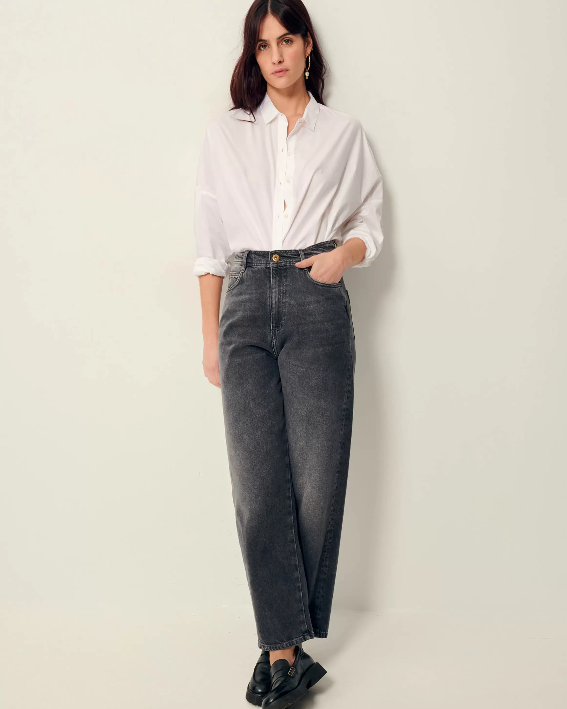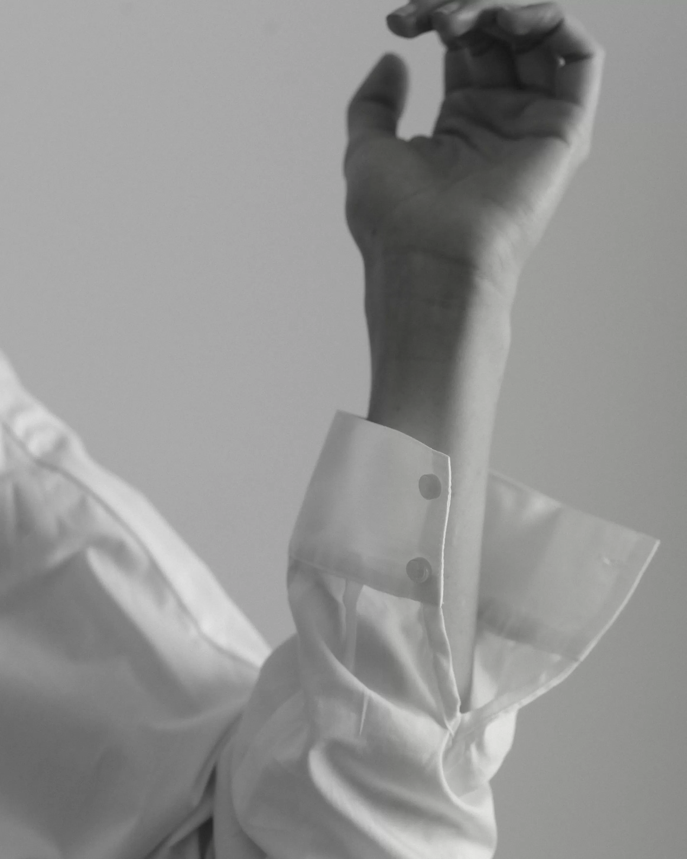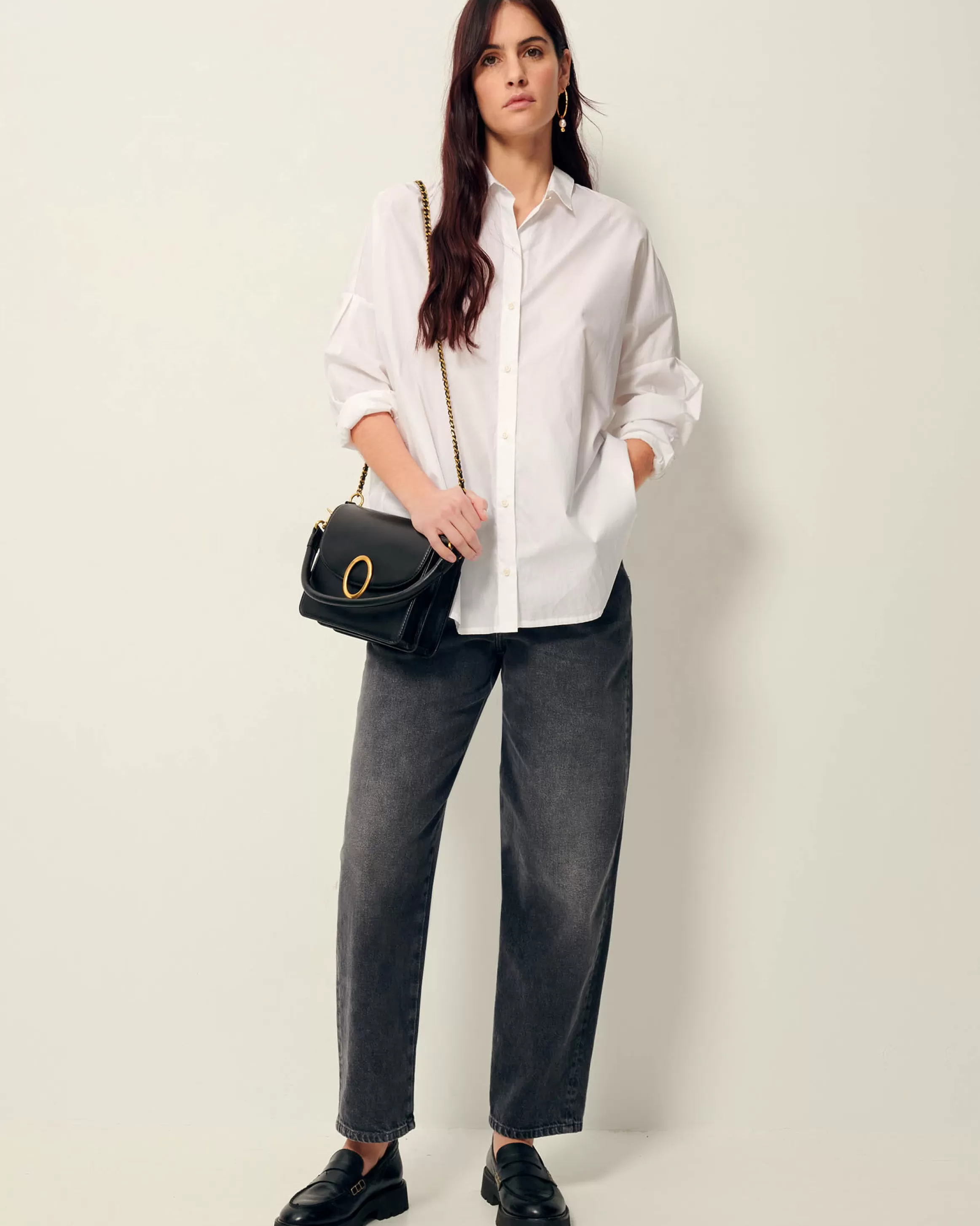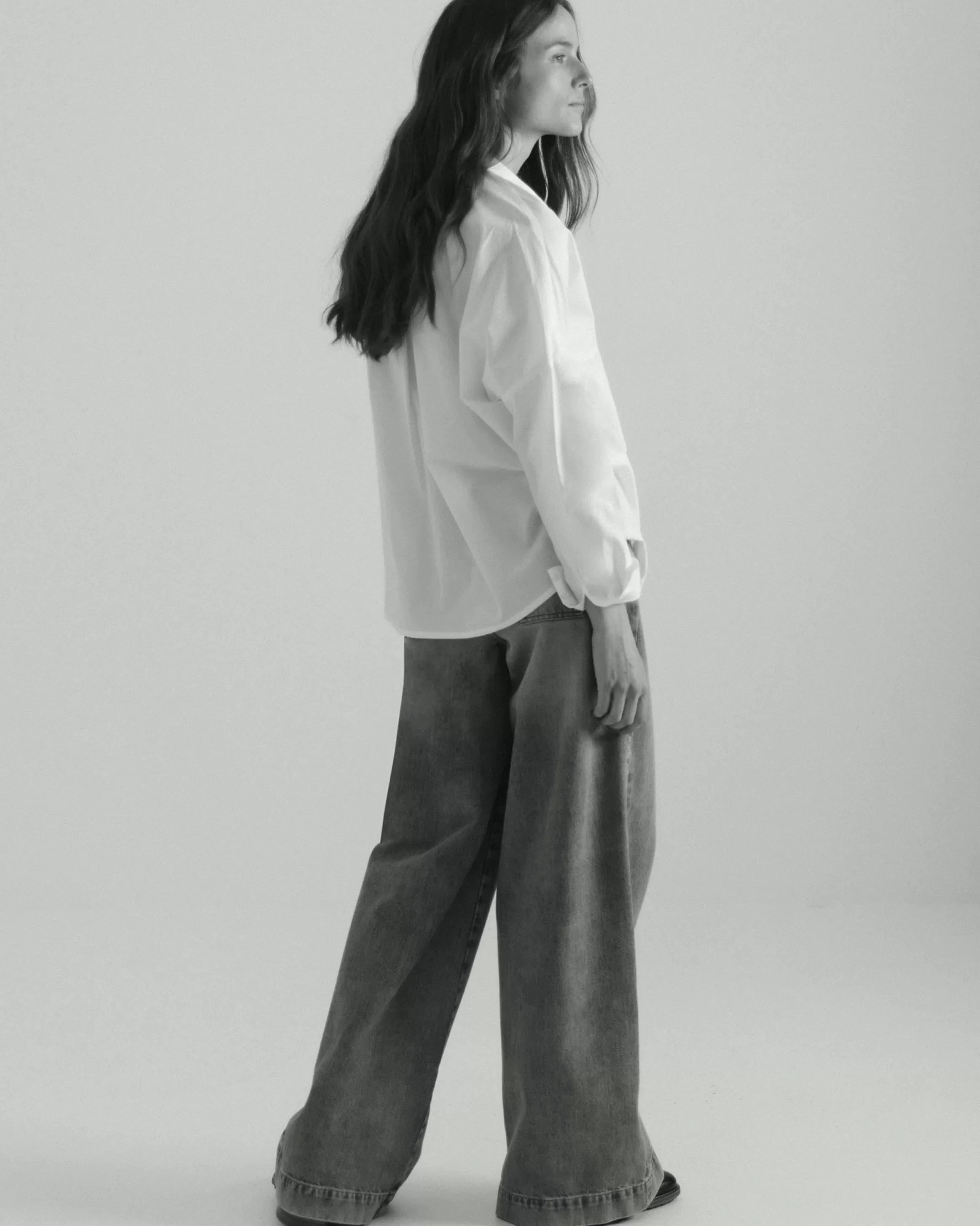 Chemise en popeline de coton organique compacte tissée en Italie, inspirée d’une chemise d’homme.