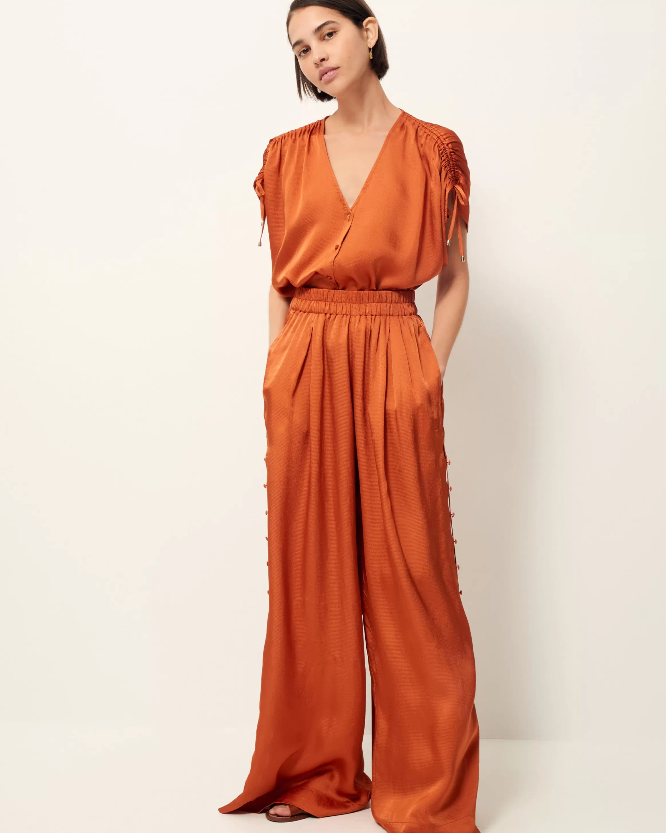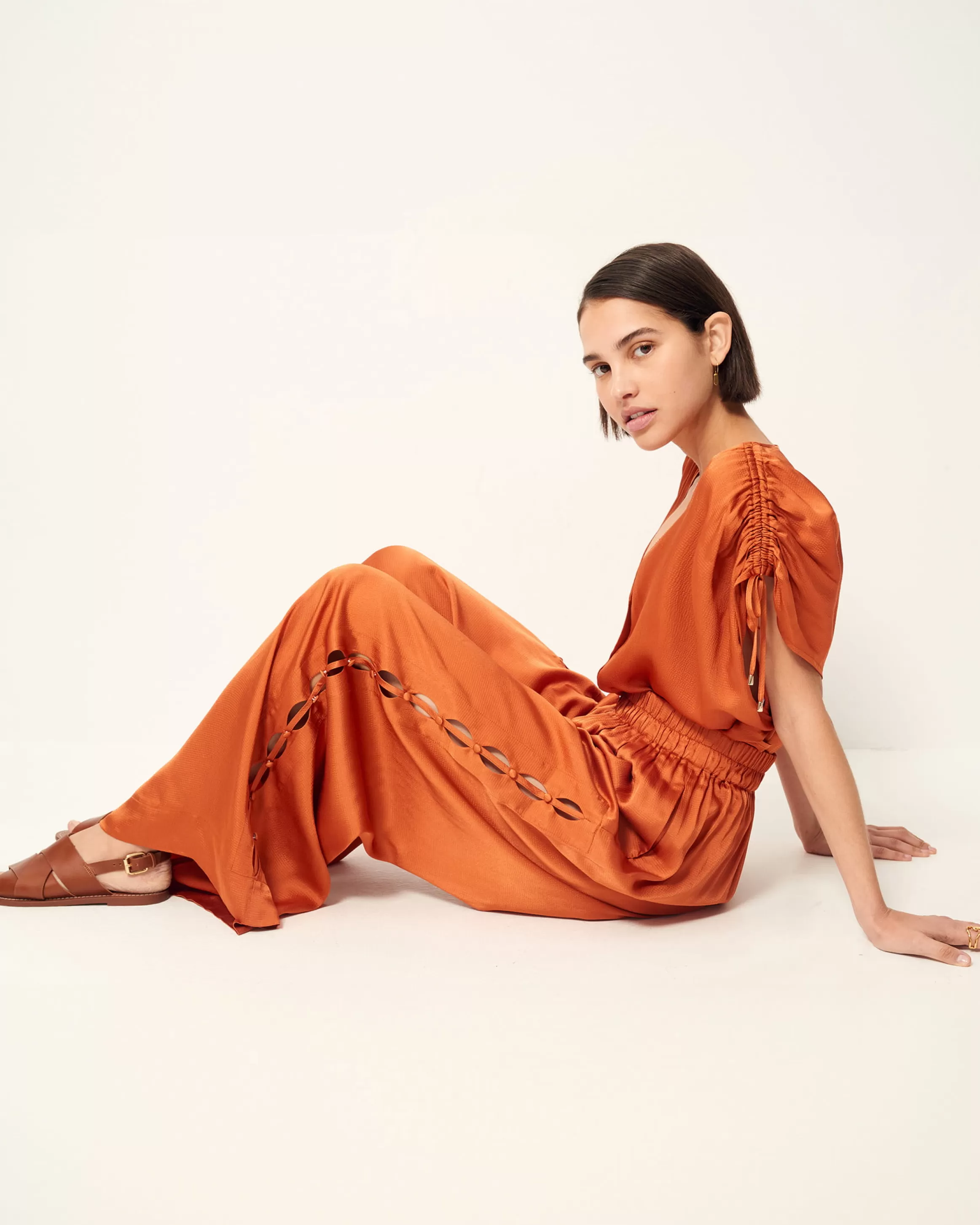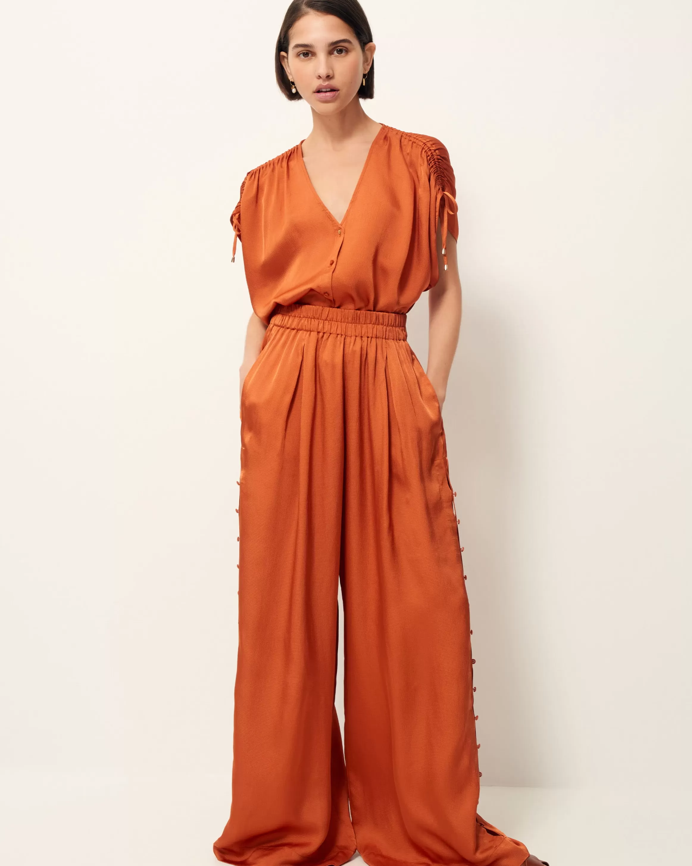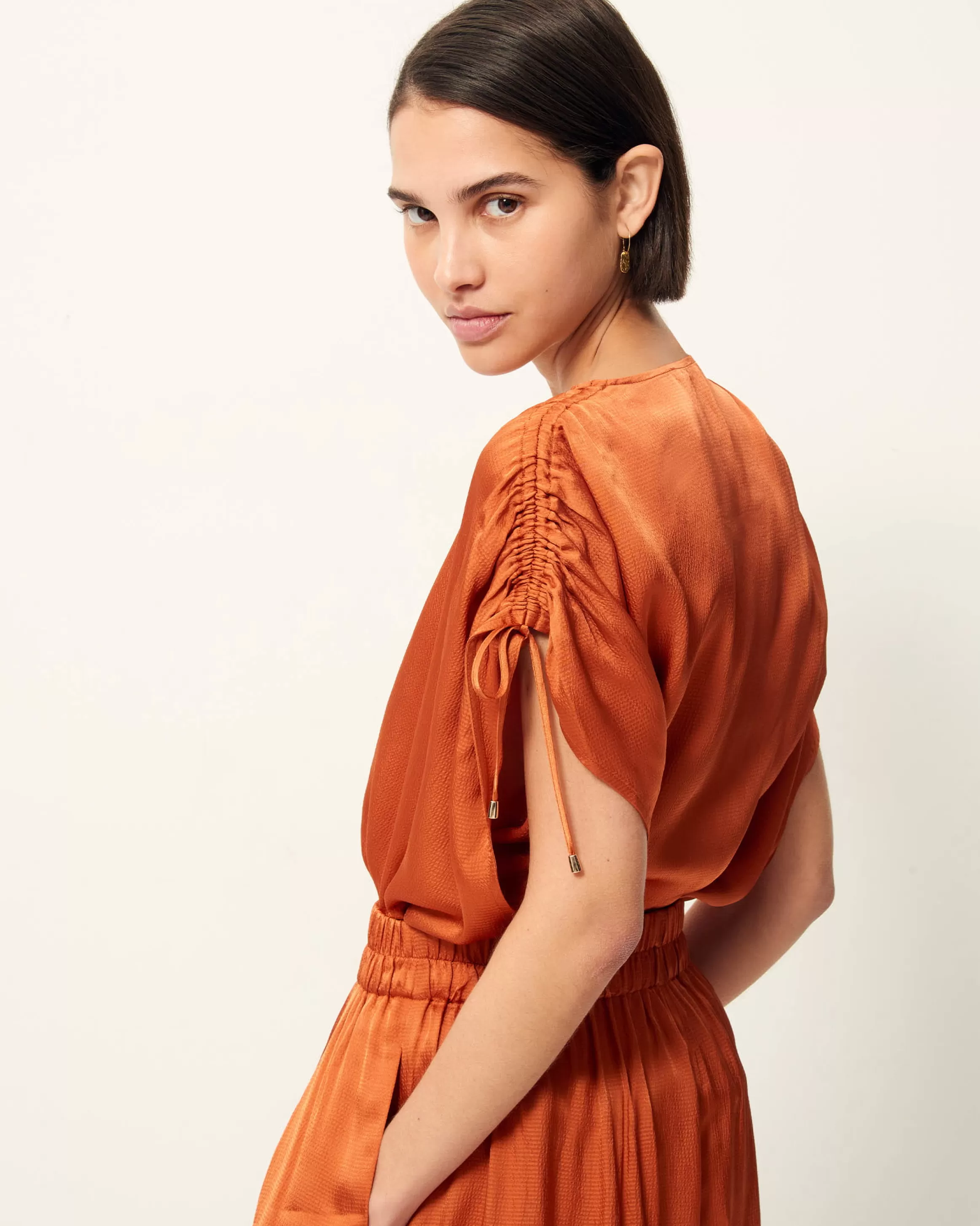 Blouse à col V sans manches en satin de viscose seersucker.Ce produit est composé de viscose issue de sources de bois …