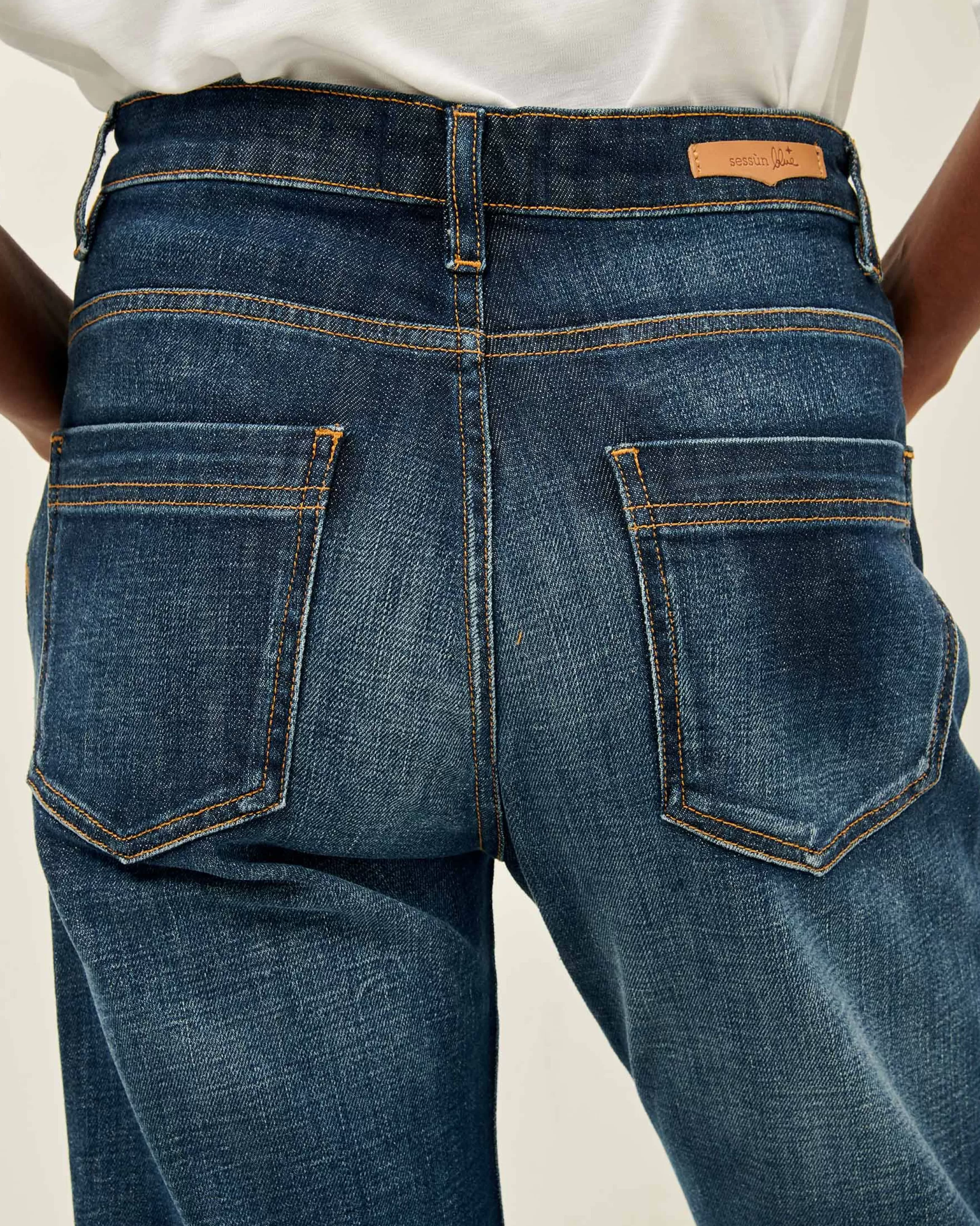 Ce jean fait partie de notre ligne Sessùn Blue, qui rassemble nos pièces denim favorites, marquées au dos d’un jacron en cuir.