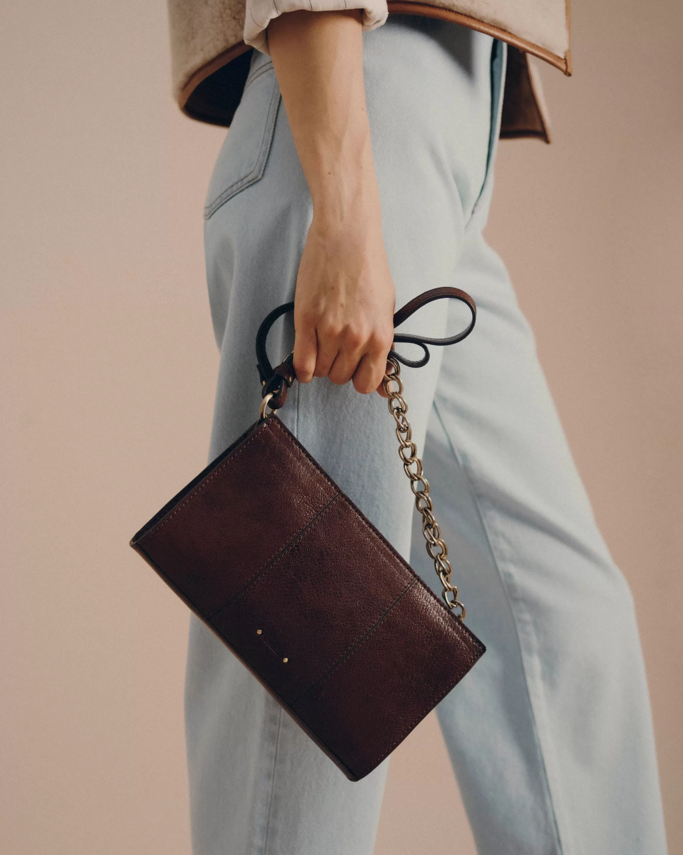 Petit sac baguette en cuir de chèvre tannage végétal.