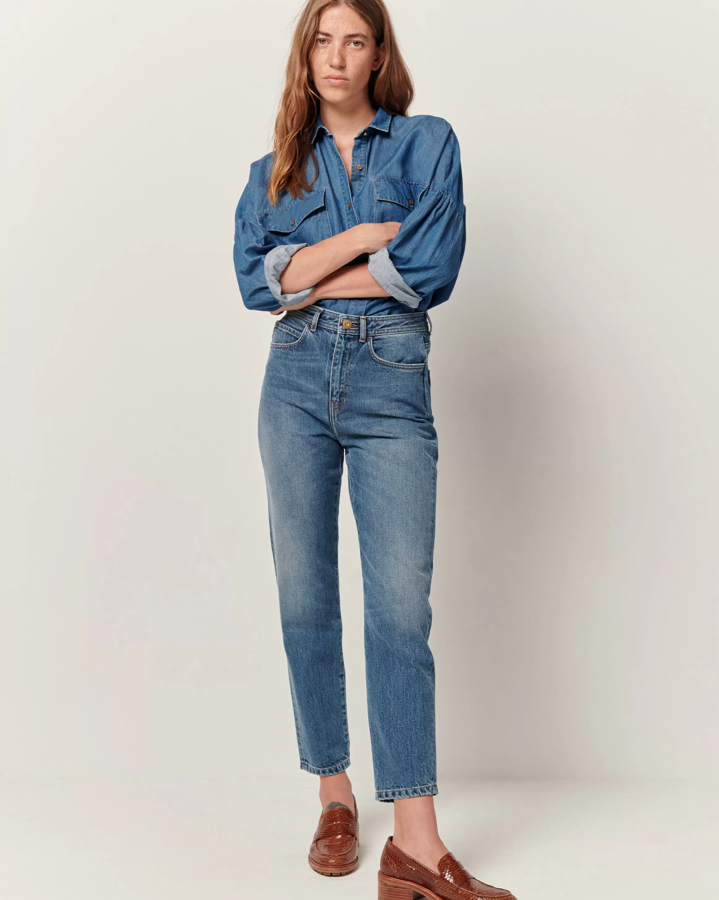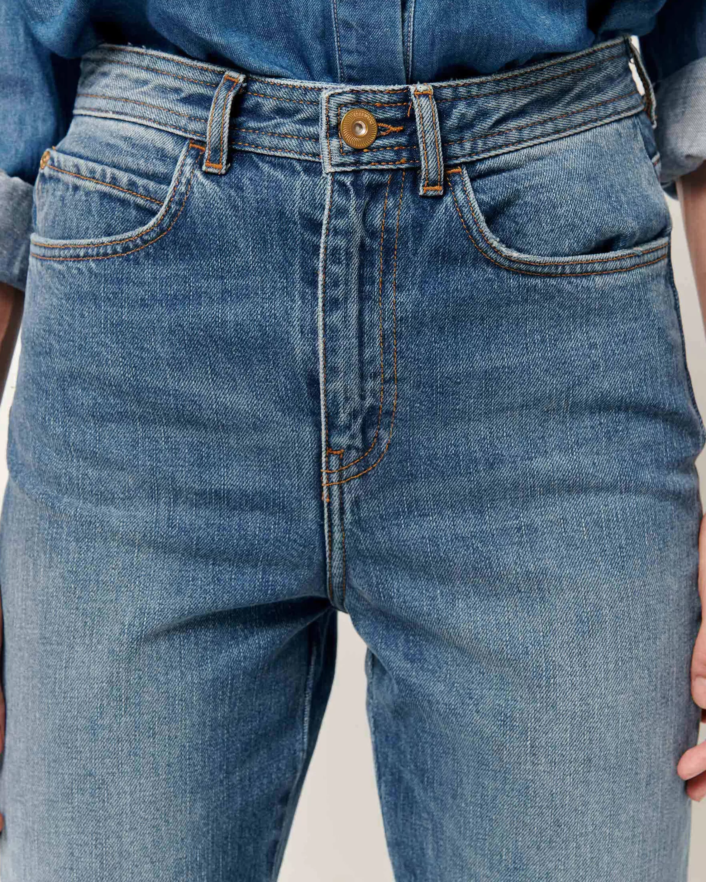 Ce jean fait partie de notre ligne Sessùn Blue, qui rassemble nos pièces denim favorites, marquées au dos d’un jacron en cuir.