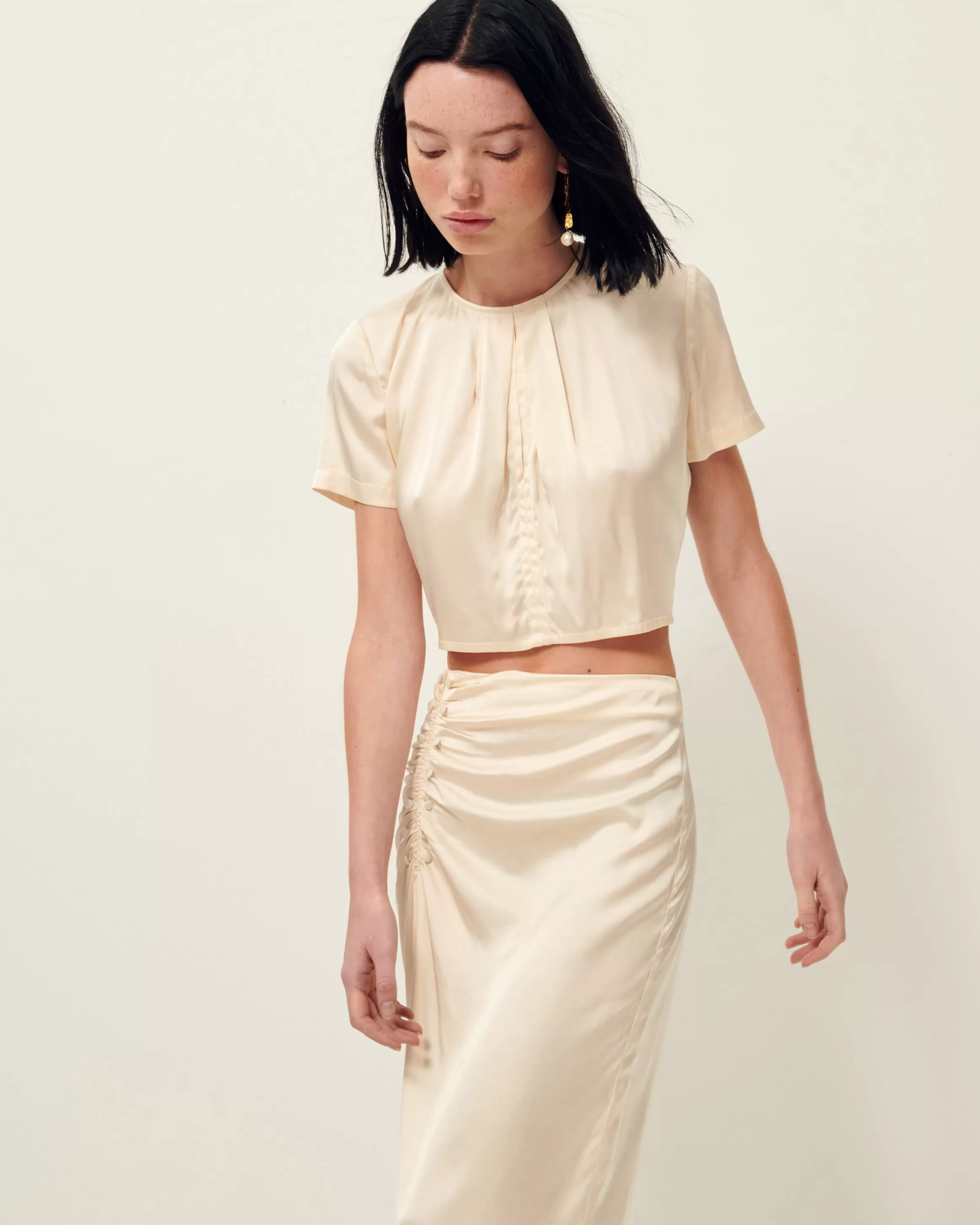 Top court ouvert au dos en satin fluide de viscose.Ce produit est composé de viscose issue de sources de bois renouvela…