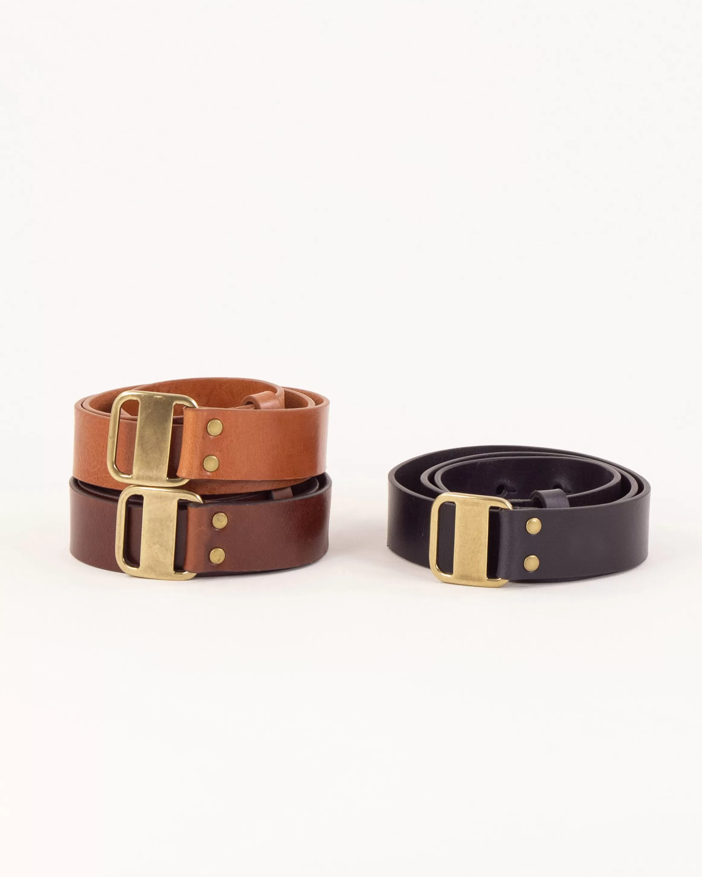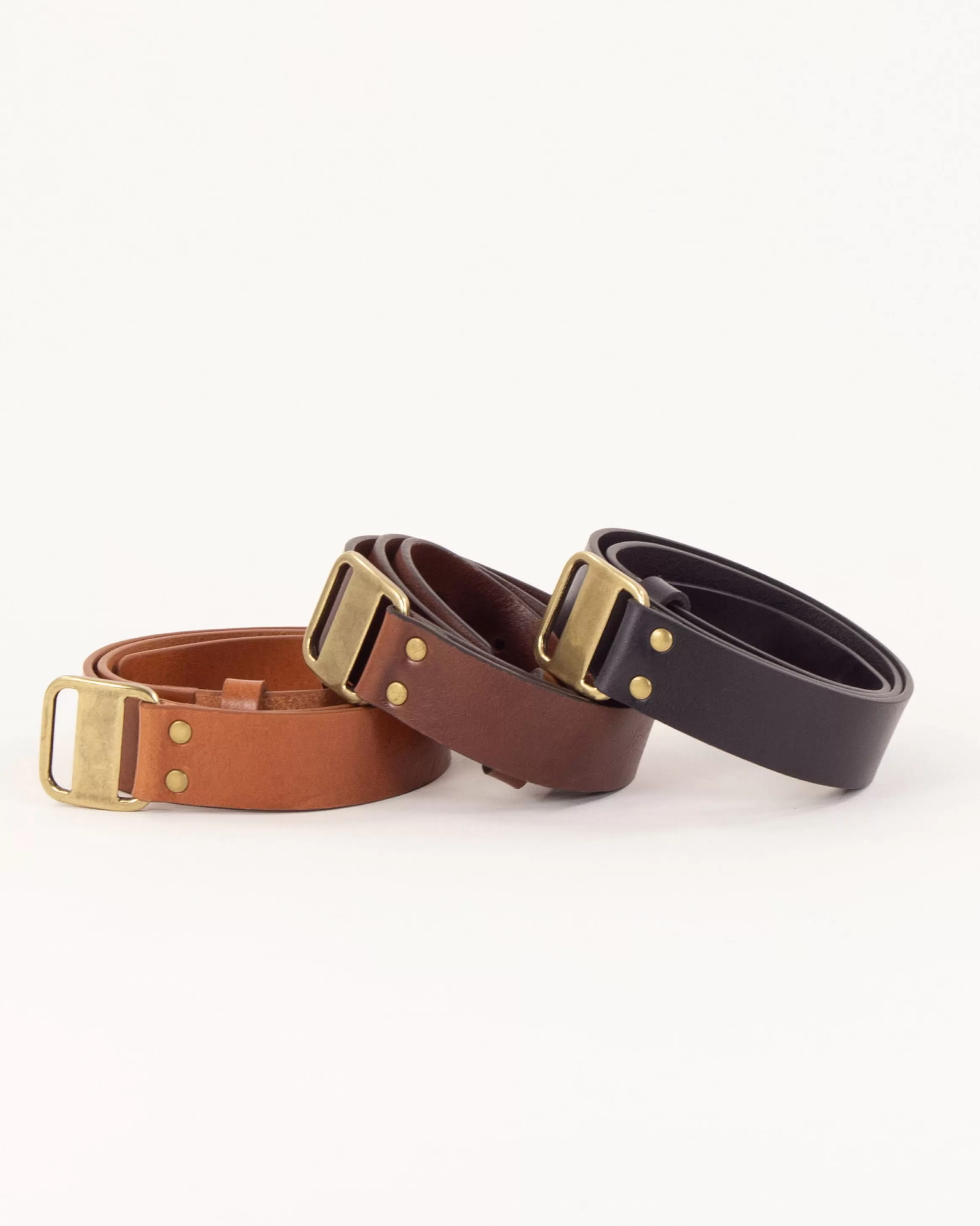 Ceinture en cuir de vache tannage végétal avec boucle métal rectangle.