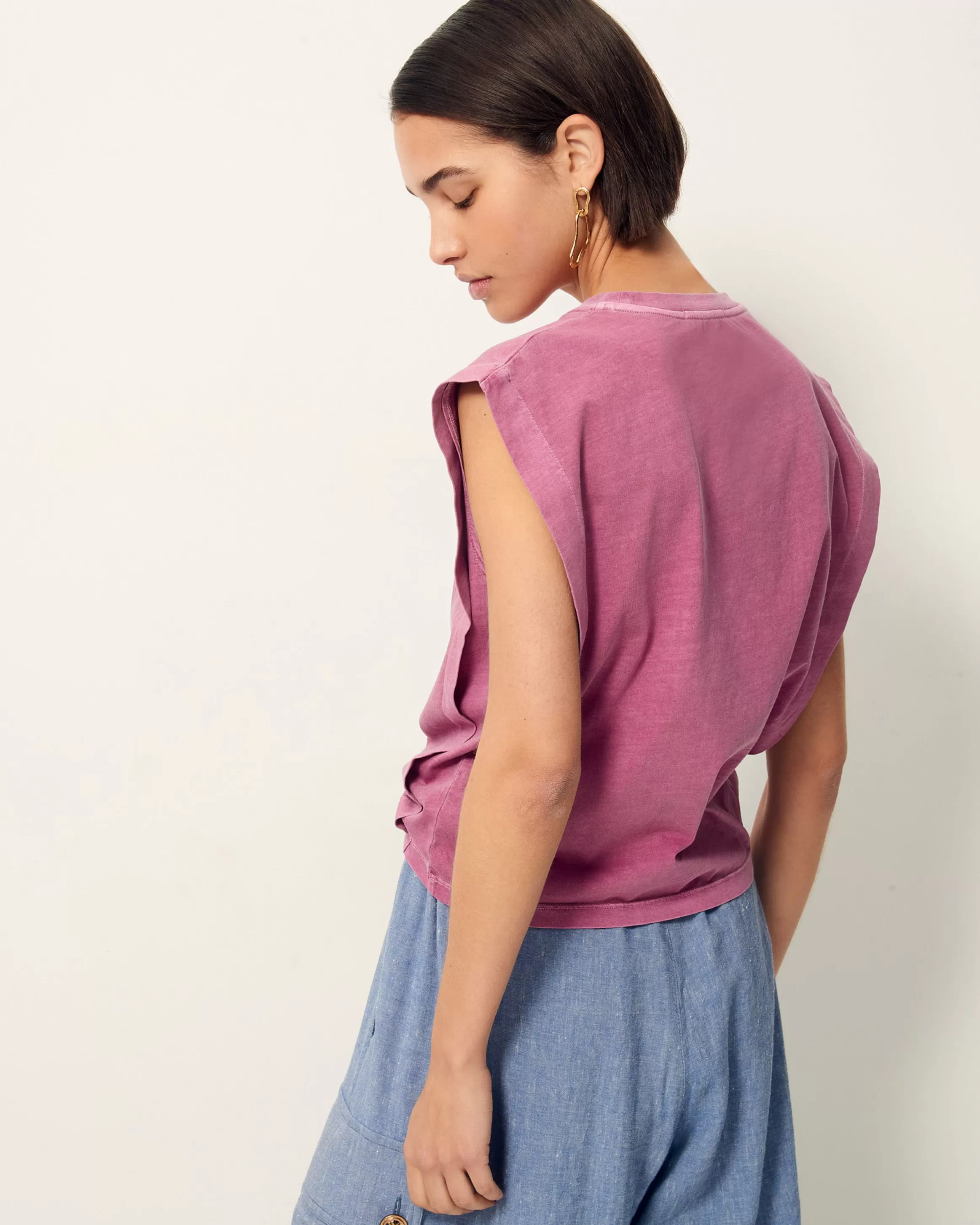 T-shirt sans manches à plis en jersey teint en pigmentaire, confectionné et teint artisanalement au Portugal.