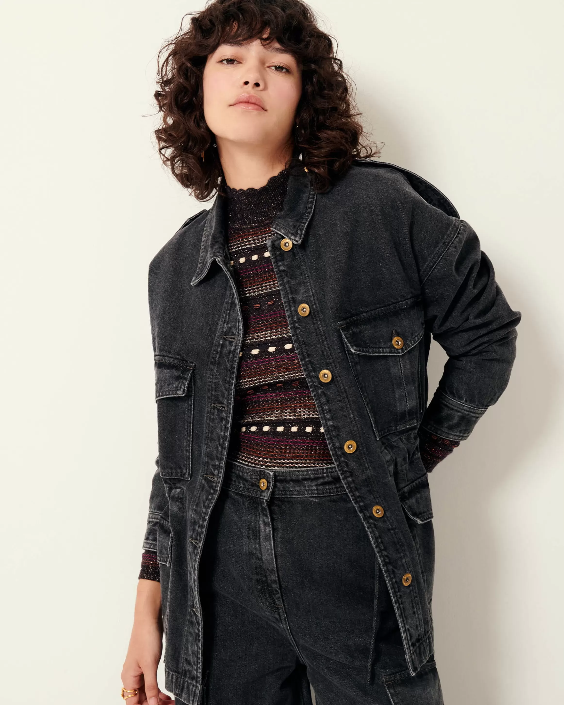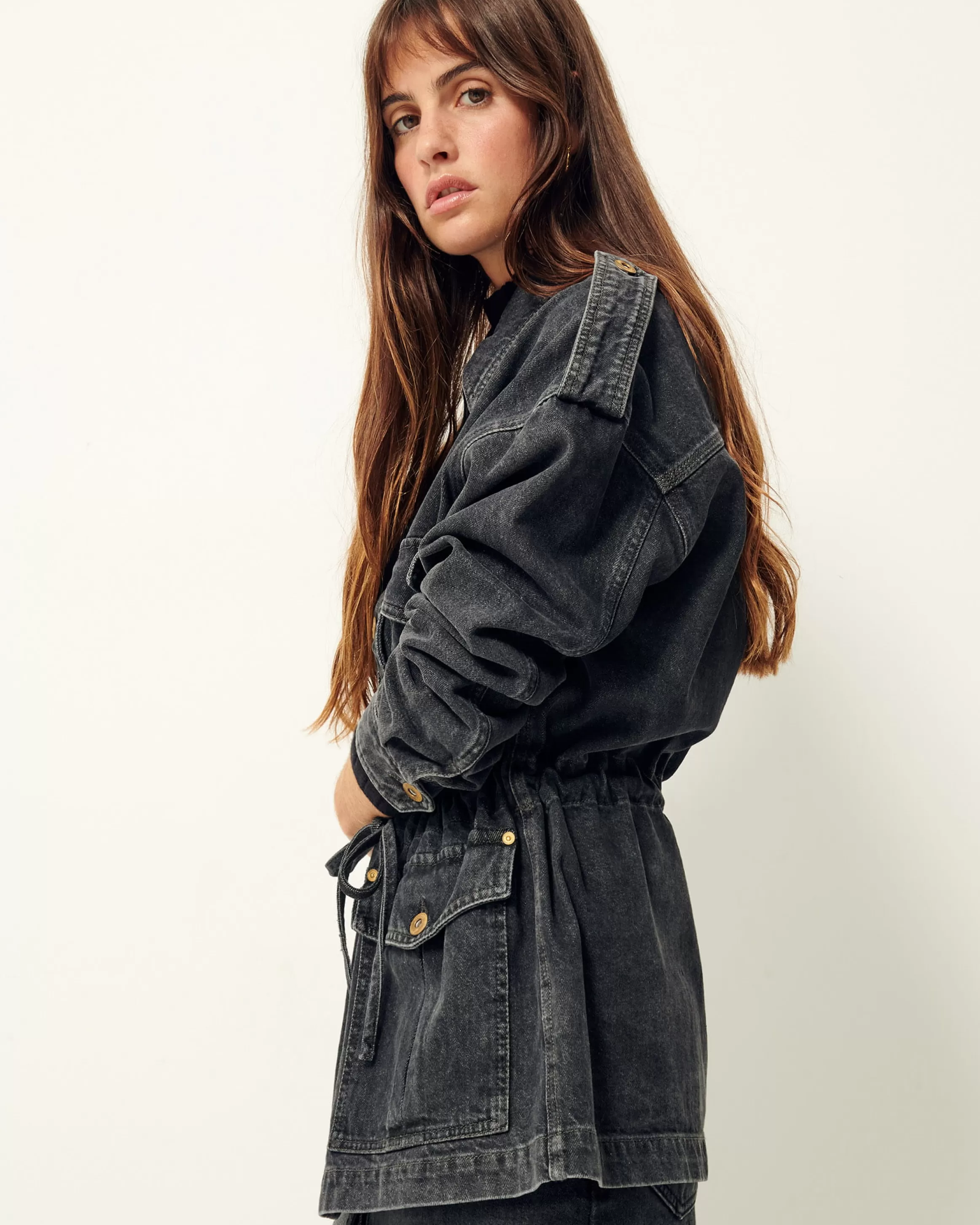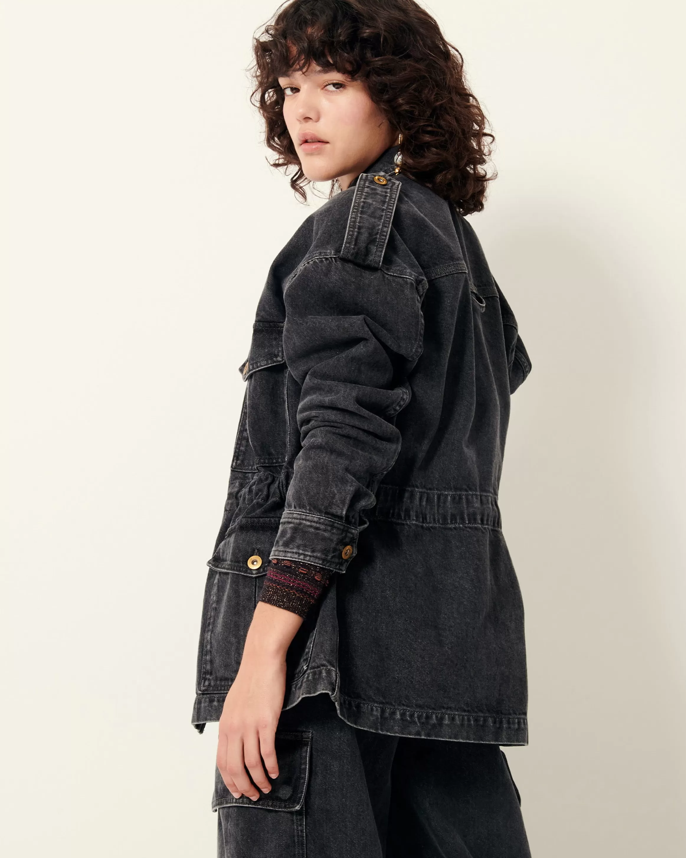 Veste esprit worker à poches plaquées en denim stonewashé.