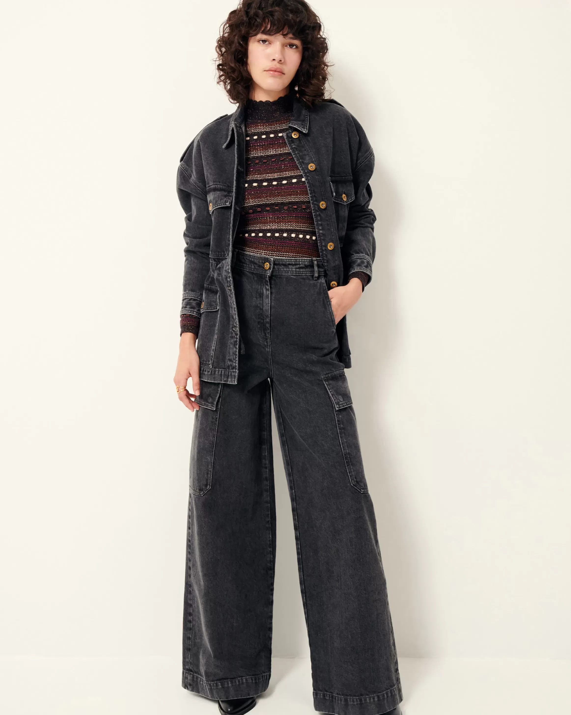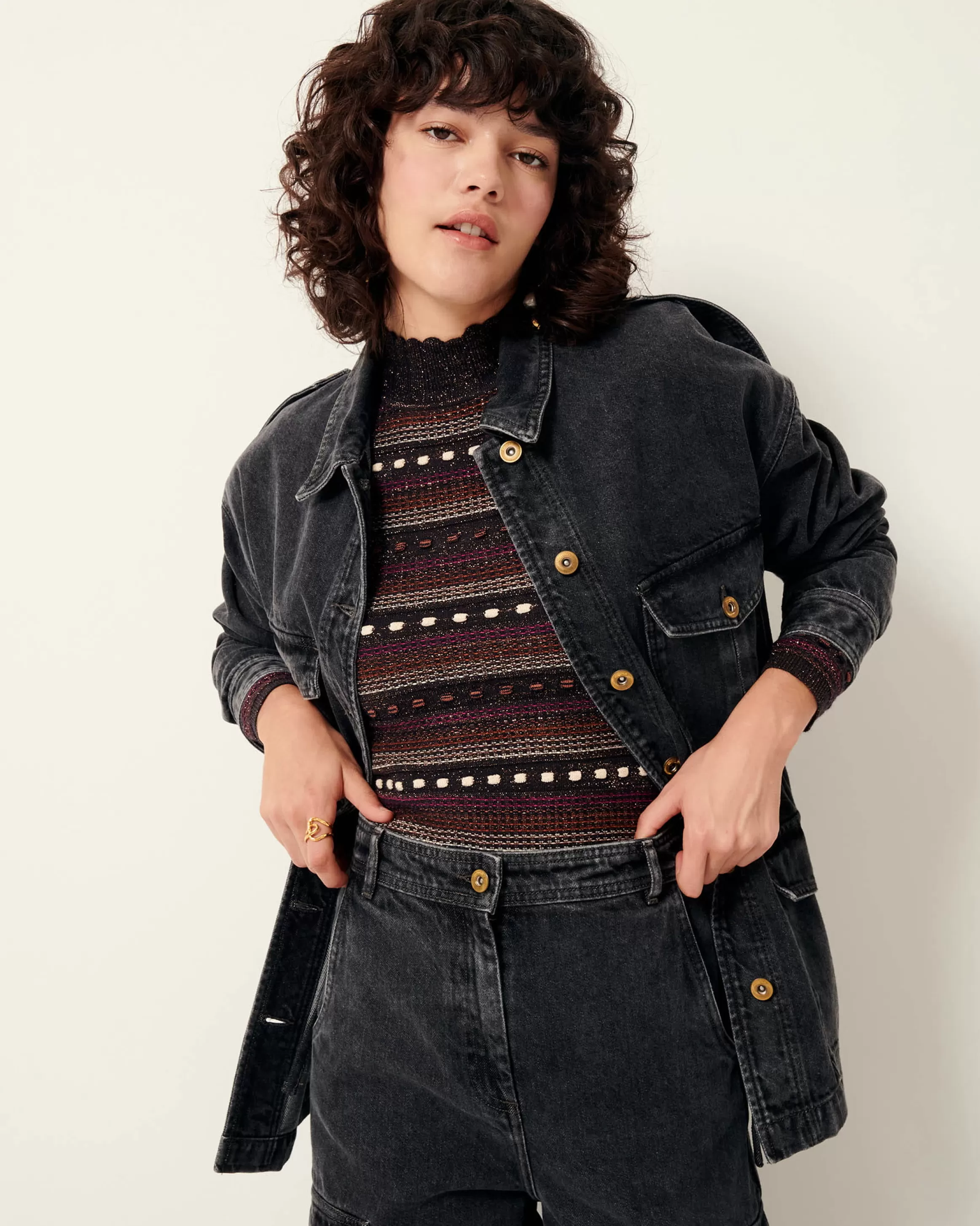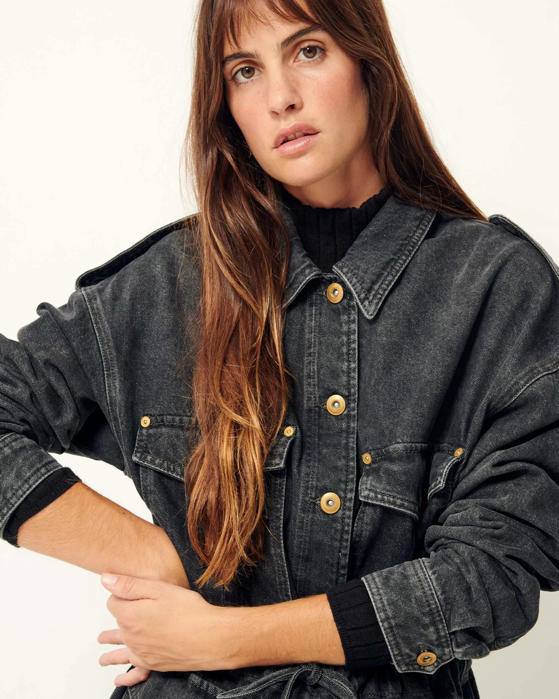 Veste esprit worker à poches plaquées en denim stonewashé.
