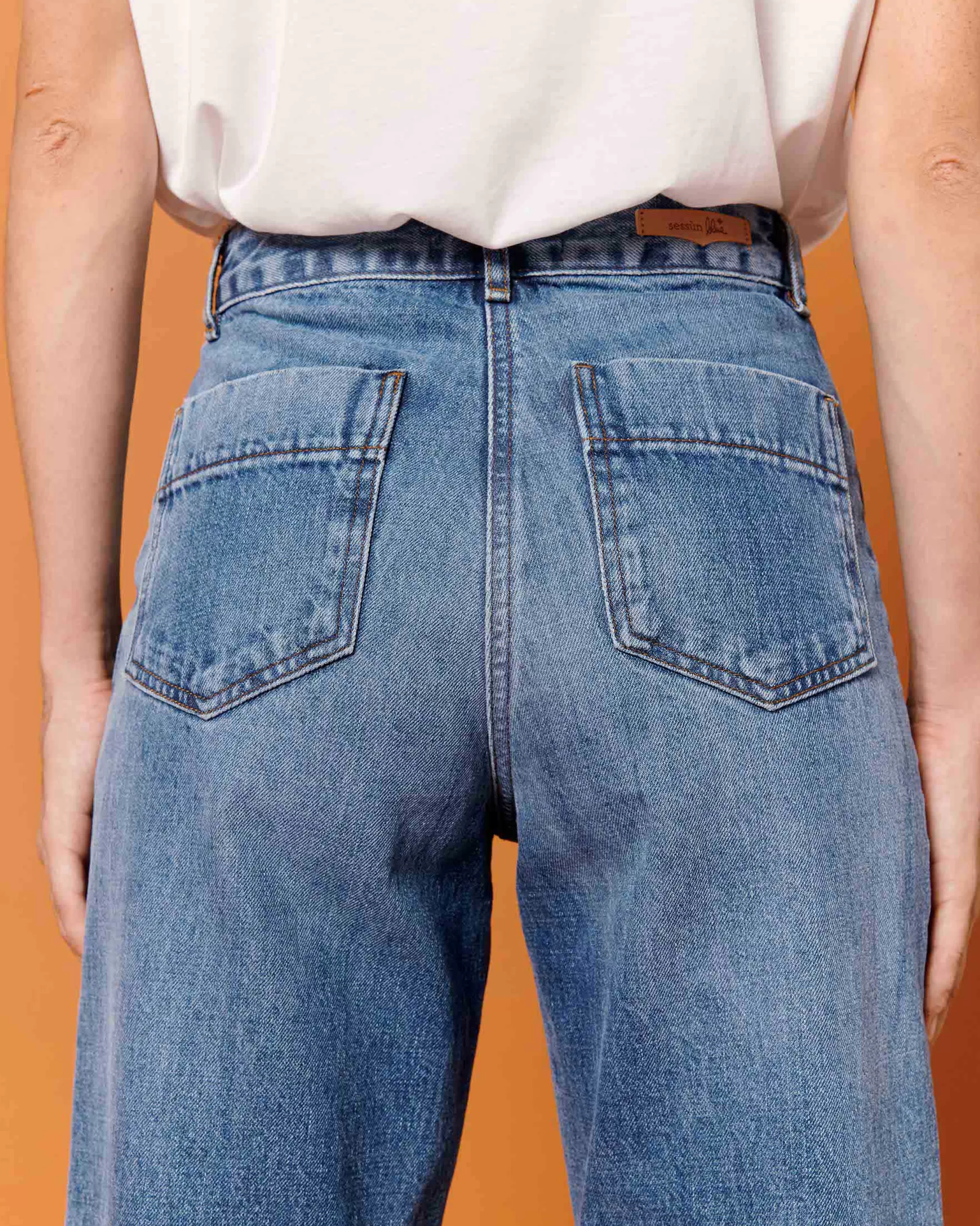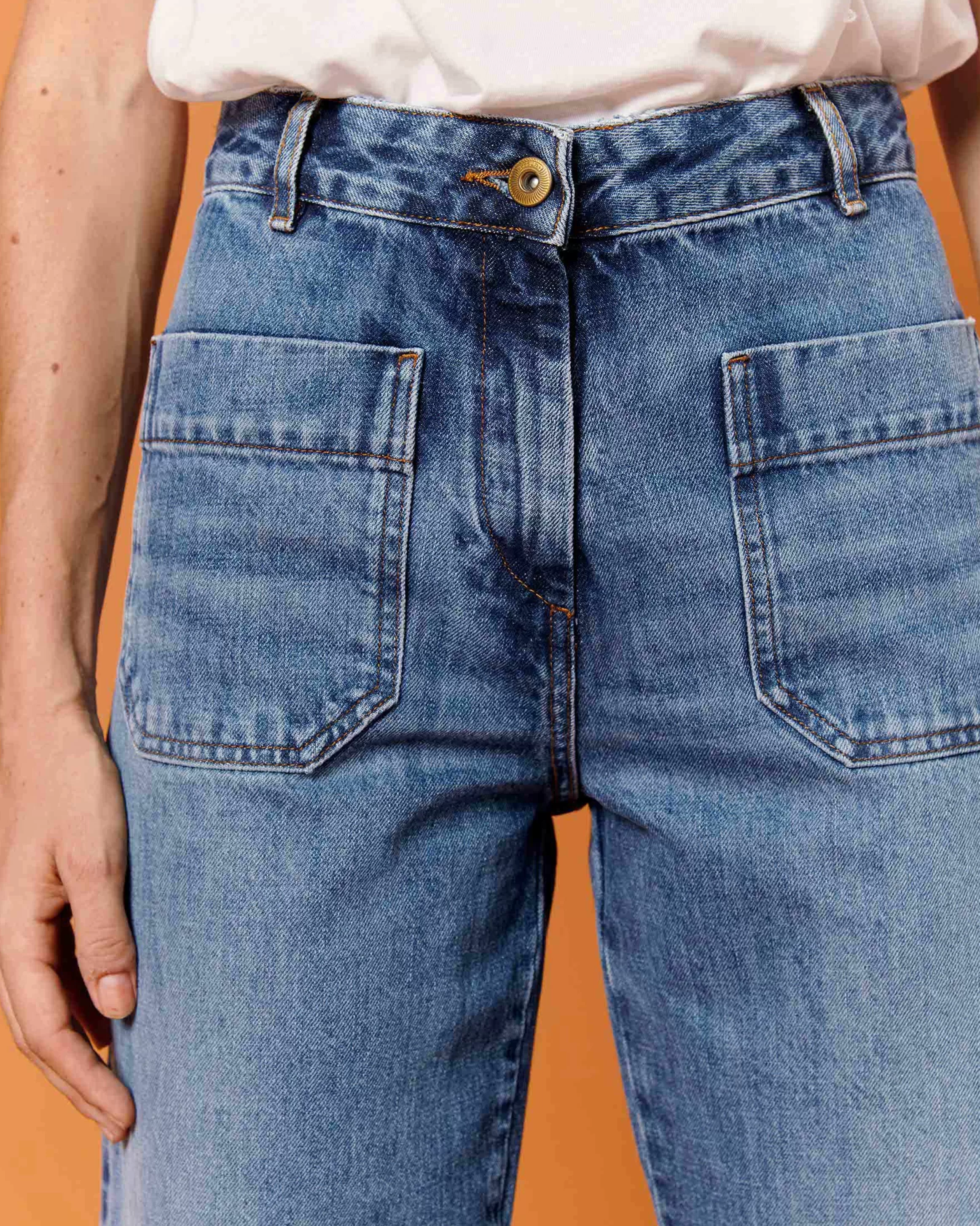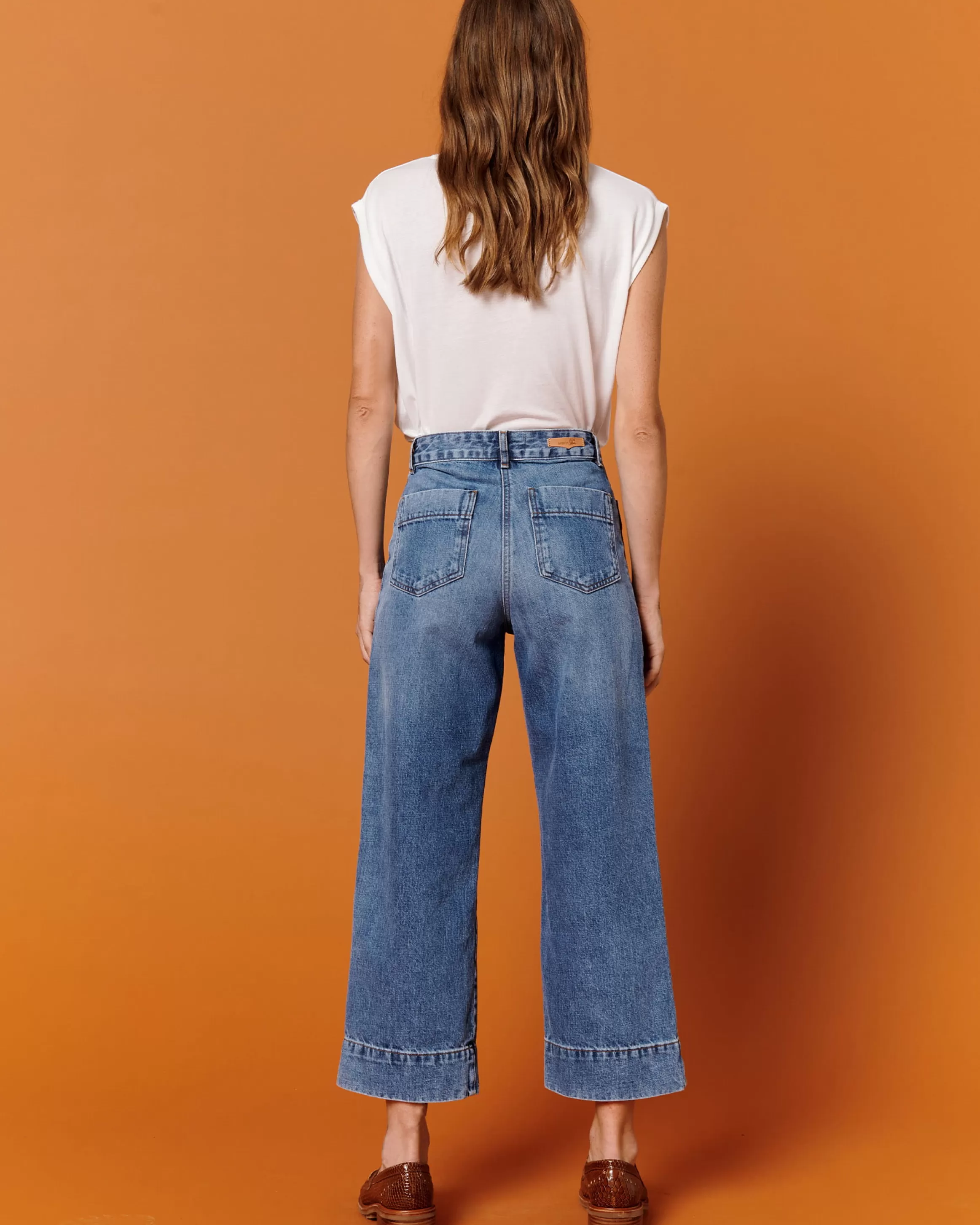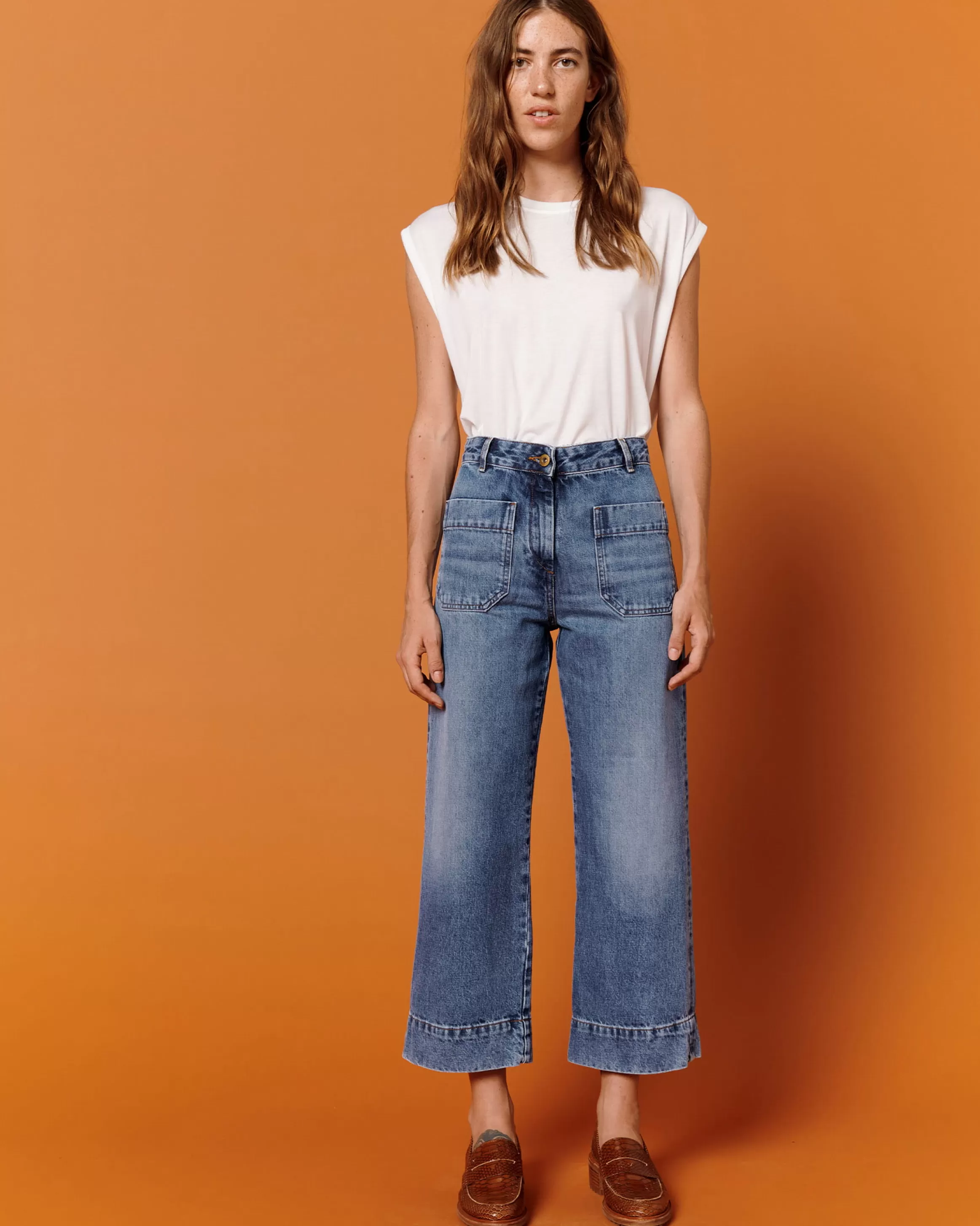 Jean en A esprit marin raccourci en denim stonewashé.