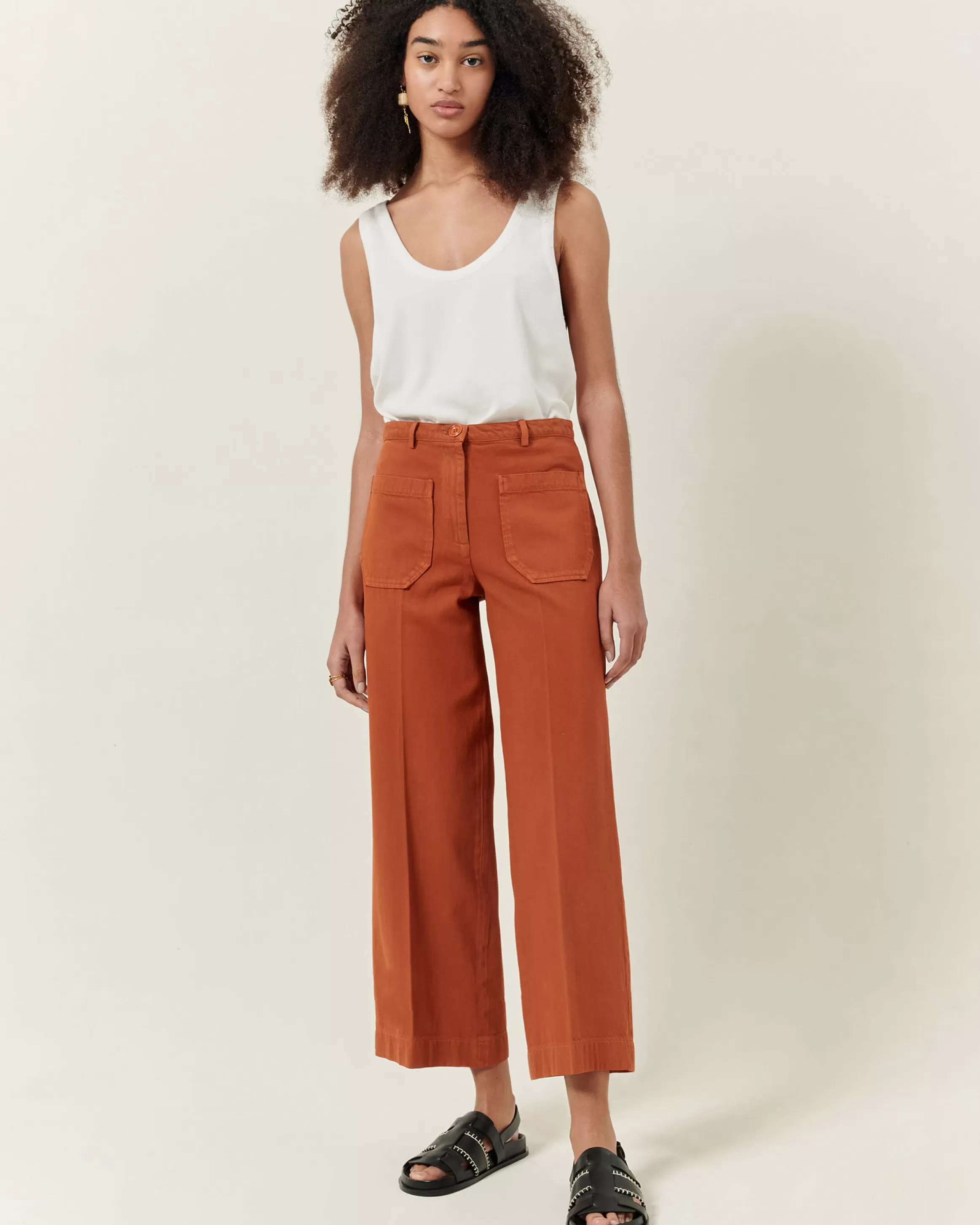 Sandales plates en cuir de vache.