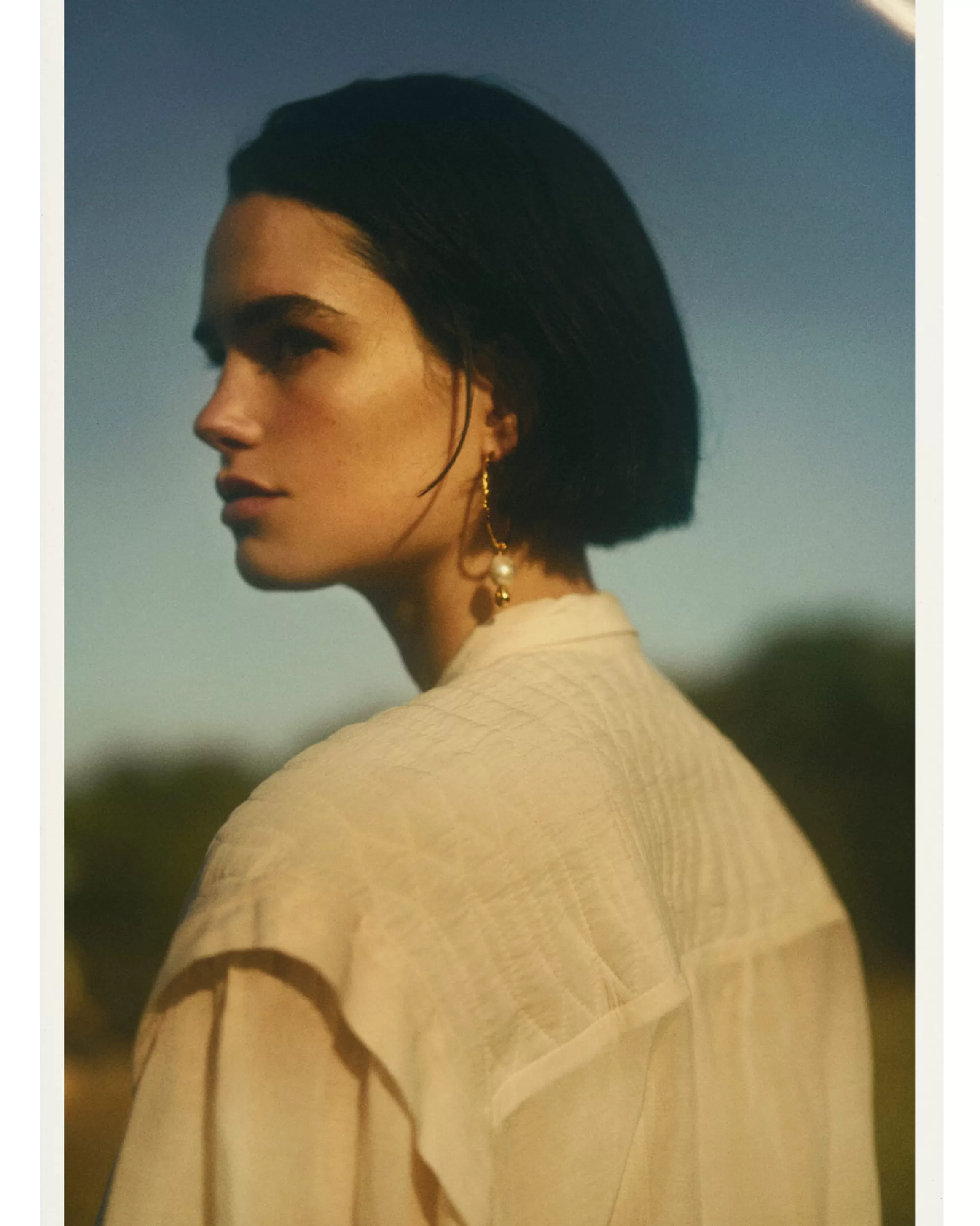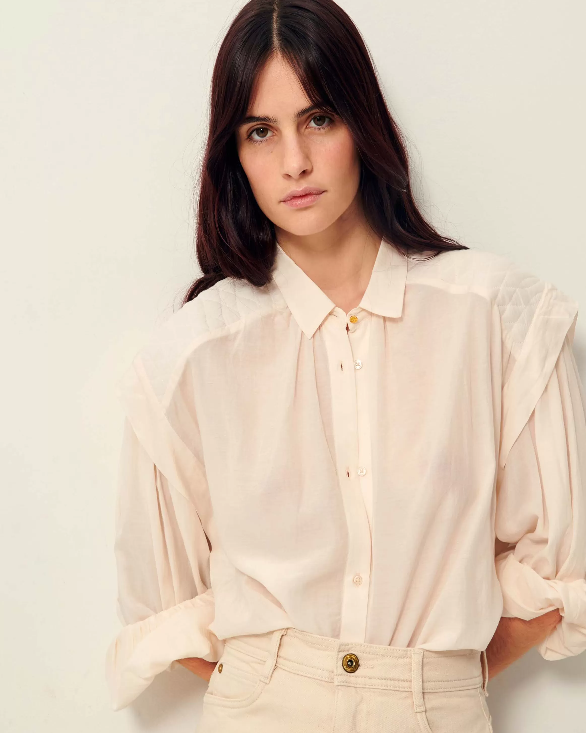 Chemise à plis plats aux côtés en voile de coton / viscose.Ce produit est composé de viscose issue de sources de boi…