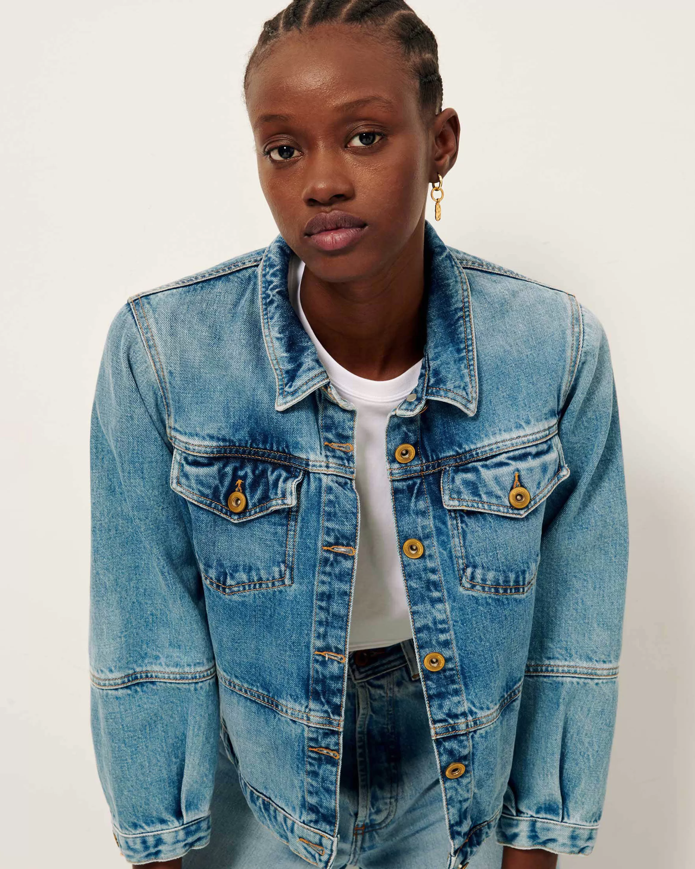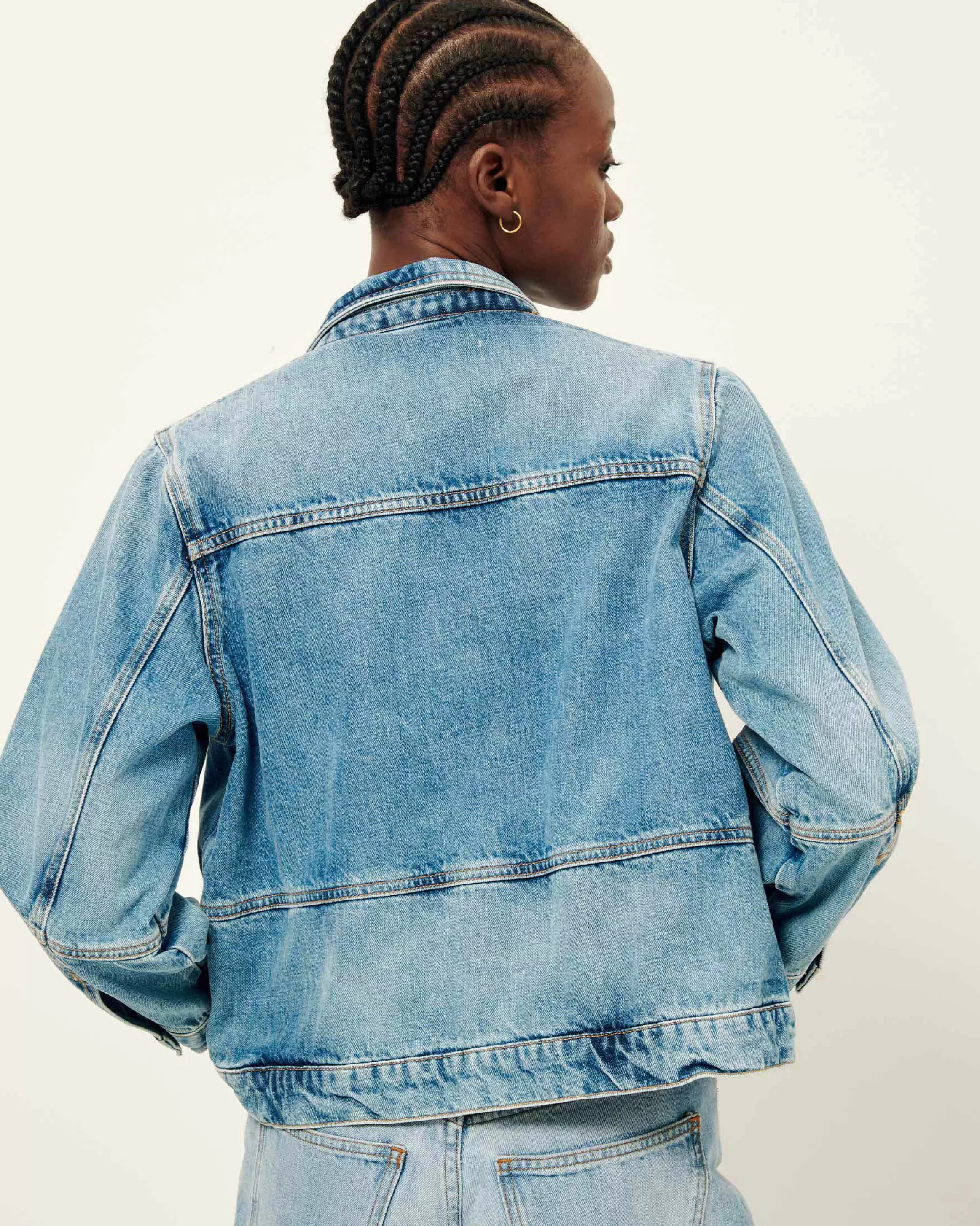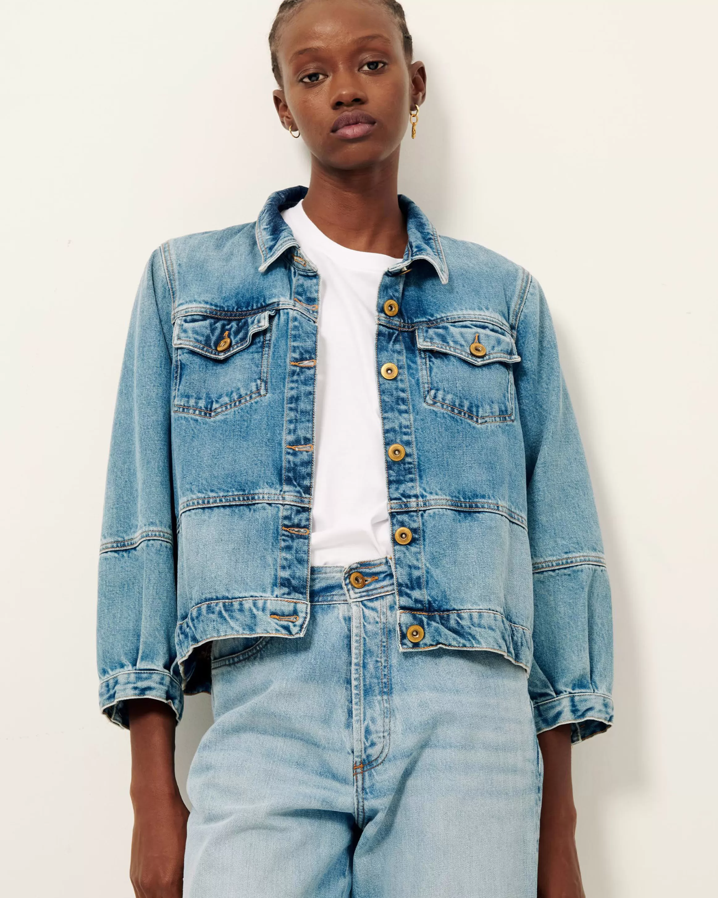 Veste à manches 3/4 en denim stonewashé.