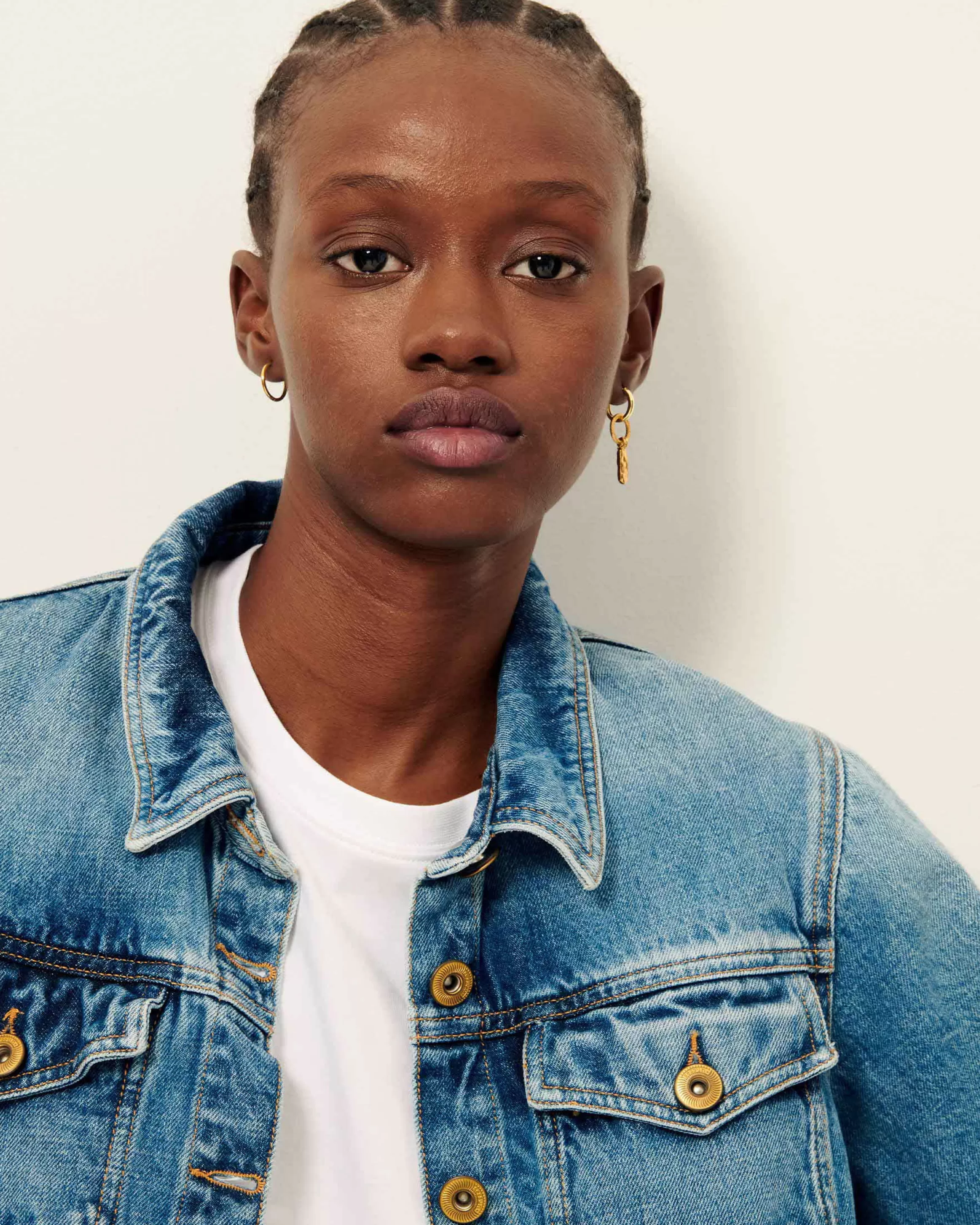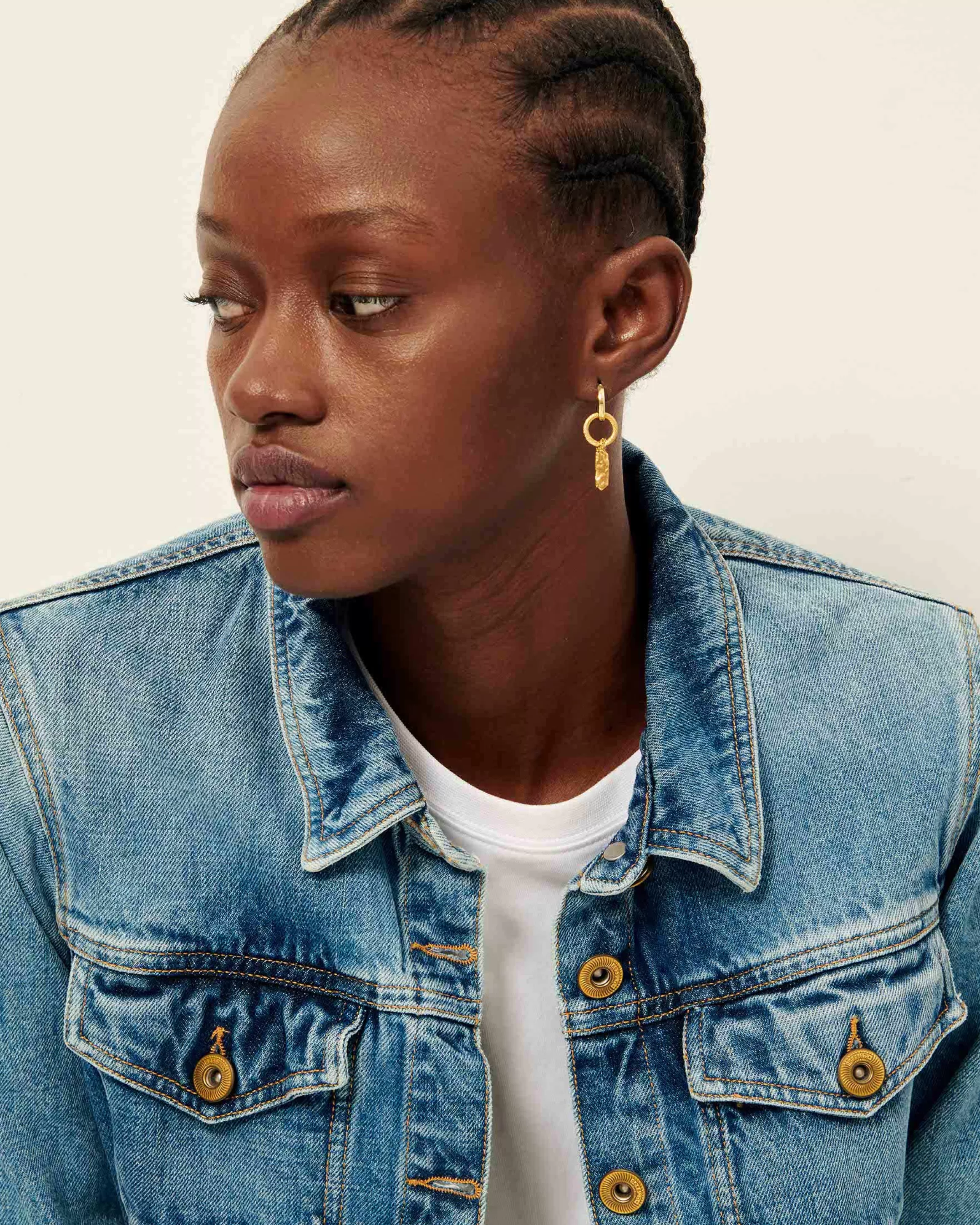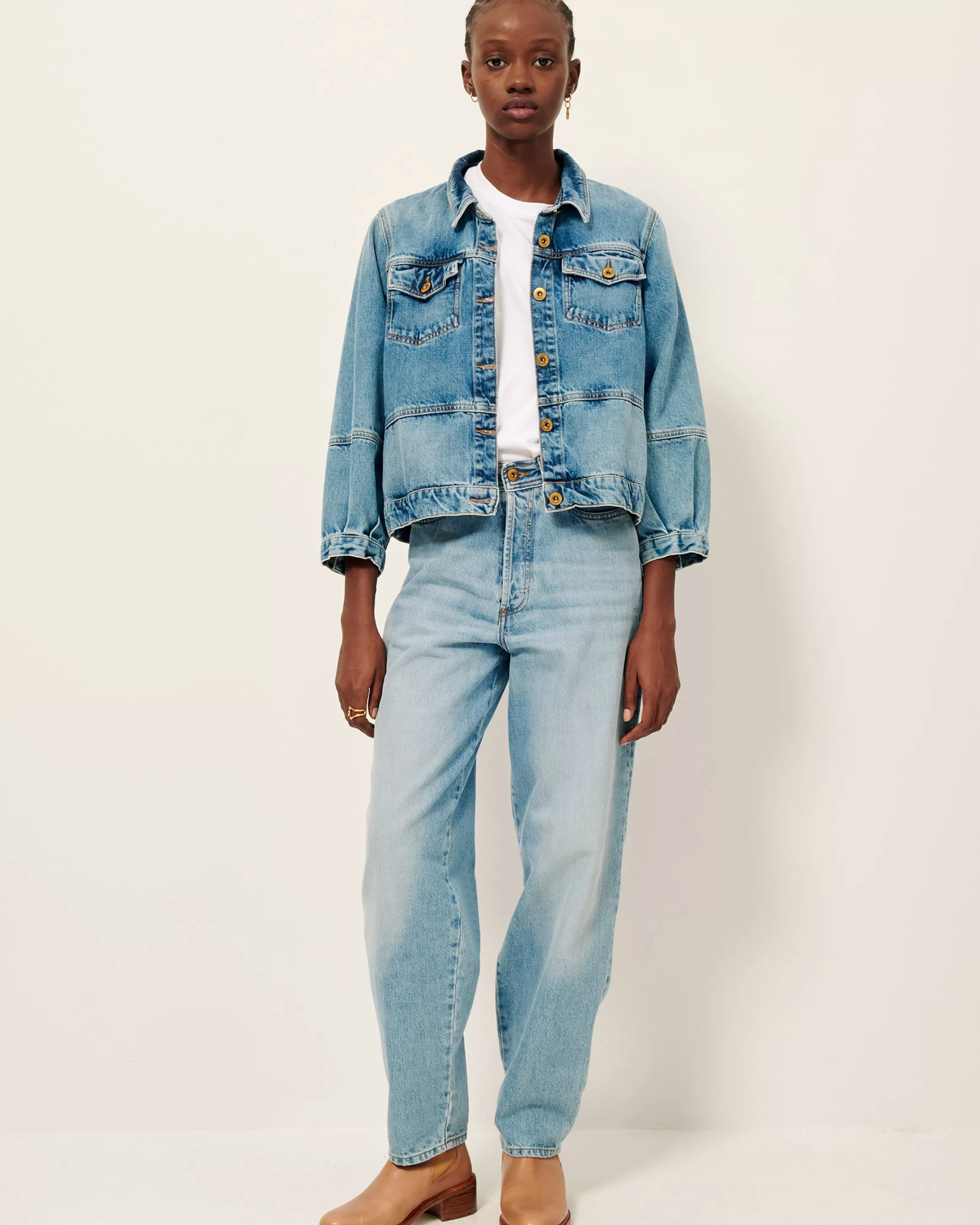 Veste à manches 3/4 en denim stonewashé.