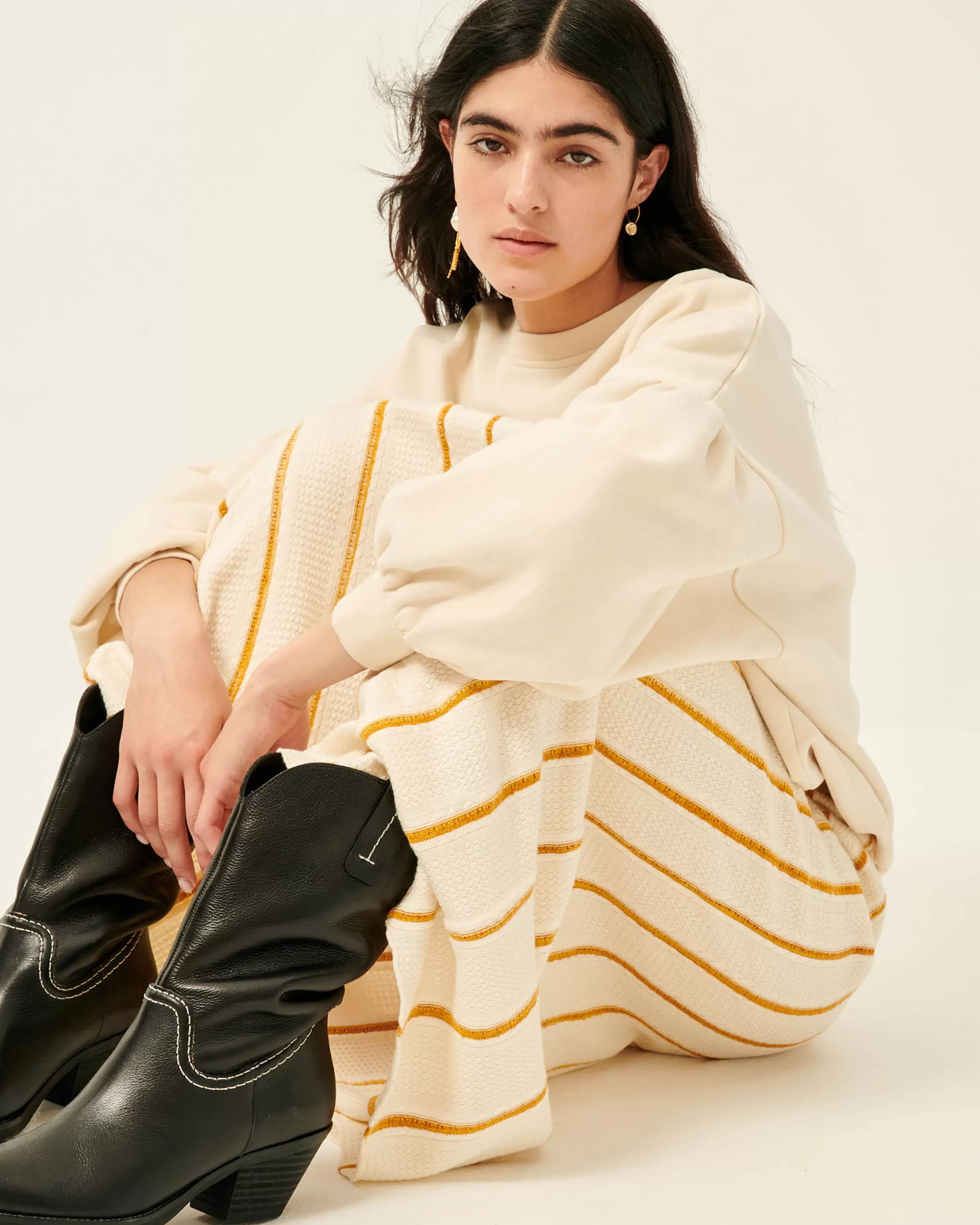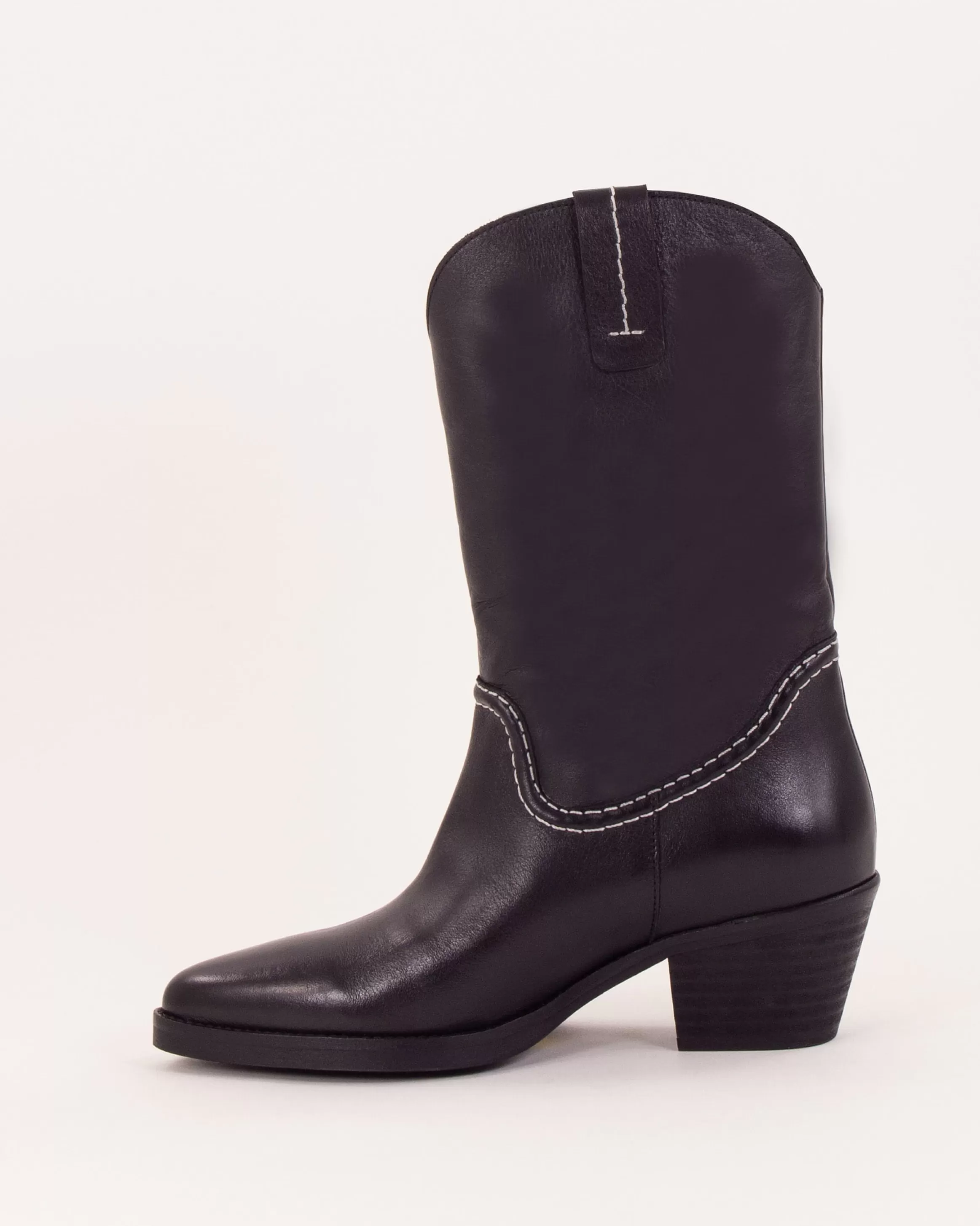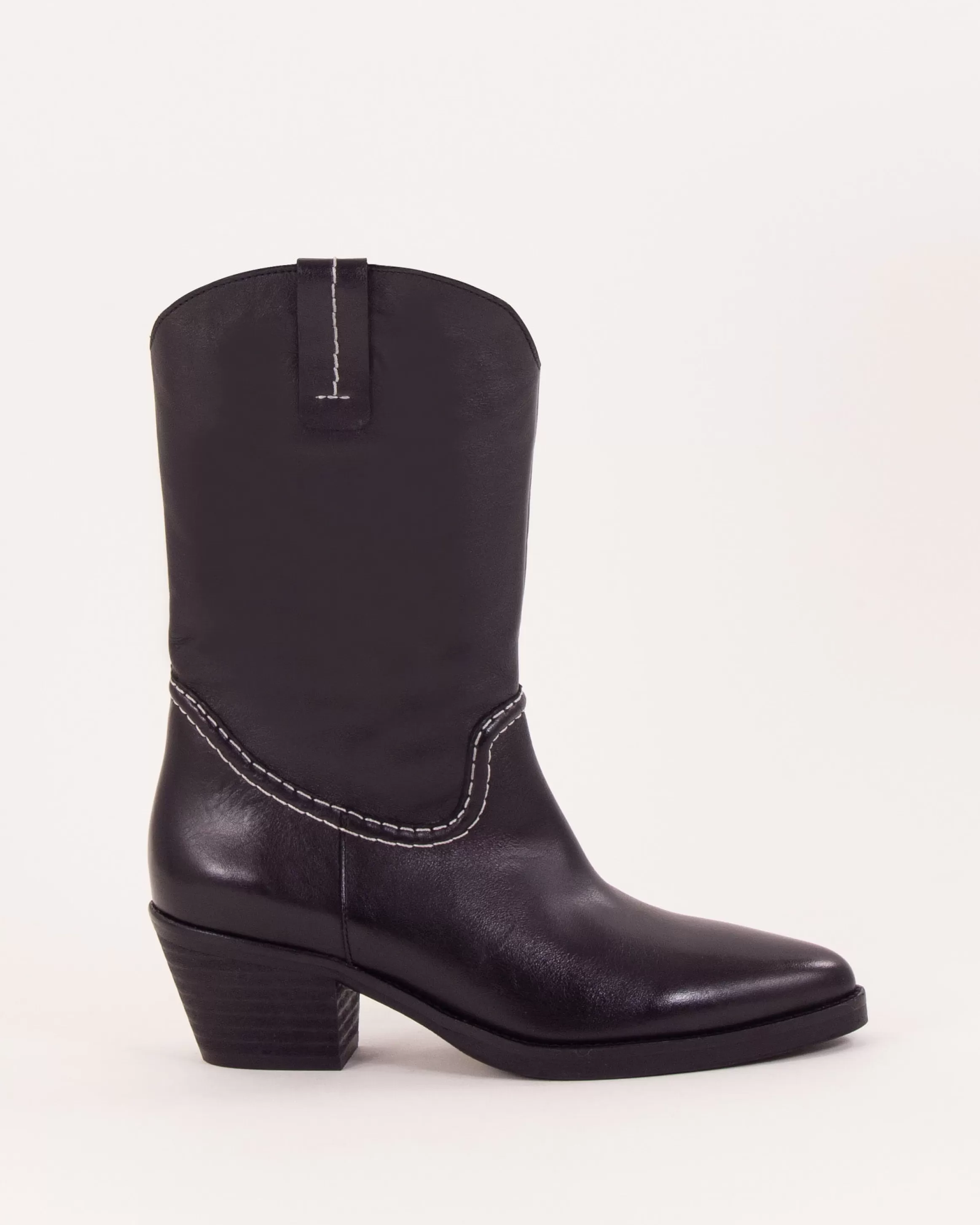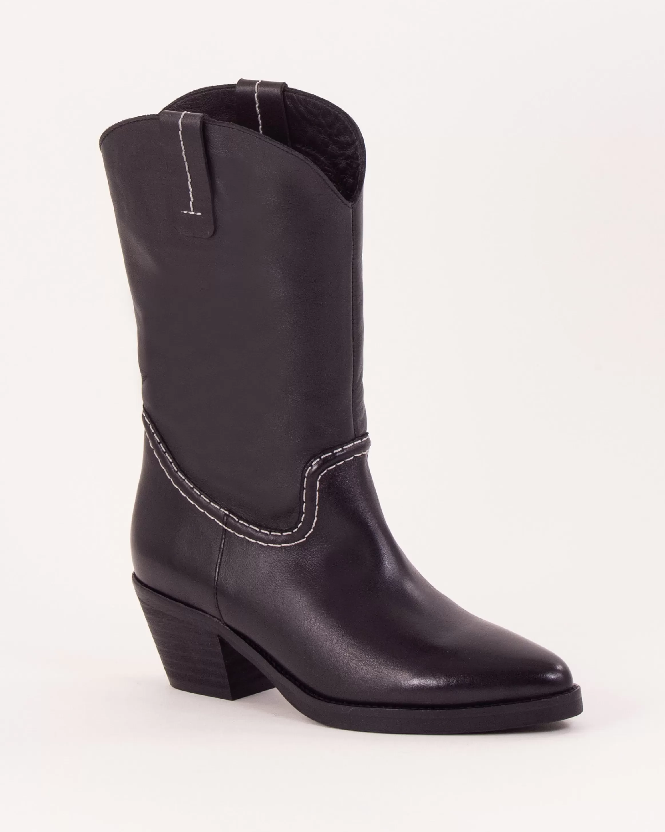Bottes esprit Santiag avec détails de surpiqûres contrastées en cuir de vache à tannage végétal fabriquées au Portugal.