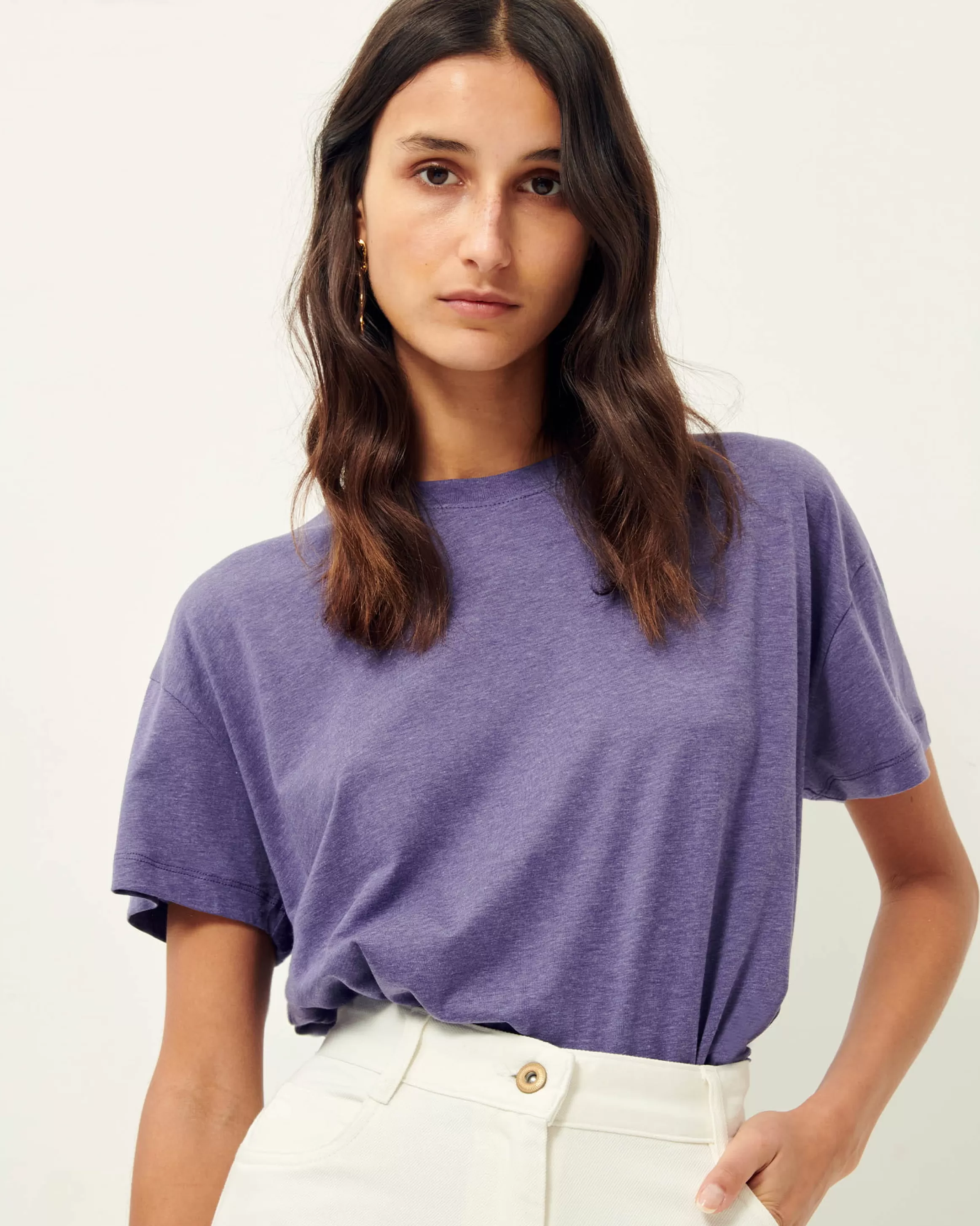 Loose-fitting short-sleeve T-shirt in a fluid jersey fabric.