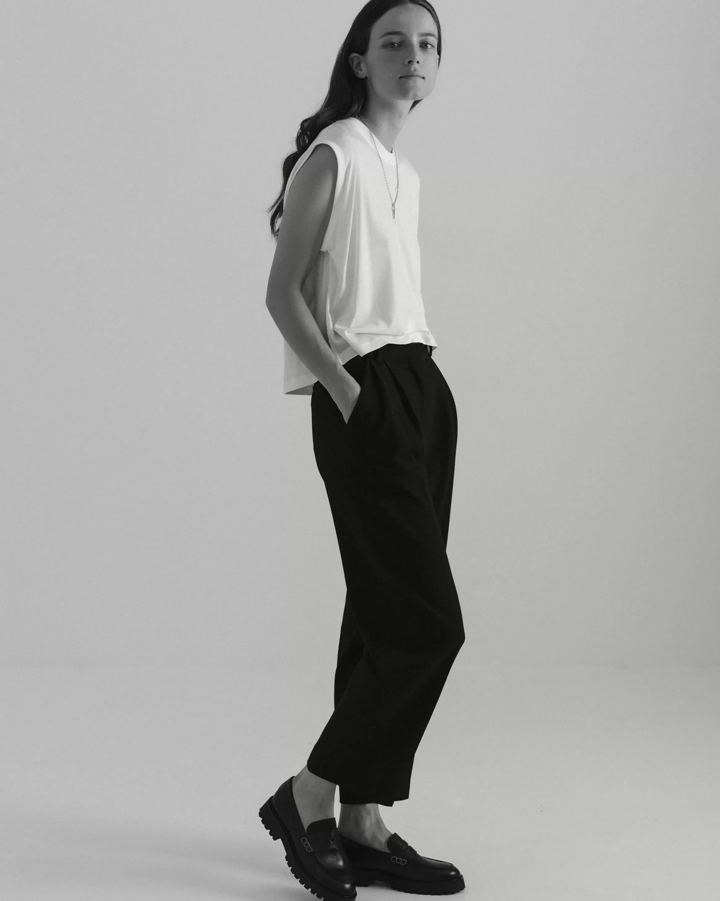Pantalon ample à plis marqués en gabardine souple tailoring.