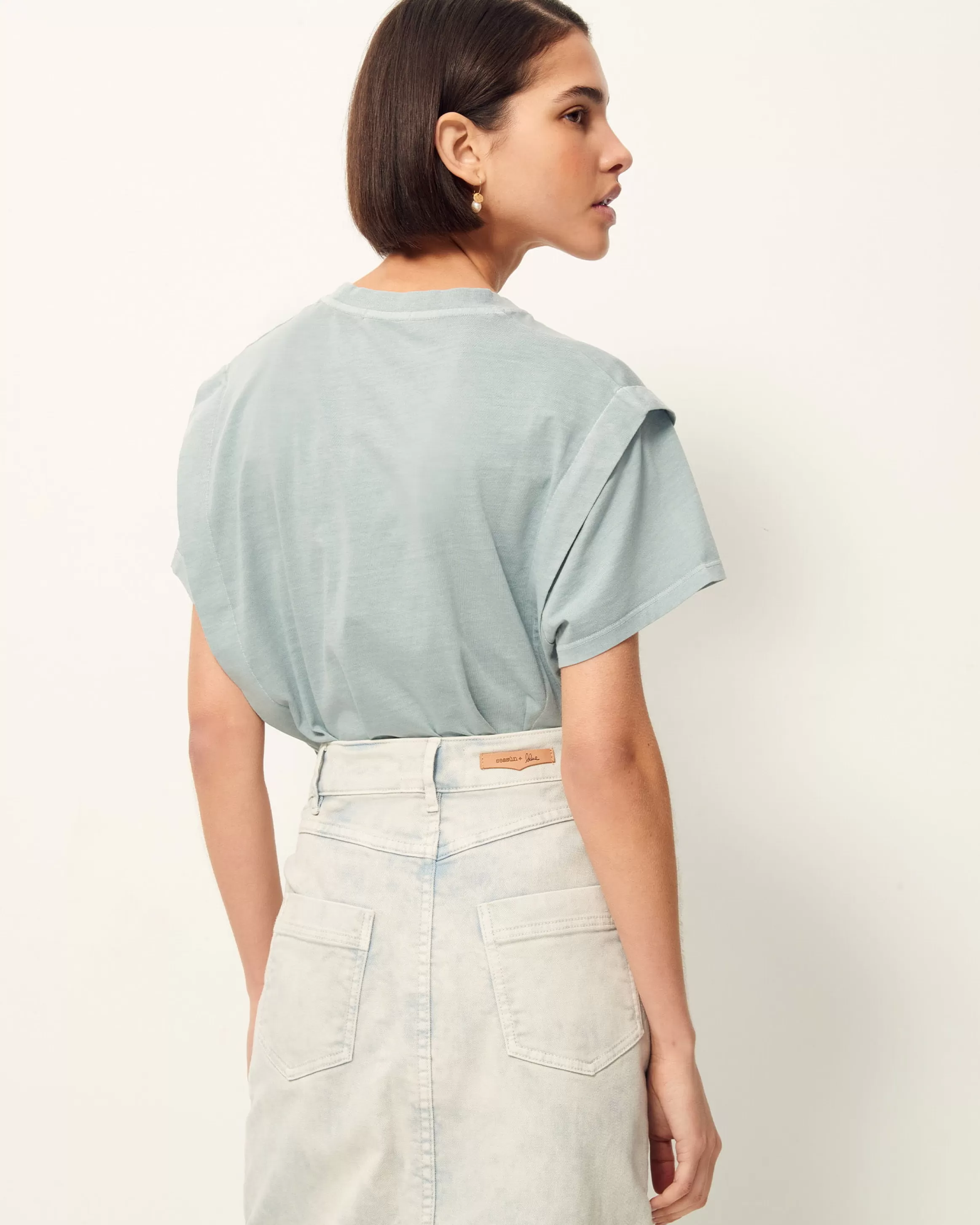 T-shirt à plis en jersey teint en pigmentaire, confectionné et teint artisanalement au Portugal.