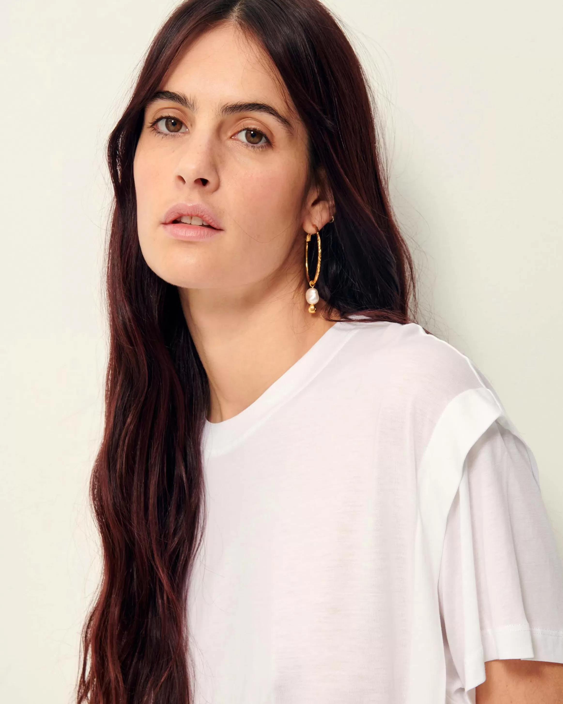T-shirt manches courtes à plis en jersey fluide, confectionné au Portugal.
