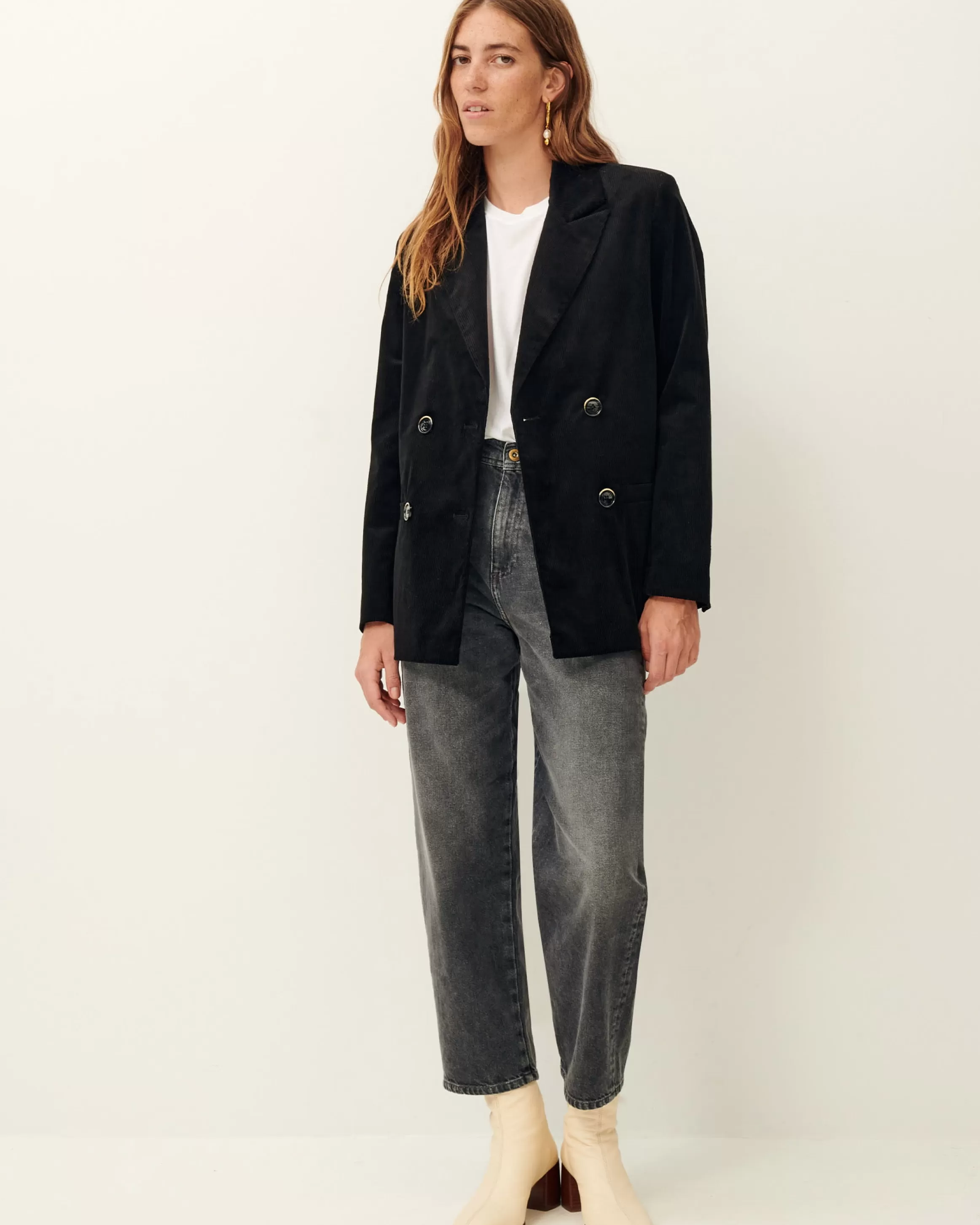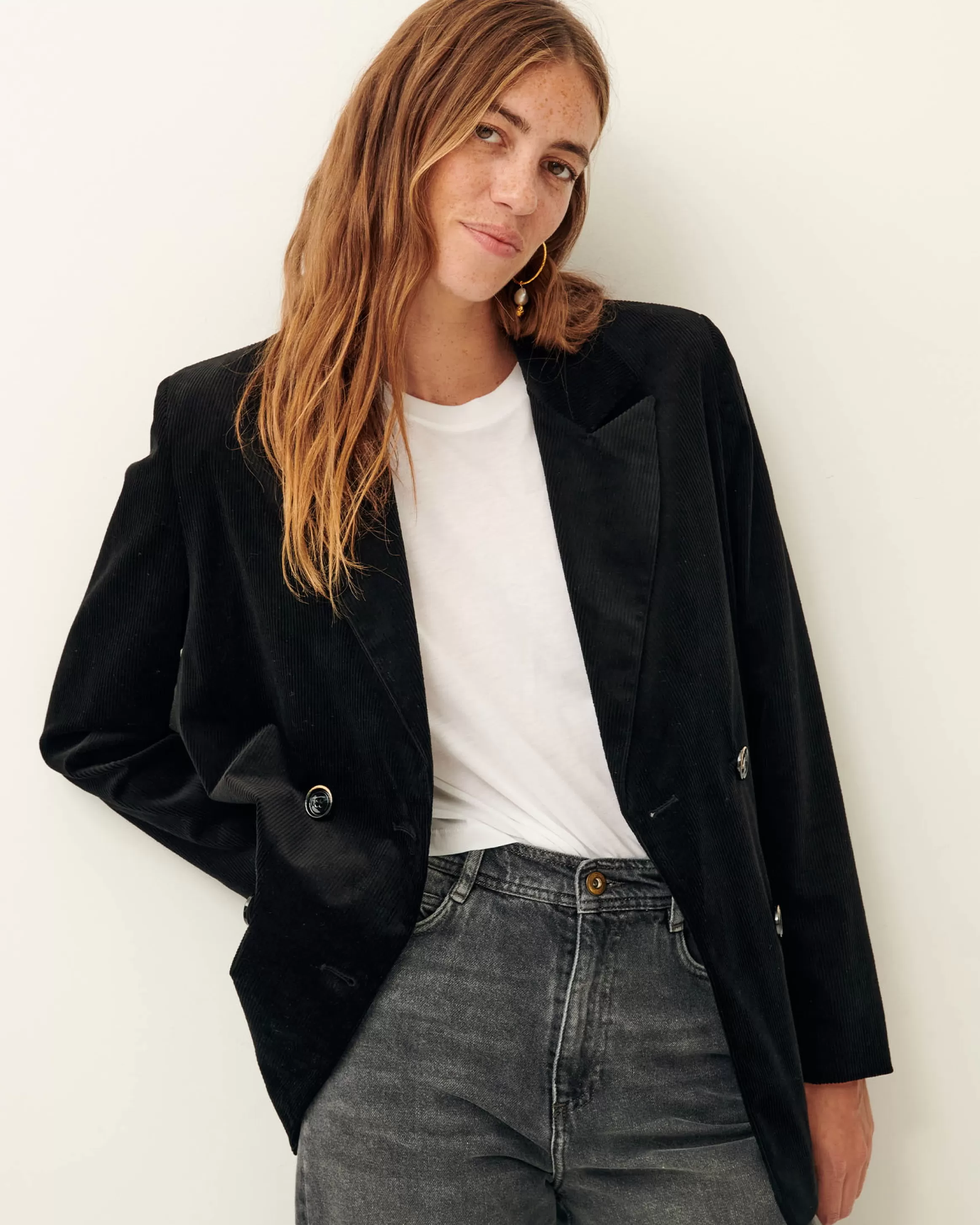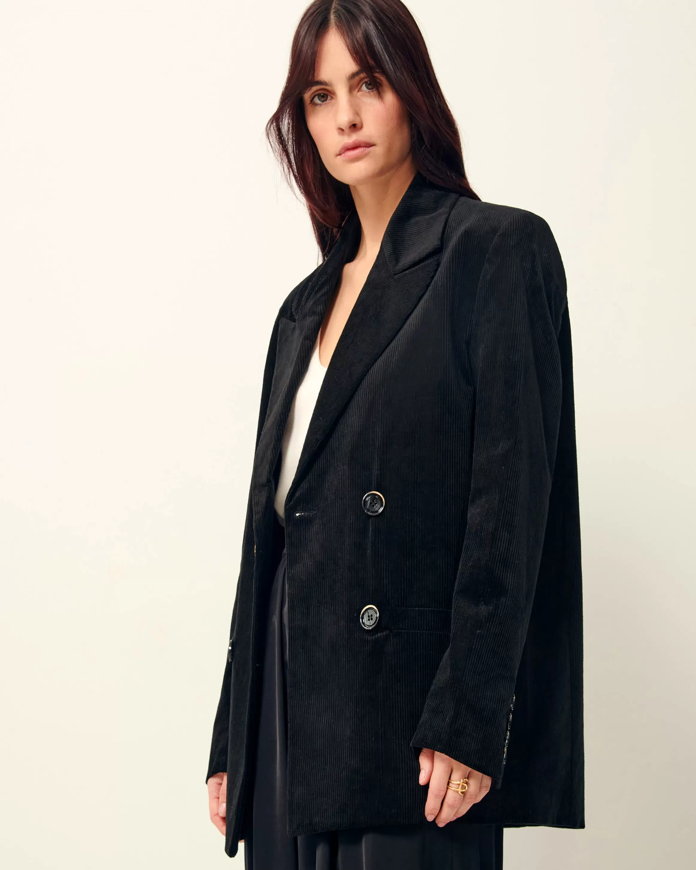 Veste de costume à double boutonnage en velours côtelé 300 raies.
